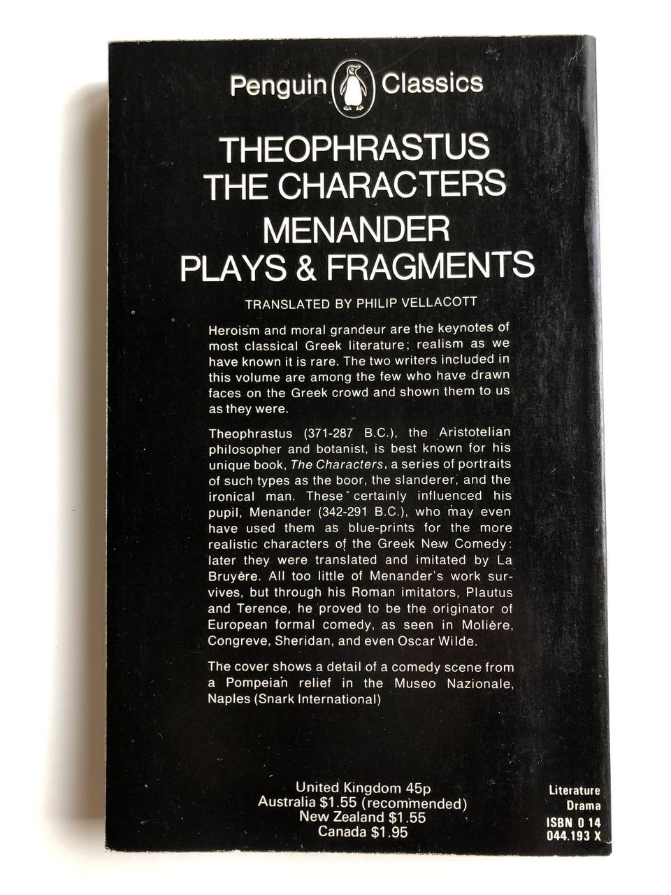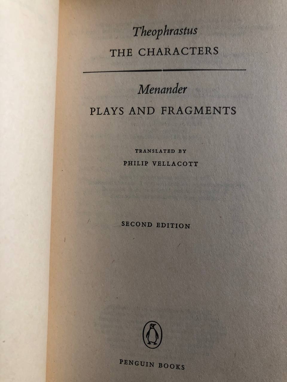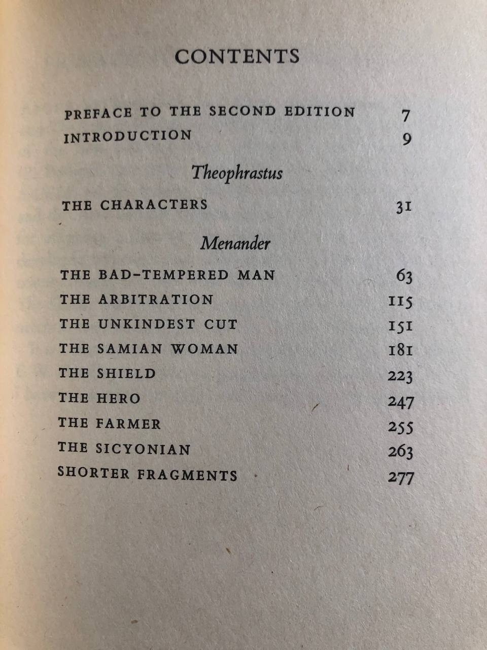 (The Bad-tempered Man/ The Arbitration/ The Unkindest Cut/ The Samian Woman/ The Shield/ The Hero/ The Farmer/ The Sicyonian/ Shorter Fragments)