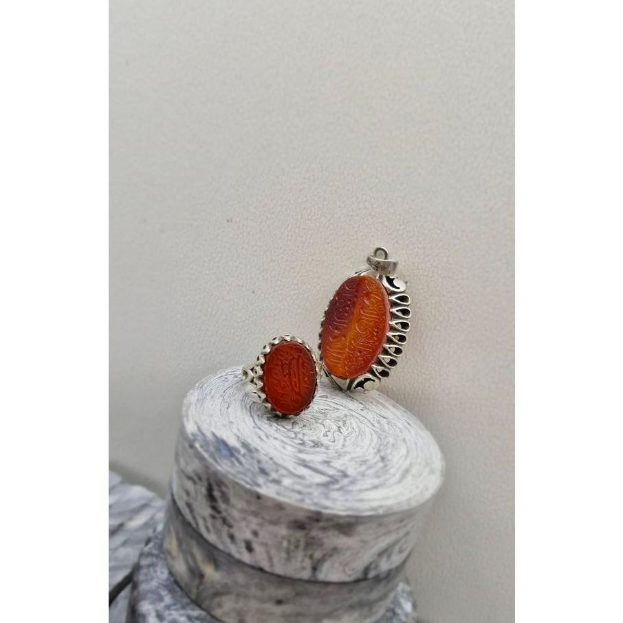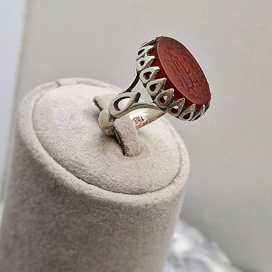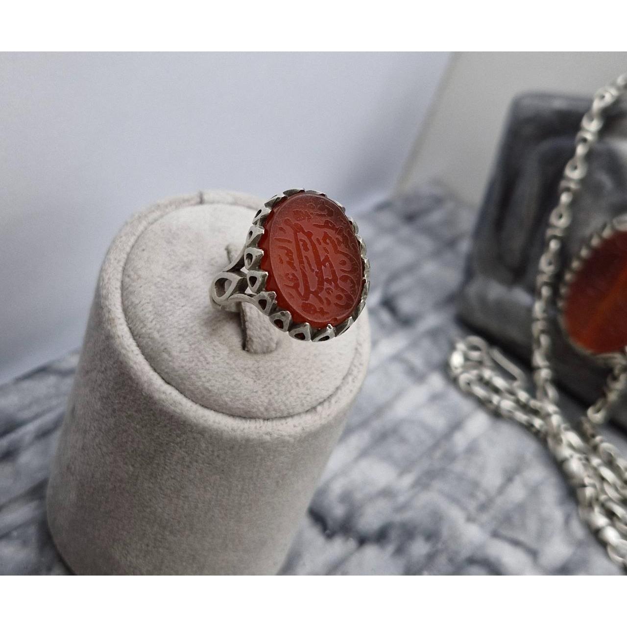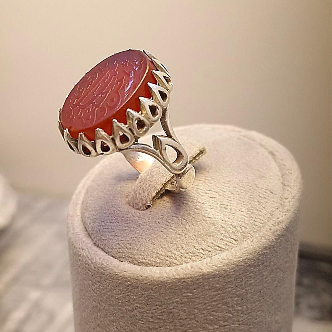 انگشتر عقیق مردانه باحکاکی برجسته (پنج تن)