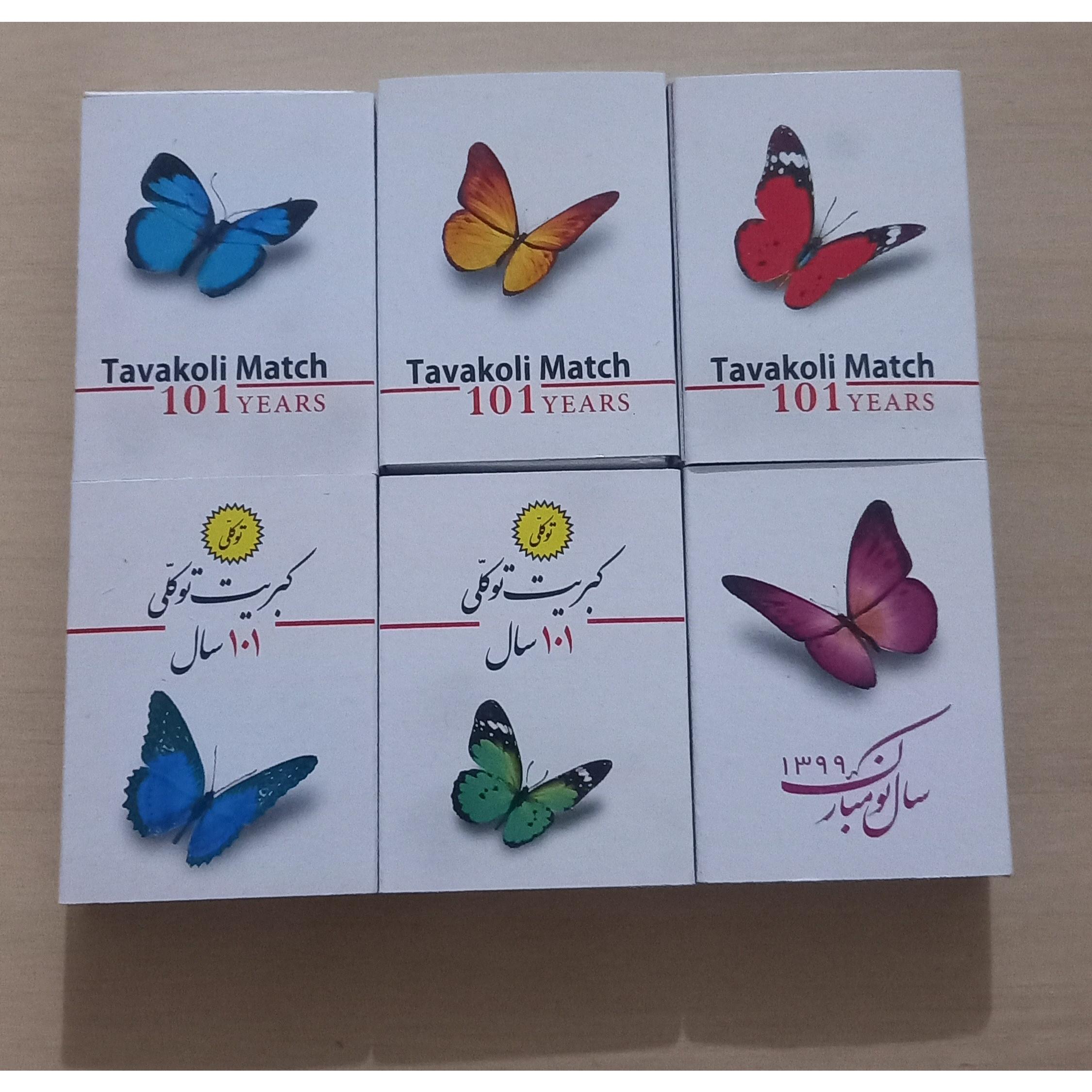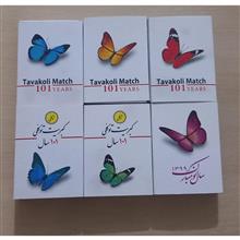 سری بسیار زیبای 6 عددی کبریت لوکس توکلی بمناسبت صد و یکمین سال تاسیس این شرکت در سال 1399 تولید گردیده و محتوی خلالهای رنگارنگ میباشند.