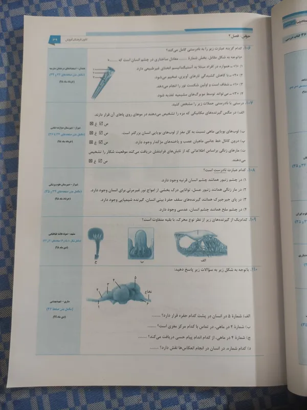 یک صفحه از کتاب دارای قلمخوردگی با خودکار می باشد.