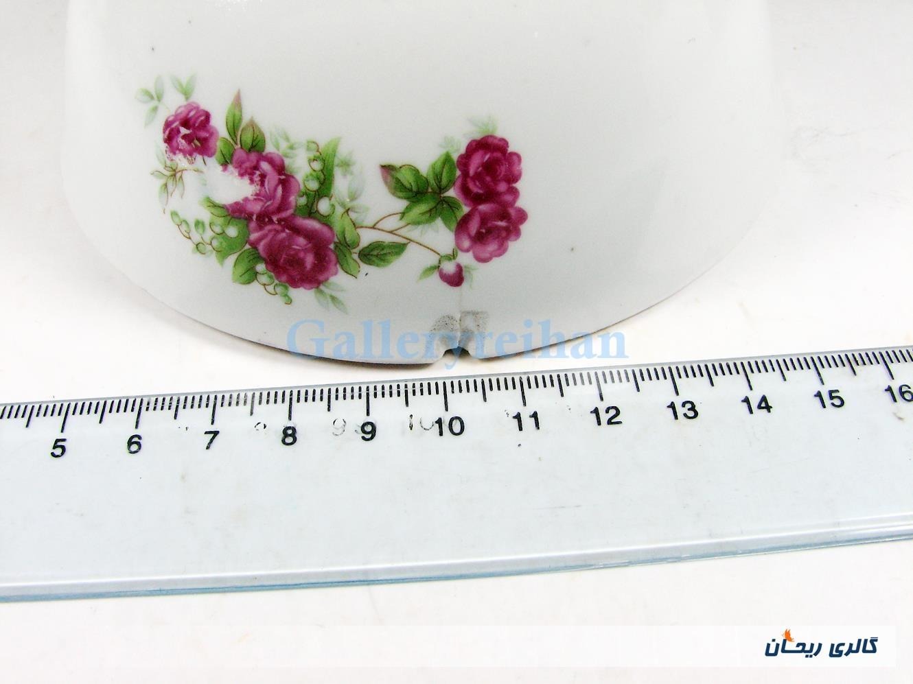 طبق تصاویر یک لبپری و ترک خطی در لبه دارد و یکی از گل ها رنگ پریدگی دارد و قیمت هم بر همین اساس قرار داده شده است.