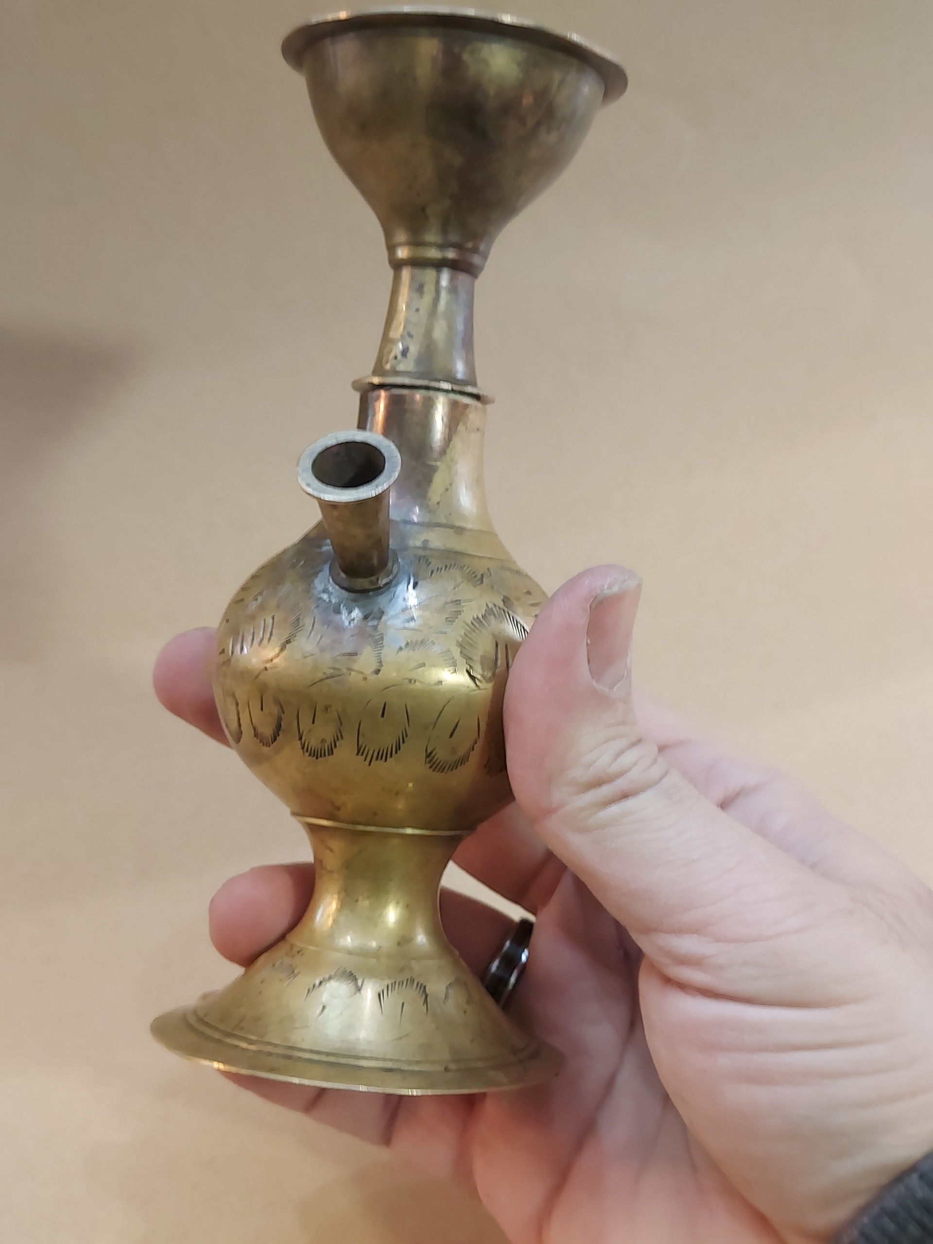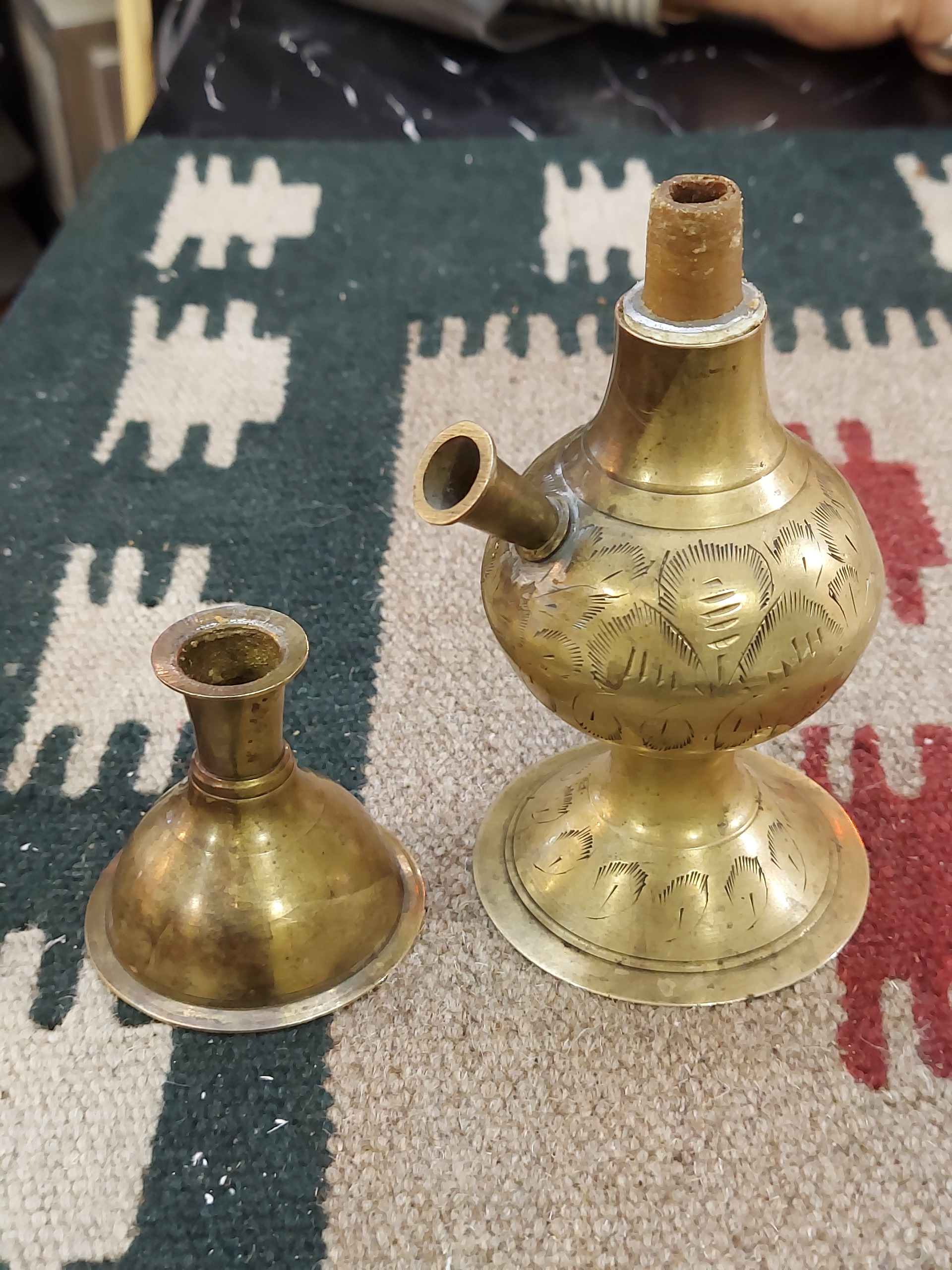 تنگ برنجی مینیاتوری قلمزنی کهنه سایز کوچک