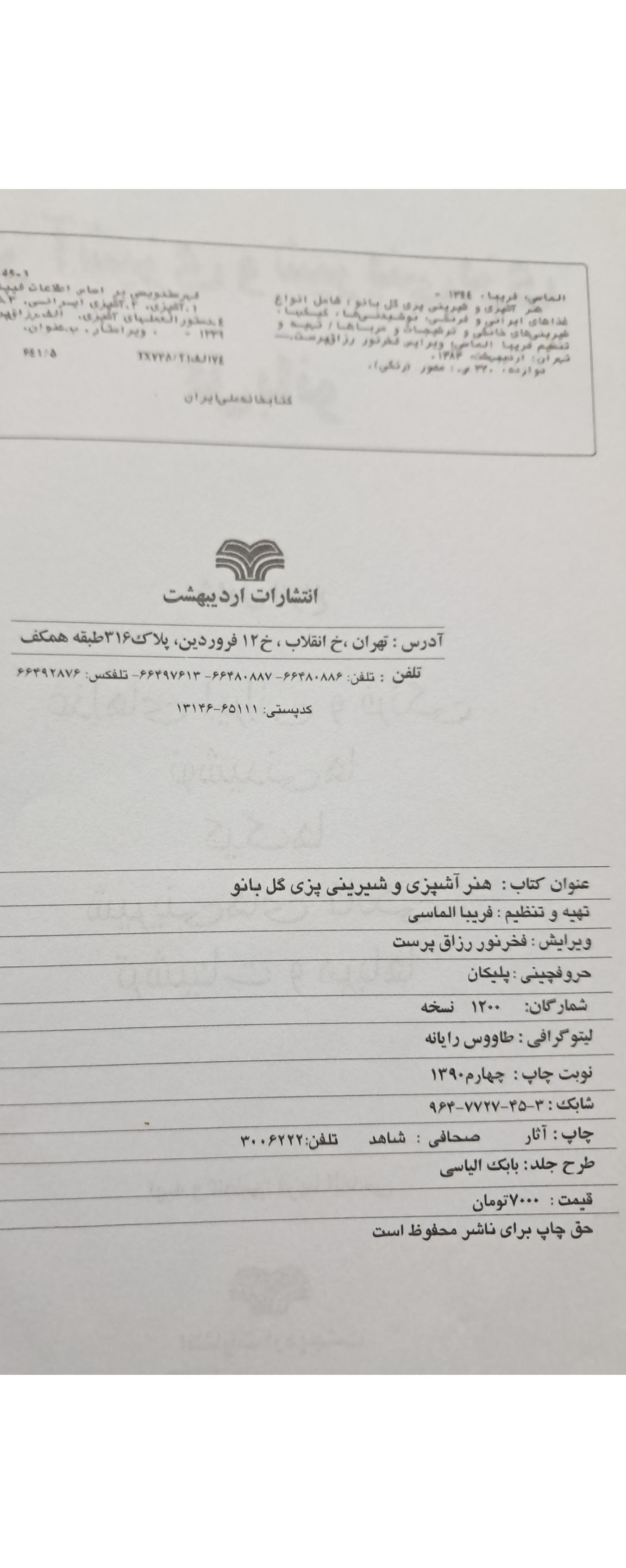 هنر آشپزی و شیرینی پزی گل بانو (فریبا الماسی)