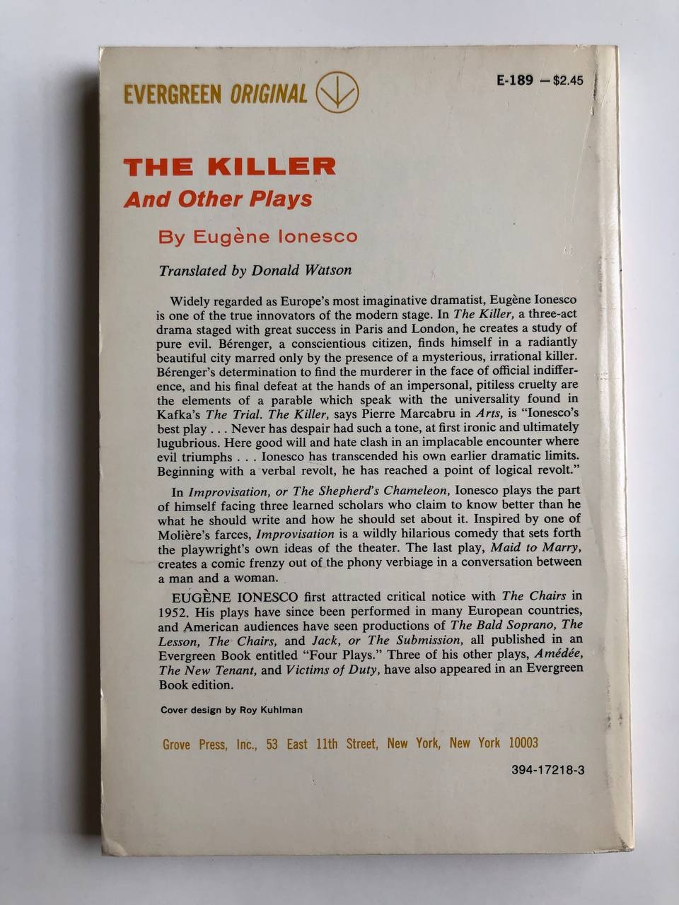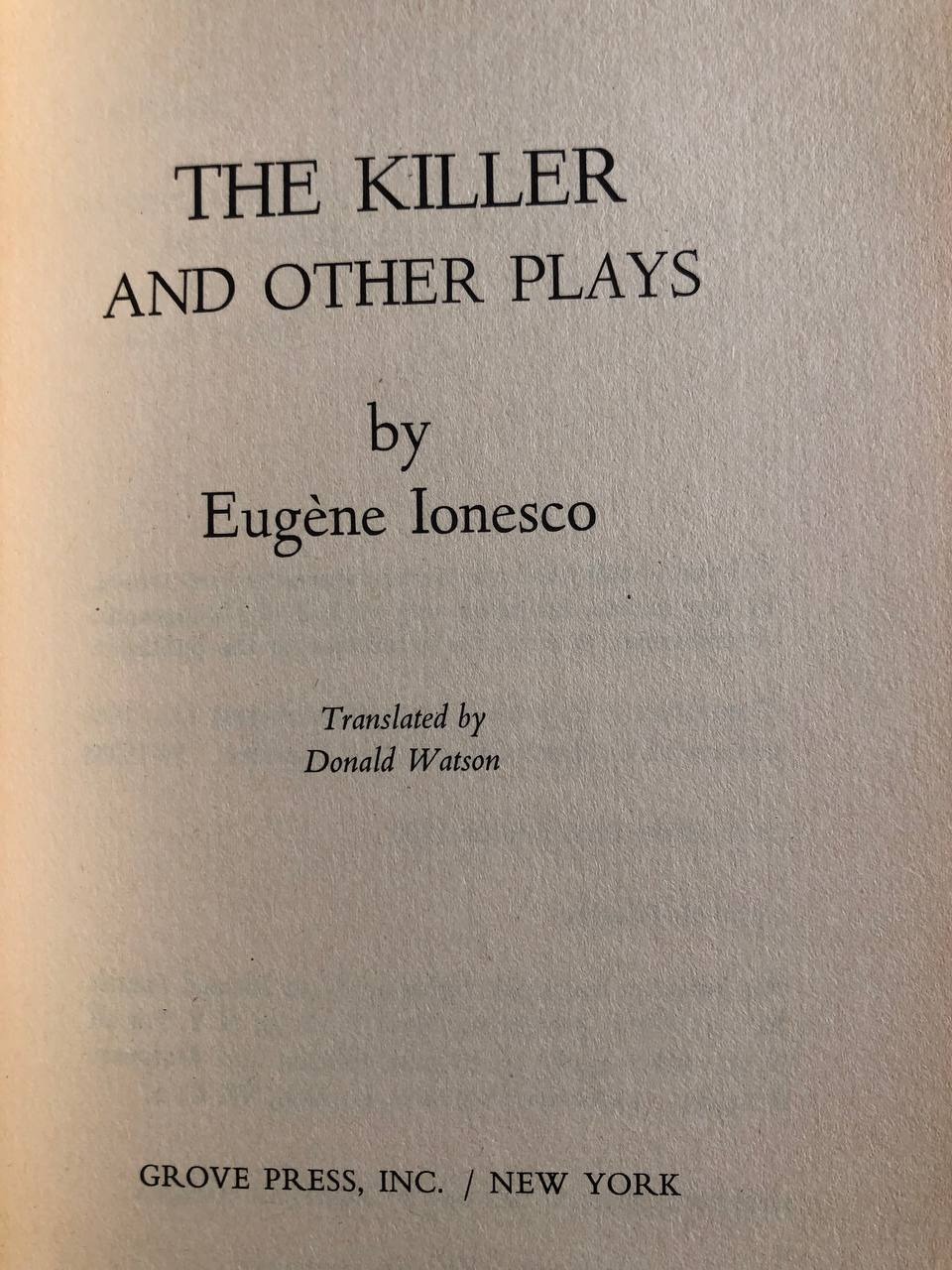 THE KILLER AND OTHER PLAYS by Eugène Ionesco