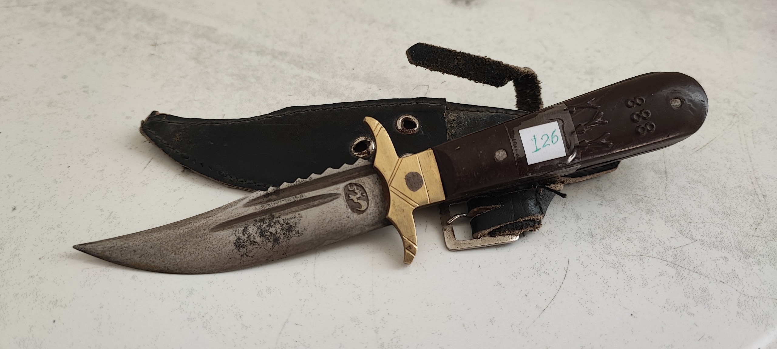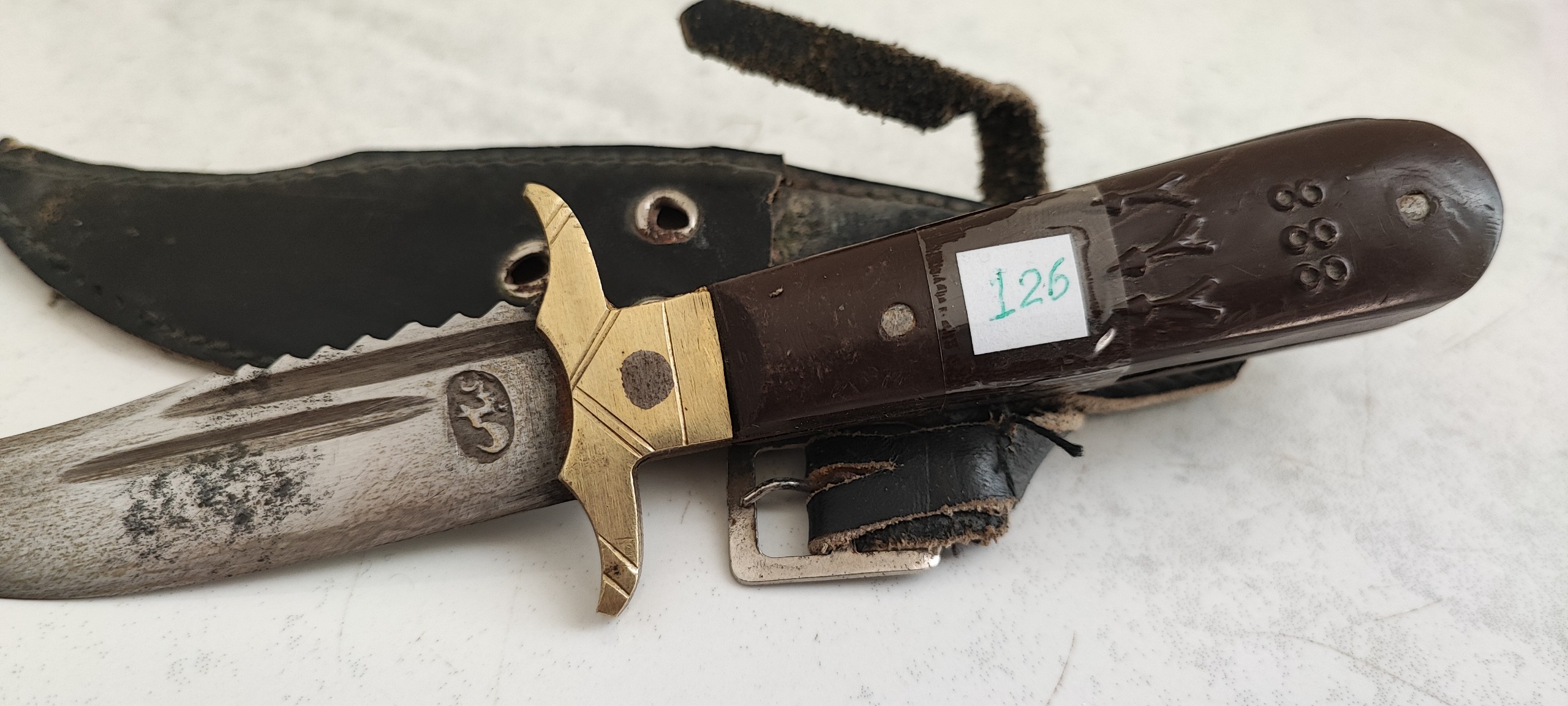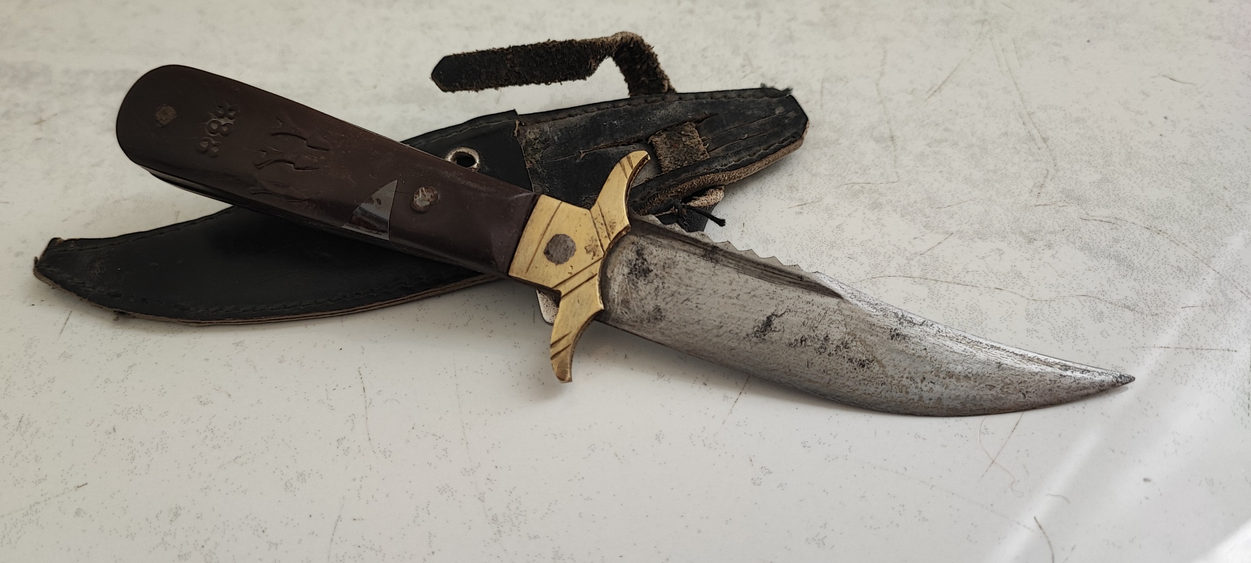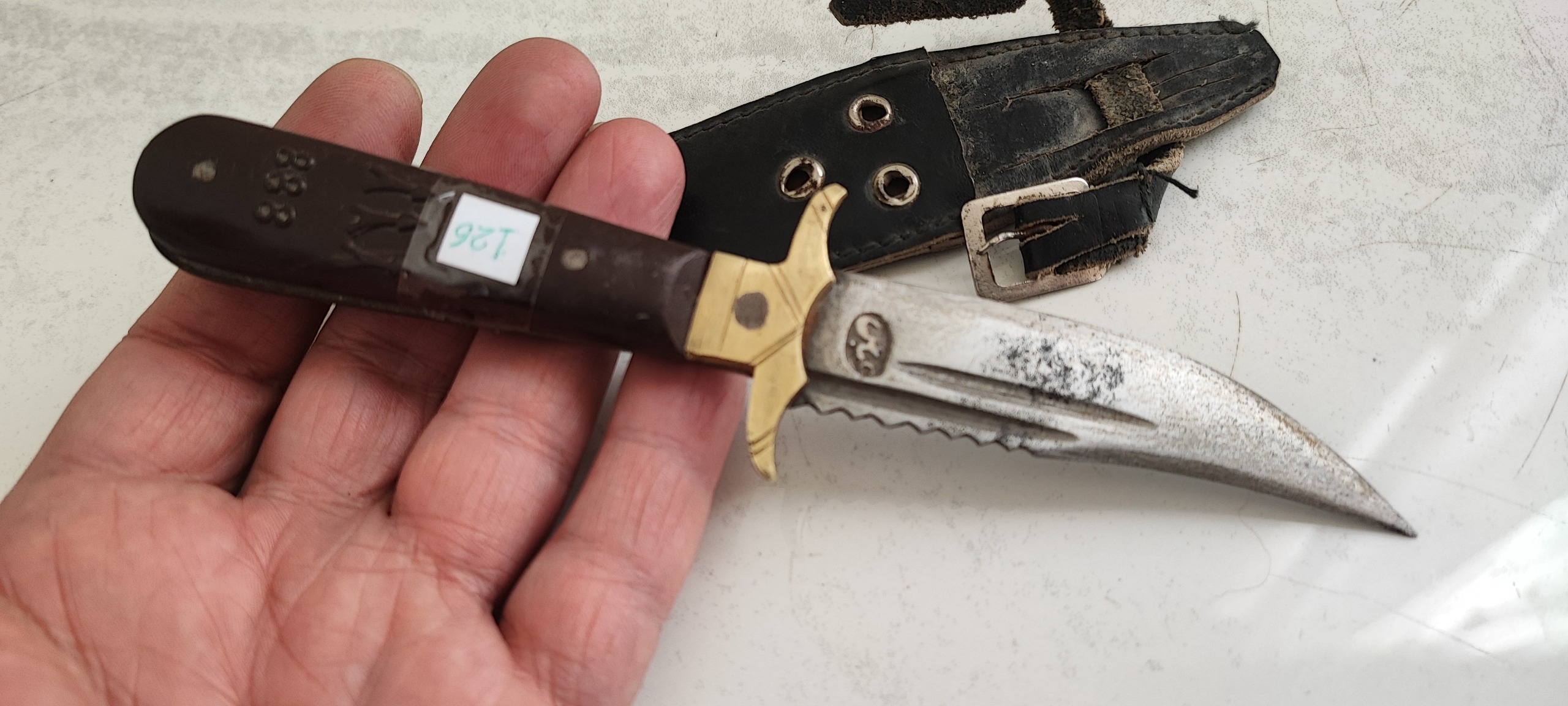 18 سانت طول، تیغ فولادی و دسته پلاستیک و غلاف چرمی، نایاب و کلکسیونی