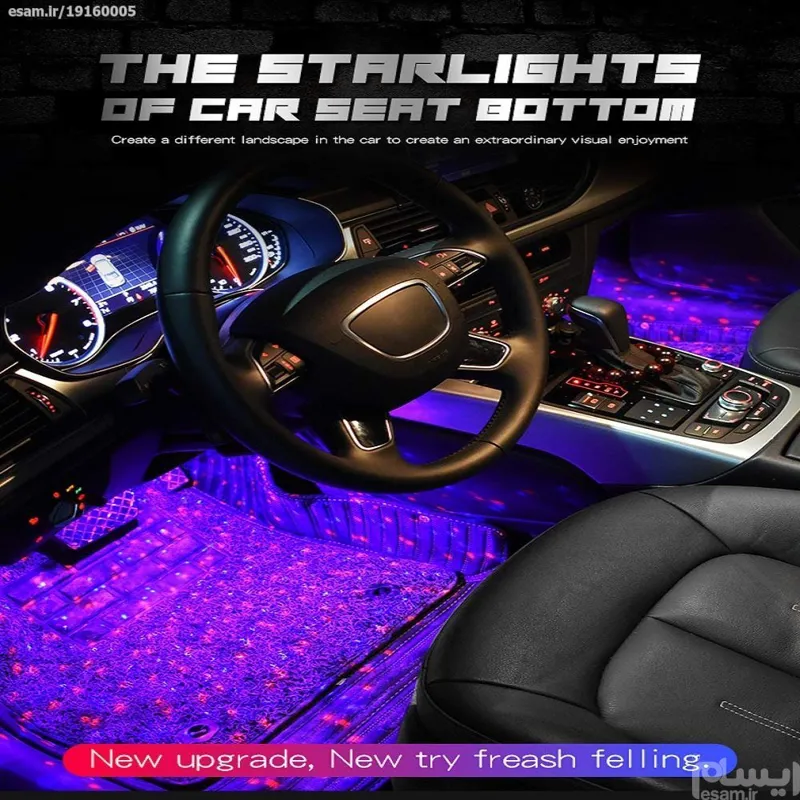 کیت نورپردازی ریموت دار داخل خودرو در زیر داشبورد و صندلی های جلو نصب میشود که حالت های مختلف رقص نور و رنگ آن را کنترل می نمایید. ویژگی شگفت انگیز آن سنسور صدا می باشد که با قرار گرفتن نزدیک بلندگوی خودرو، هماهنگ با موزیک، رقص نور دارد. (با صدا تغیرر رنگ میده)