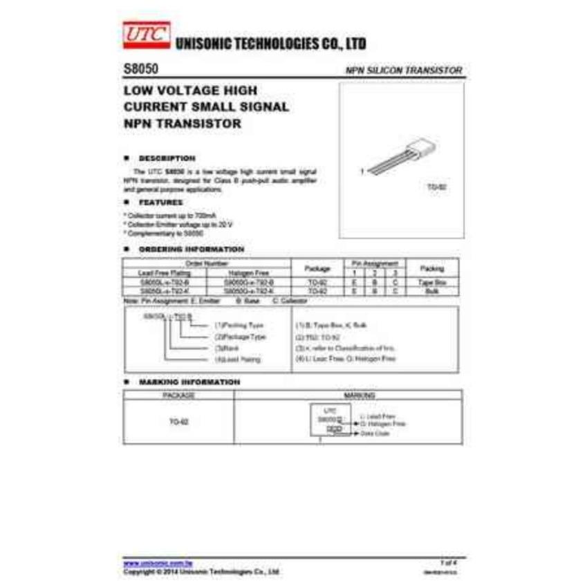 ترانزیستور 150Mhz/700mA S8050 اوریجینال