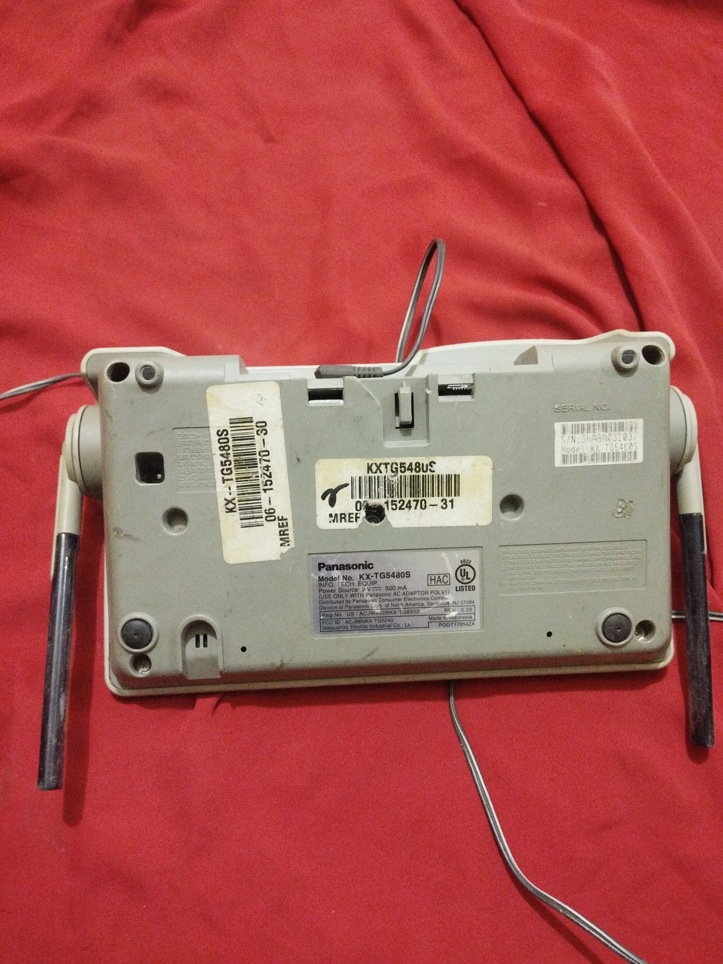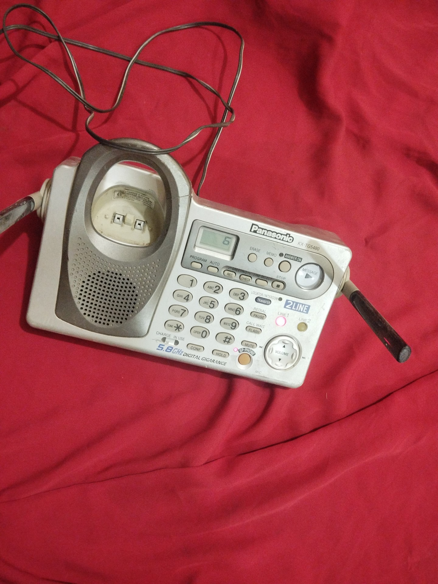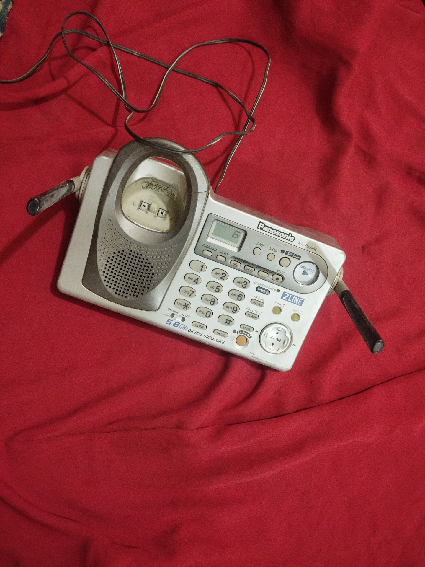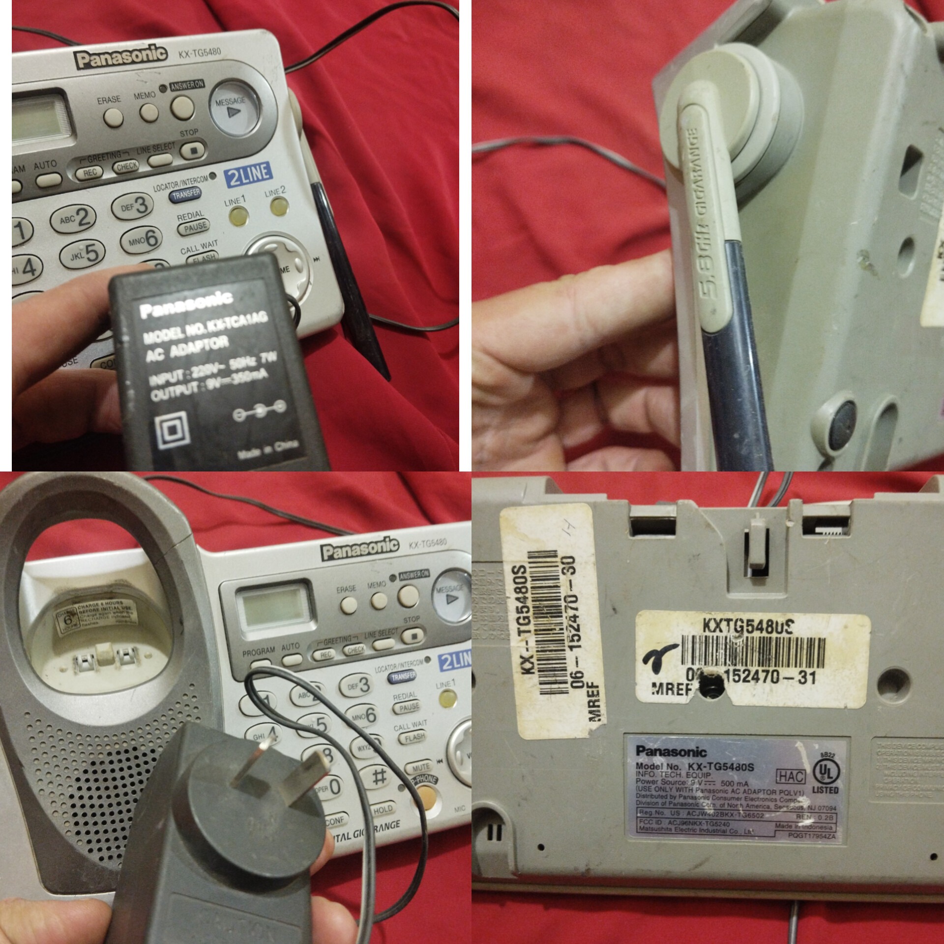گوشی بیسیمش رو ندارم ببینم پایه شارژش، شارژ میکنه یانه. آداپتور اصلی سالم هم داره. زیرش وا شده.به عکسها دقت کنید.. مطابق عکسه