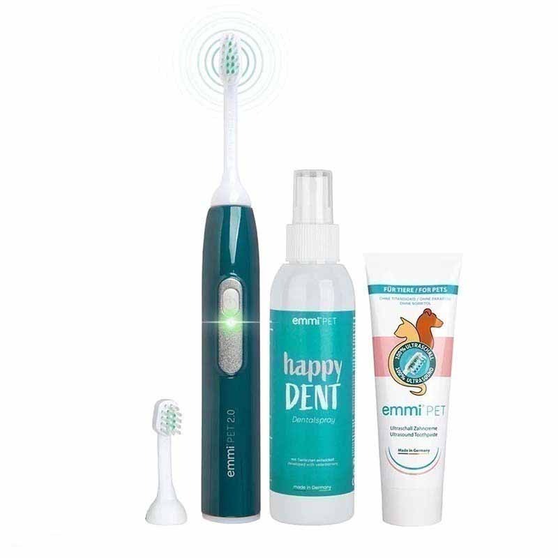 دستگاه EmmiPet 2.0 یک مسواک اولتراسونیک مخصوص حیوانات است که بدون نیاز به سایش یا حرکت دادن برس، دندانها و لثه حیوان را میکند.