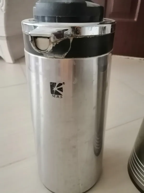 فلاسک 1،6لیتری ام آر اس ساخت ایران شیشه داخلش شکسته.... ولی خود فلاسک خیلی خوب بود وآب رو طولانی مدت نگه میداشت حالا شیشه اش شکسته وبه عنوان معیوبه