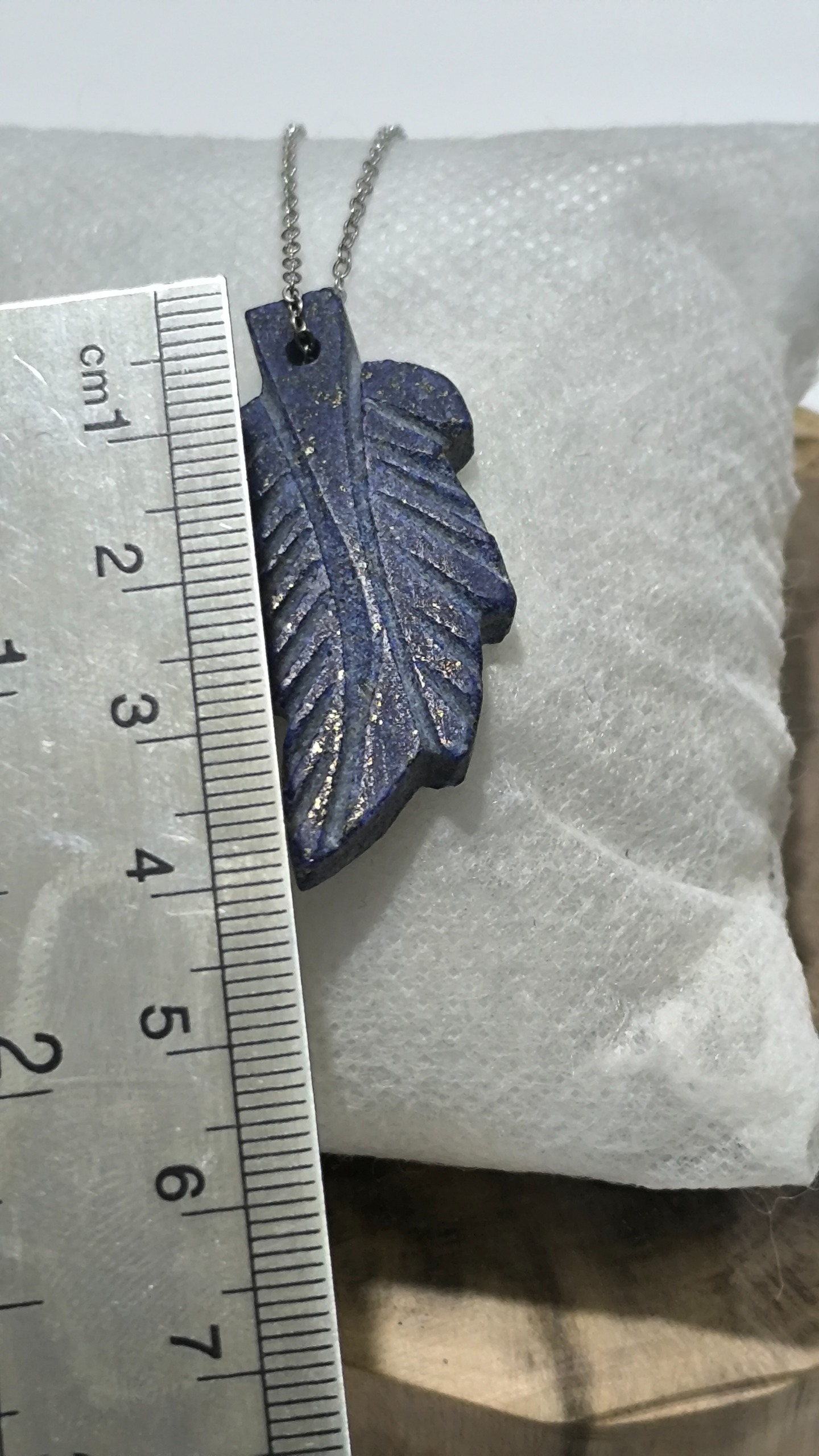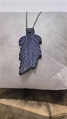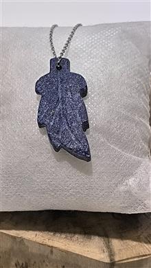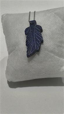 گردنبند استیل درجه یک با پلاک سنگ طرح برگ لاجورد