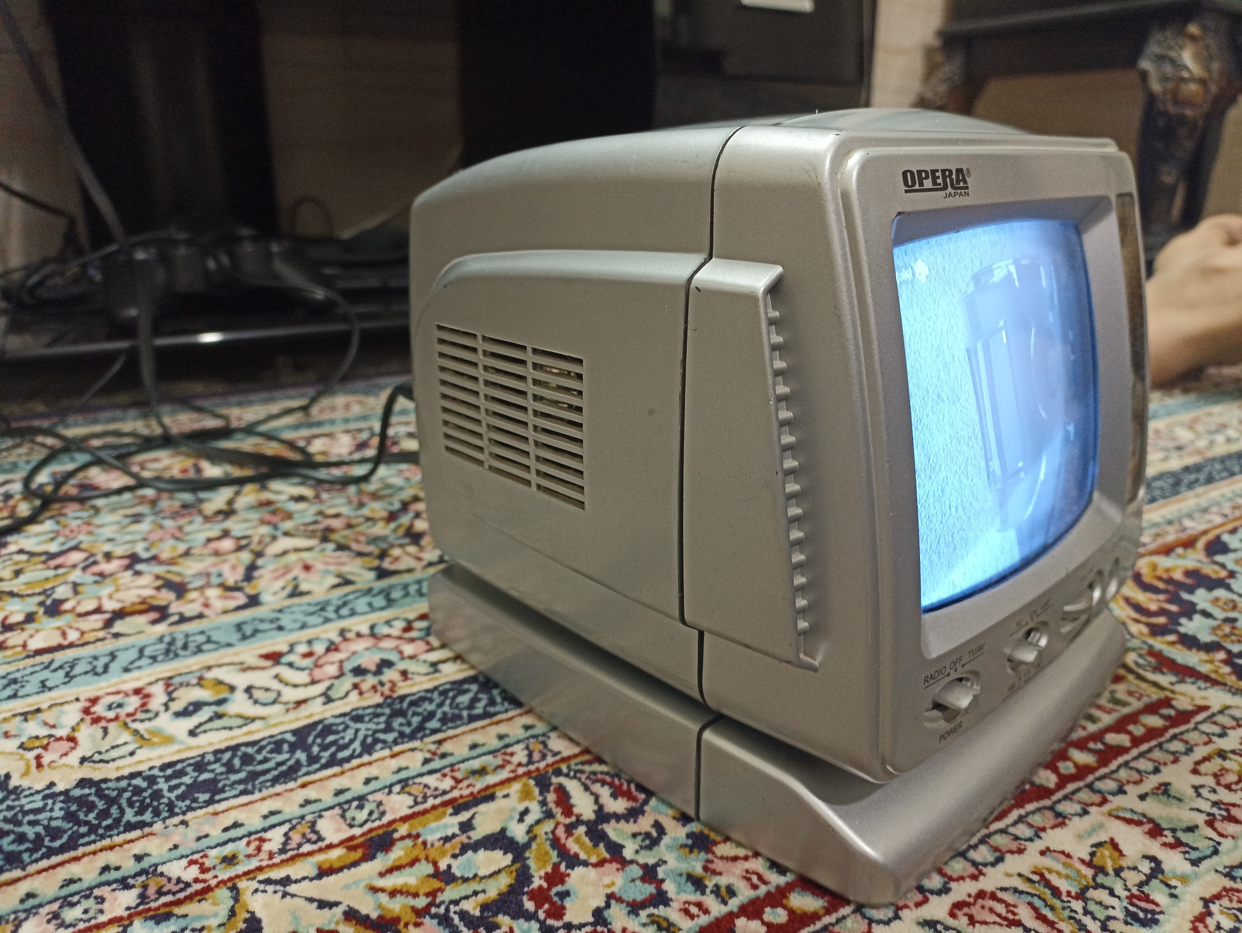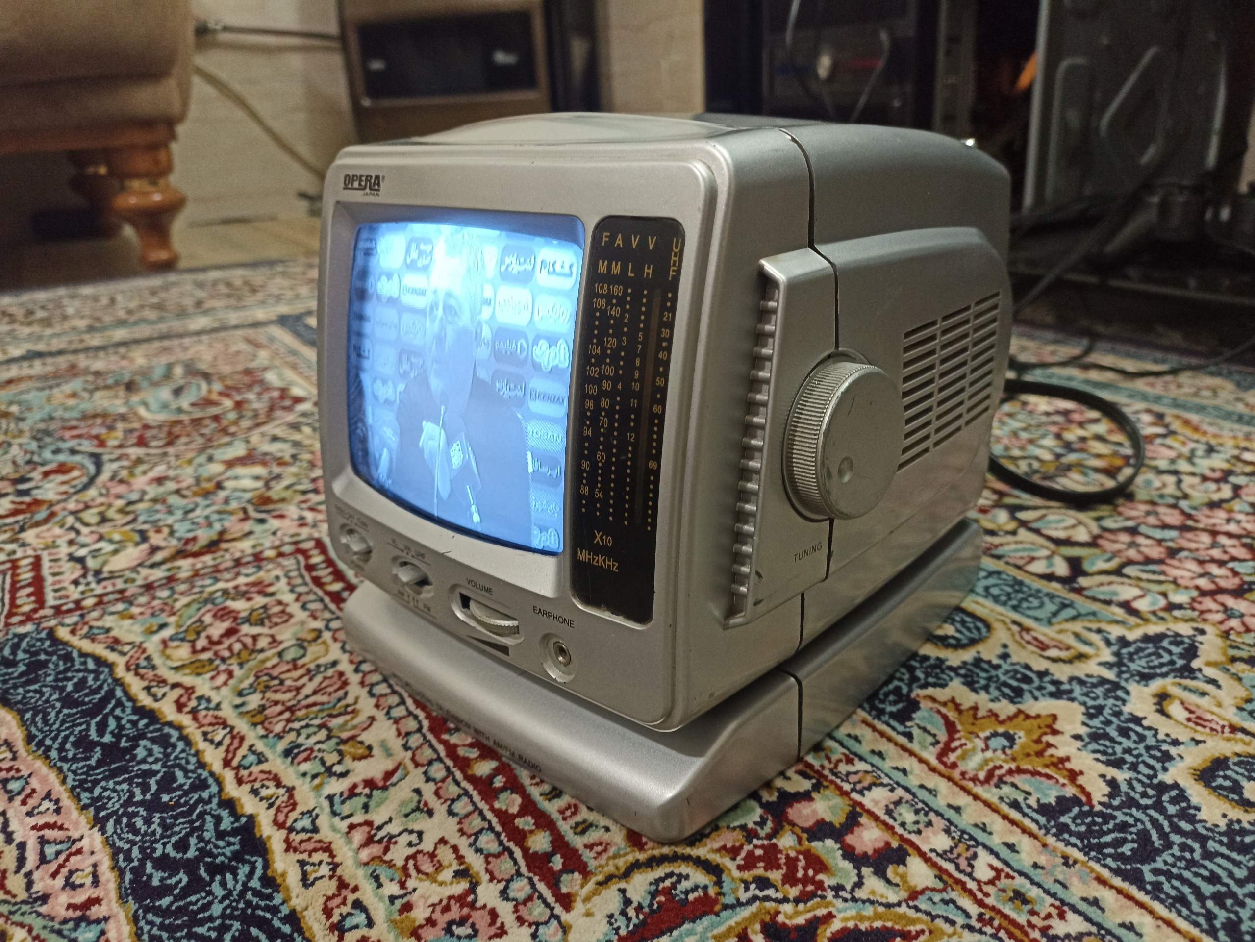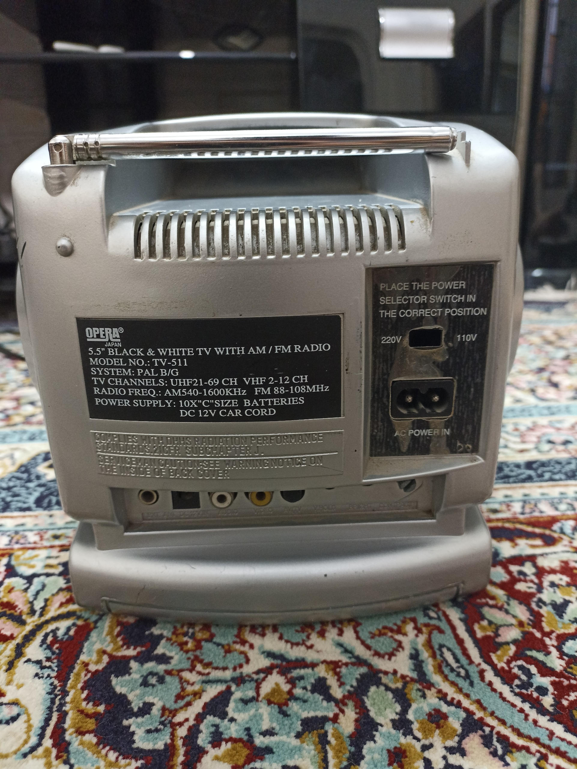 تلویزیون 5 اینچ قدیمی کلکسیونی مارک اپرا ژاپن درحدنو بدون هیچ شکستگی تصویر کاملا سالم تو عکس ها مشخصه برق 220هست از پشت تلویزیون هم میتونید برق 12ولت بهش وصل کنید