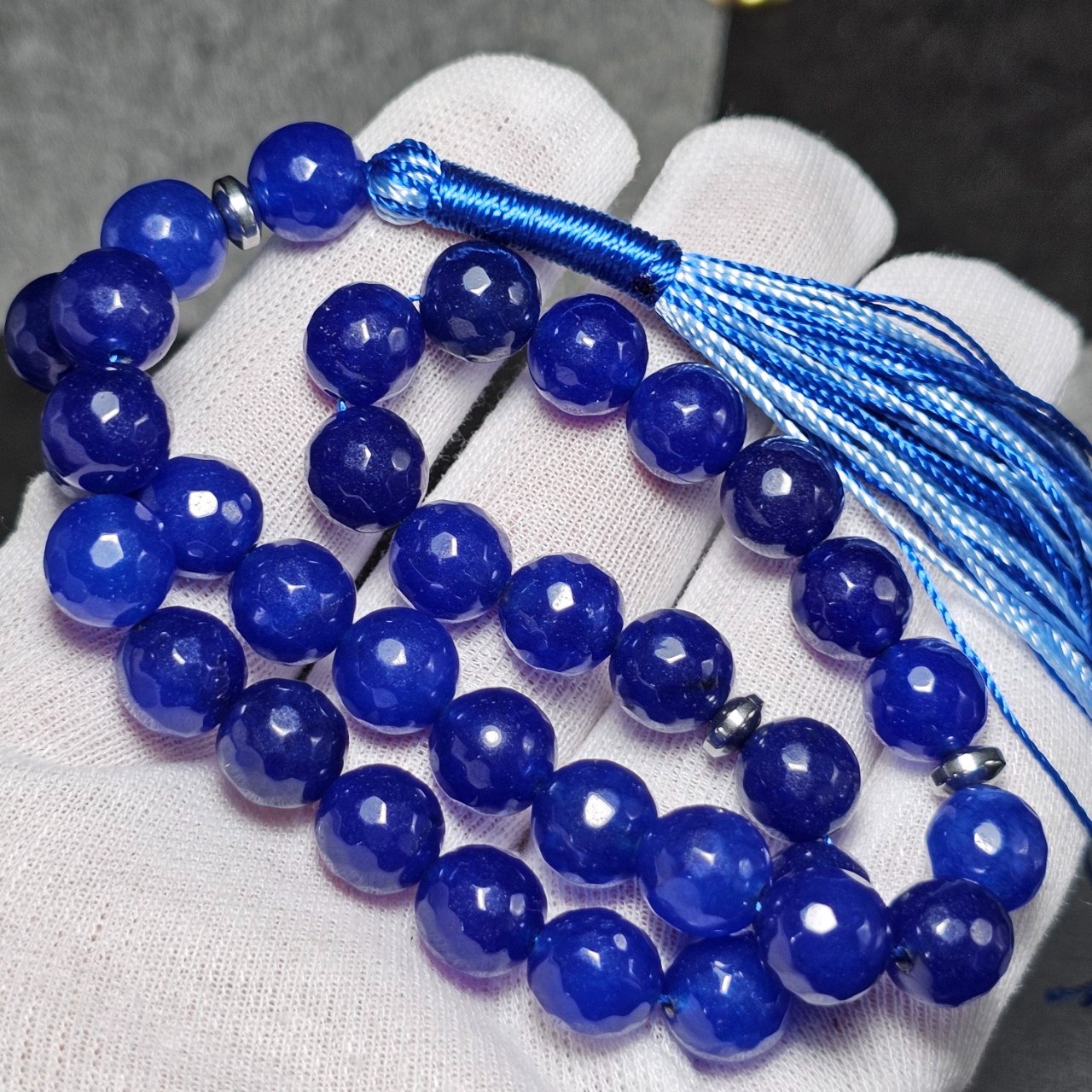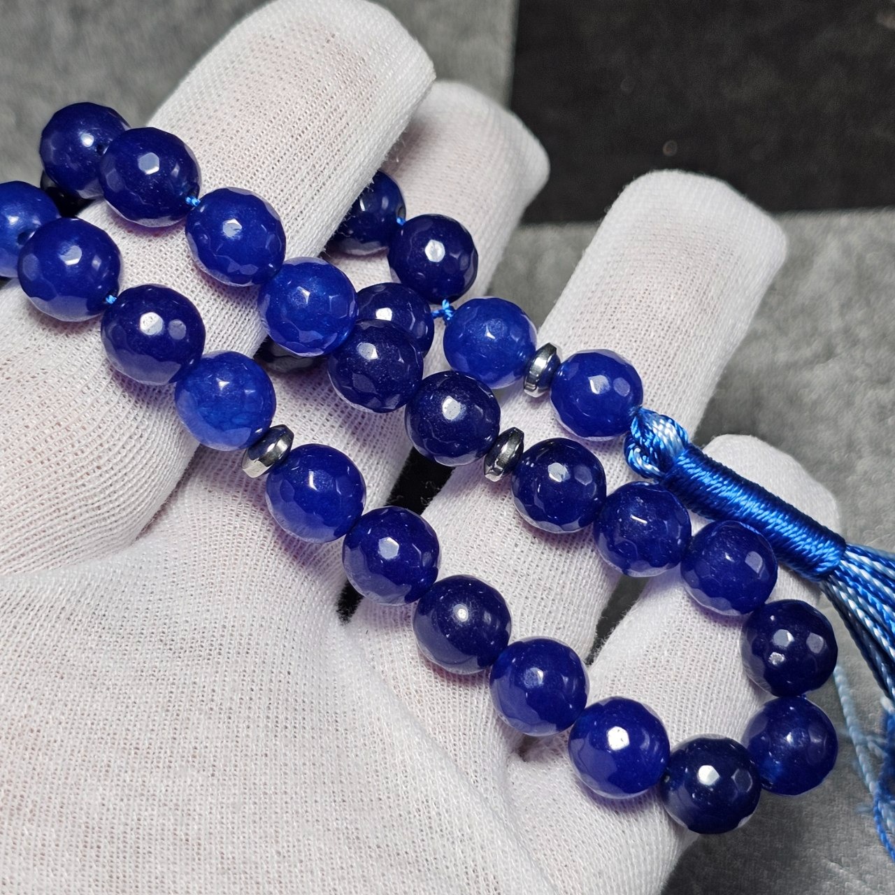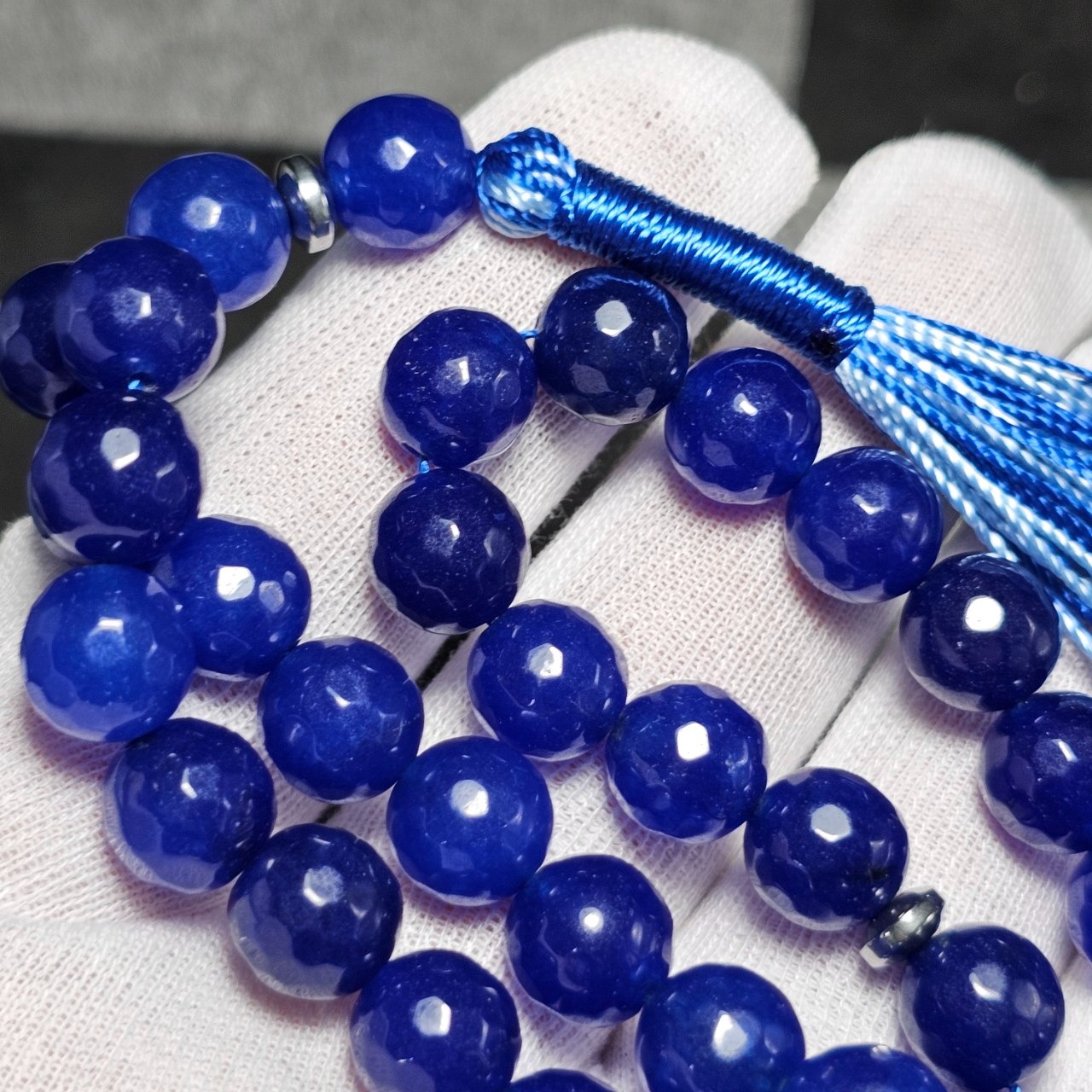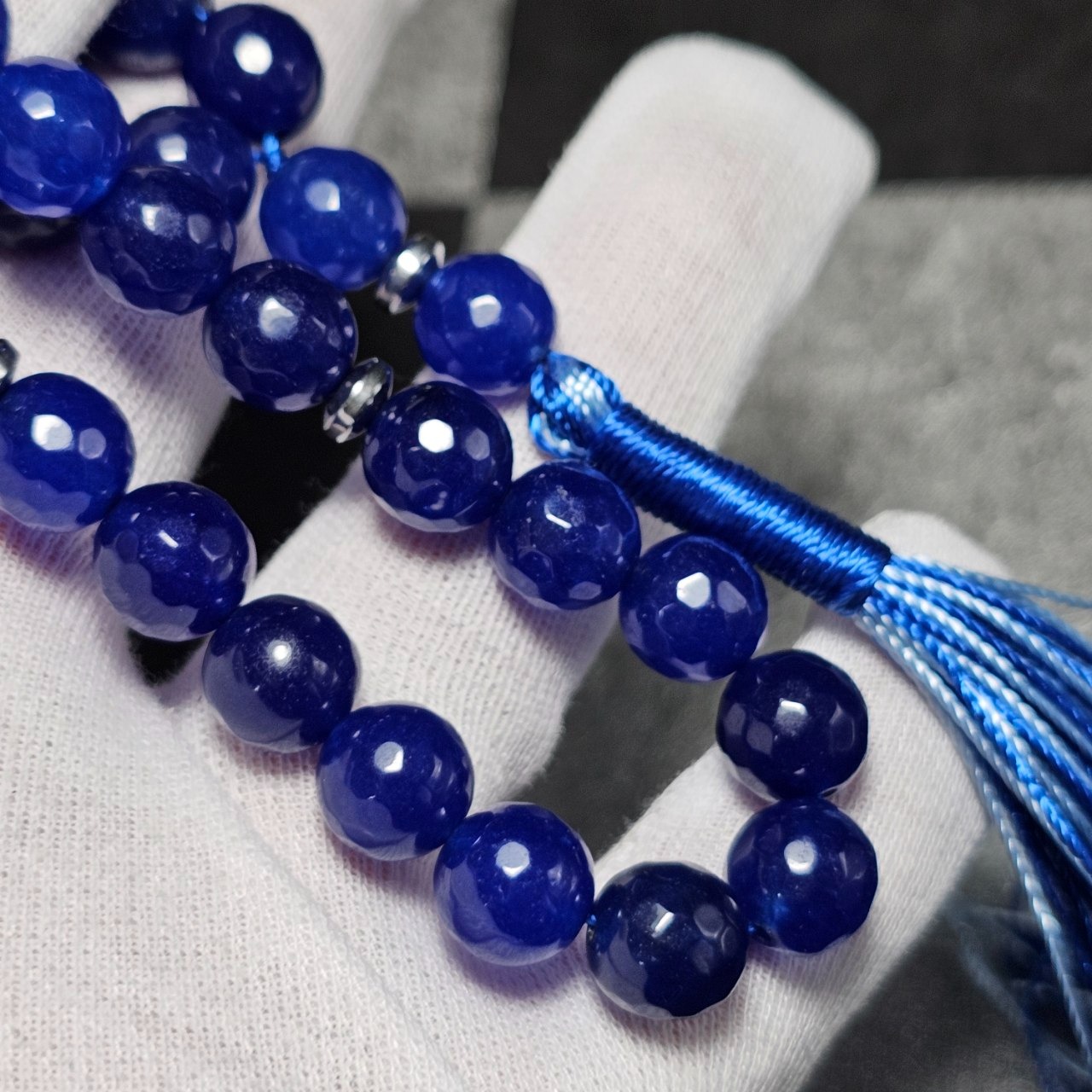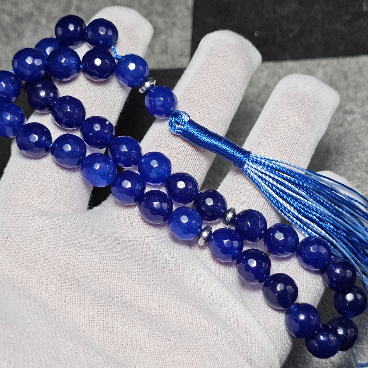تسبیح 33 دانه سنگ جید سورمه ای معدنی تراش دار