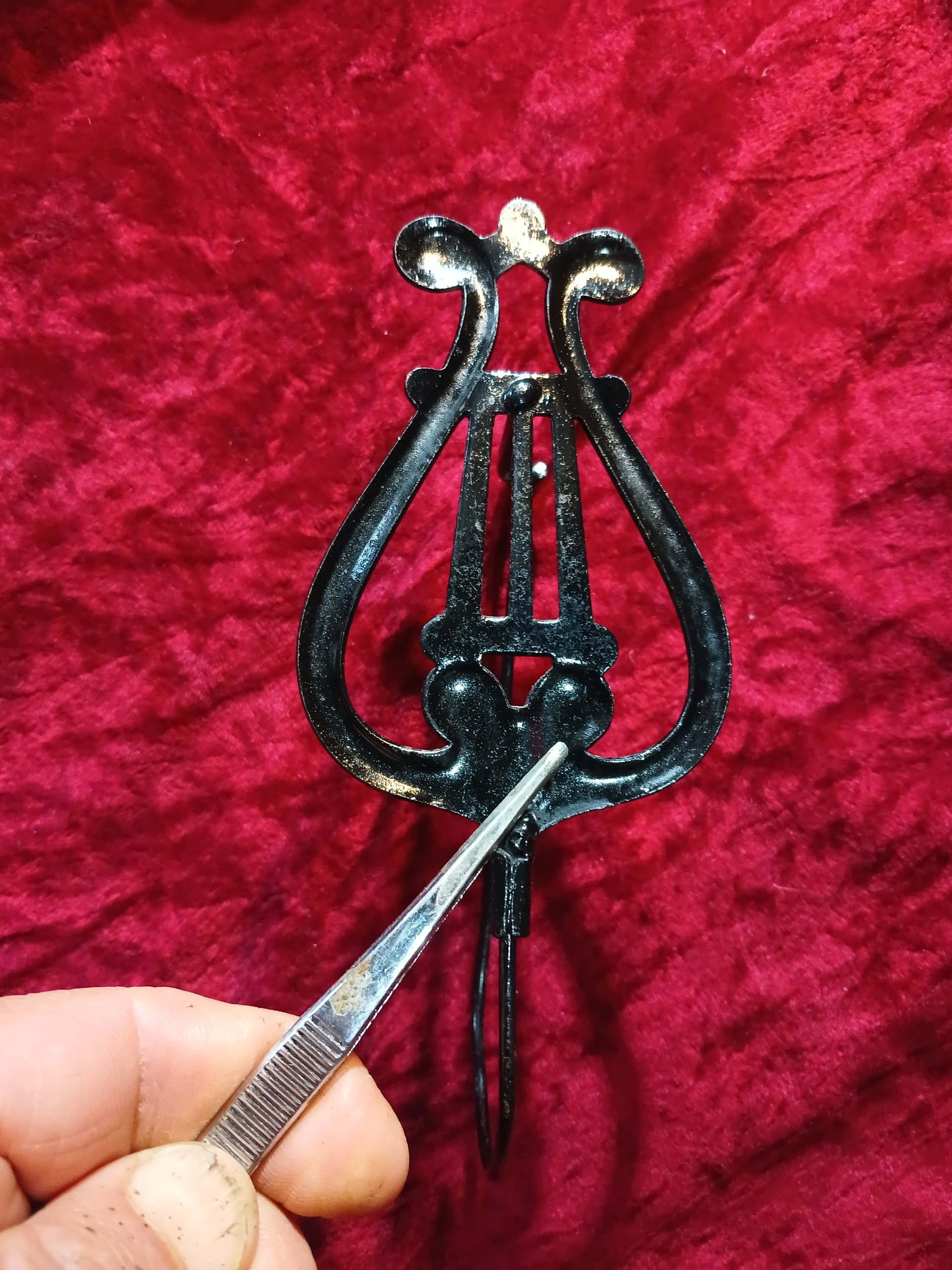 ابزار فلزی آهنی قدیمی سالم و بدون ایراد قابل استفاده کلکسیونی برای نگه داری قبض و فیش های بانکی در مغازه های قدیمی استفاده میشده مال زمان پهلوی.