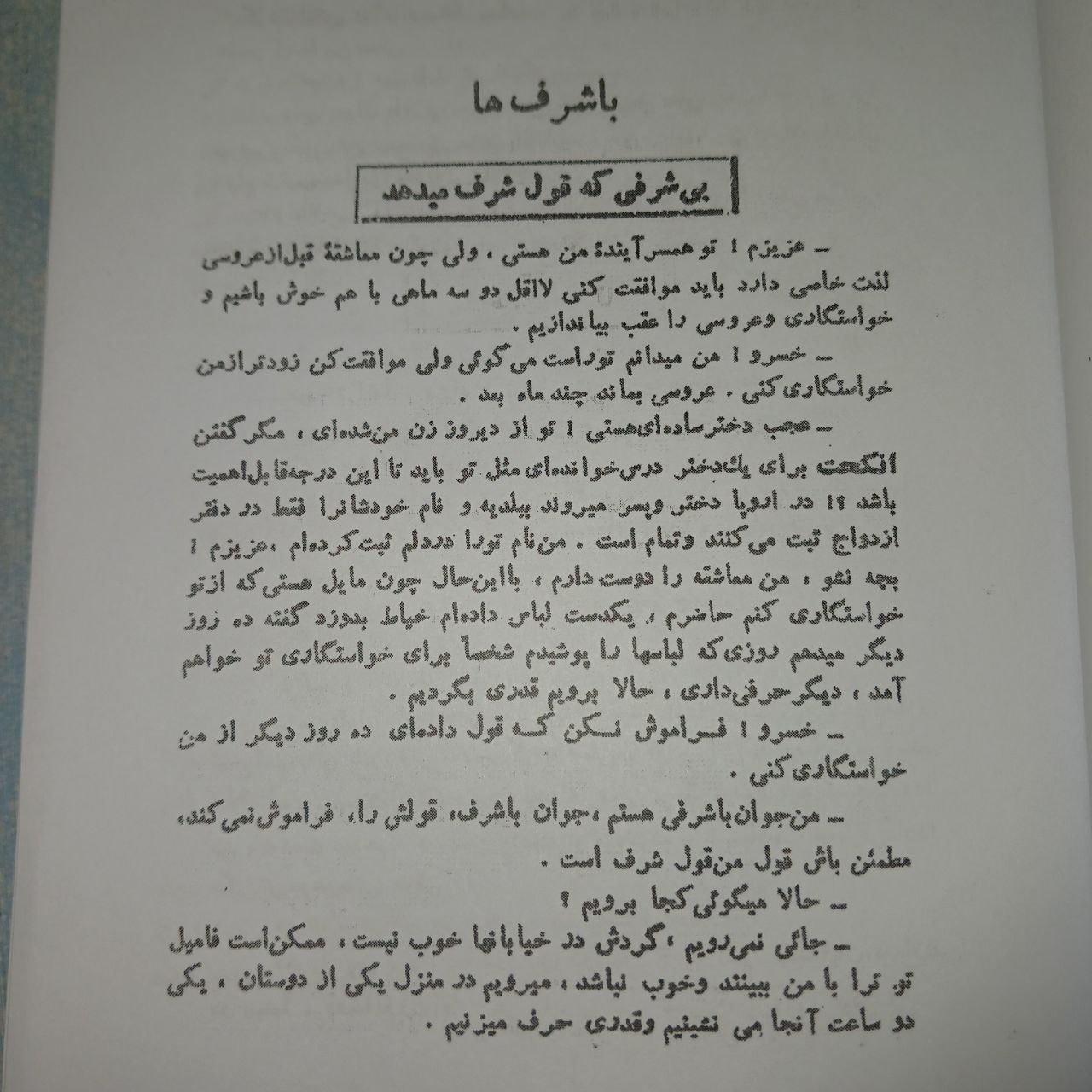 سرگذشت دختری است که هر فصلش در جامعه متاسفانه نمونه و مصداق دارد. باشرفها سرگذشت حقیقی هست که در صفحات آن اسرار عشق و شهوت، بوالهوسیها، رازها، دزدیها، و بی شرفی های مشتی با شرف نما از پرده بیرون کشیده شده و در معرض مطالعه قرار گرفته است.