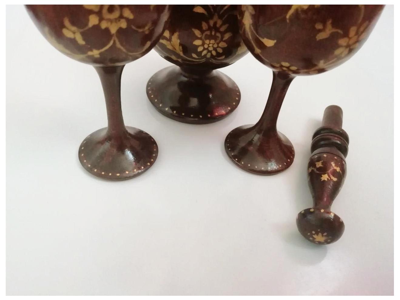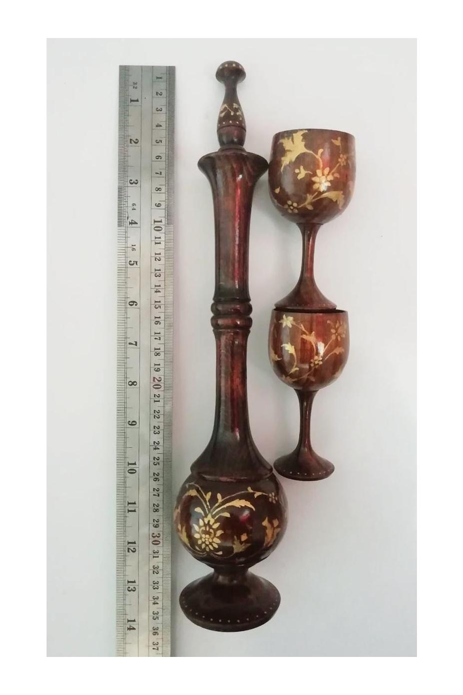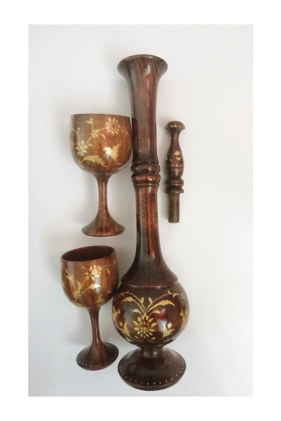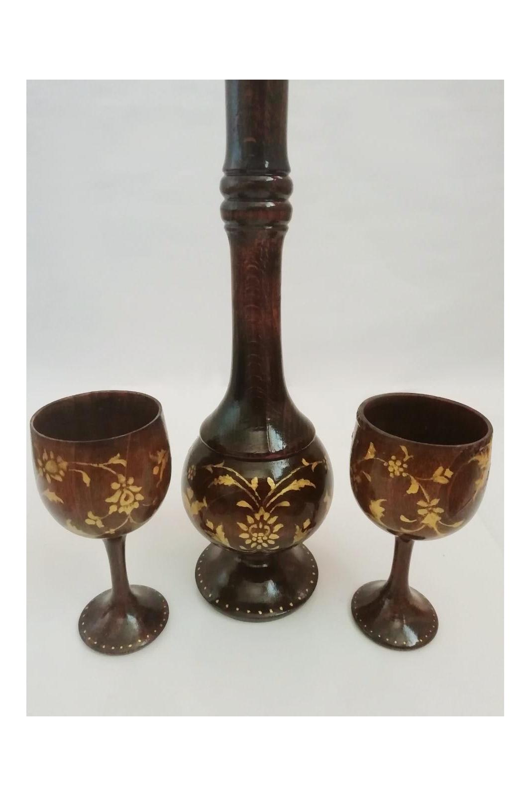 صراحی و جام های دستساز چوبی اصل ( شامل تنگ صراحی و دو جام )