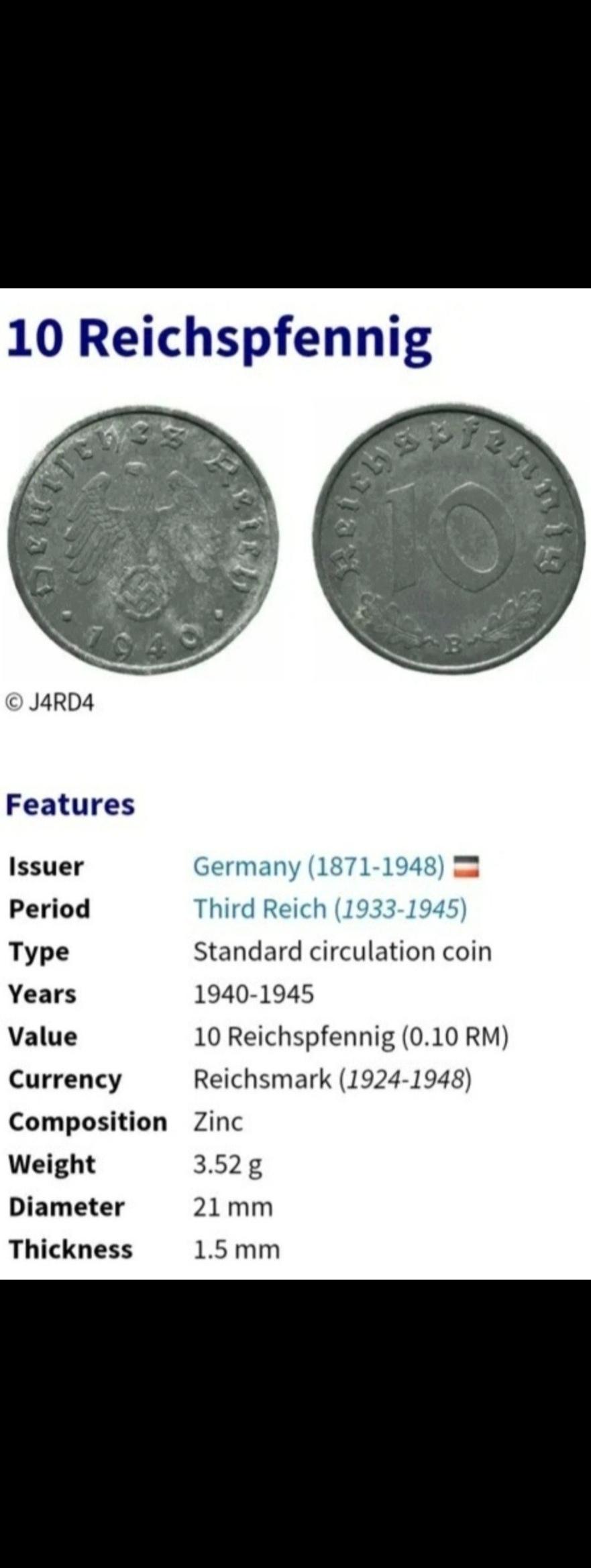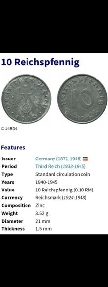 سکه 10 فنیگ آلمان نازی رایش هیتلر و جنگ دوم