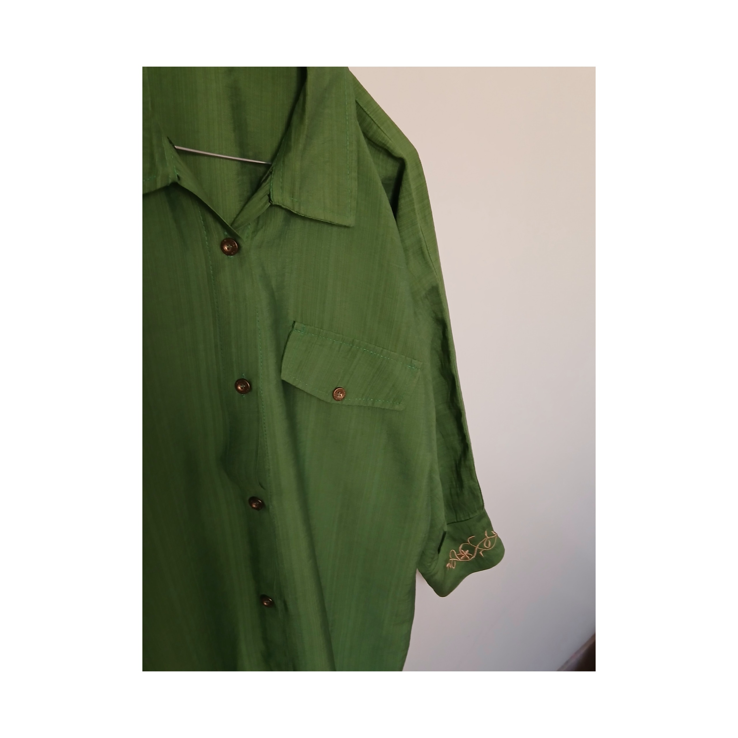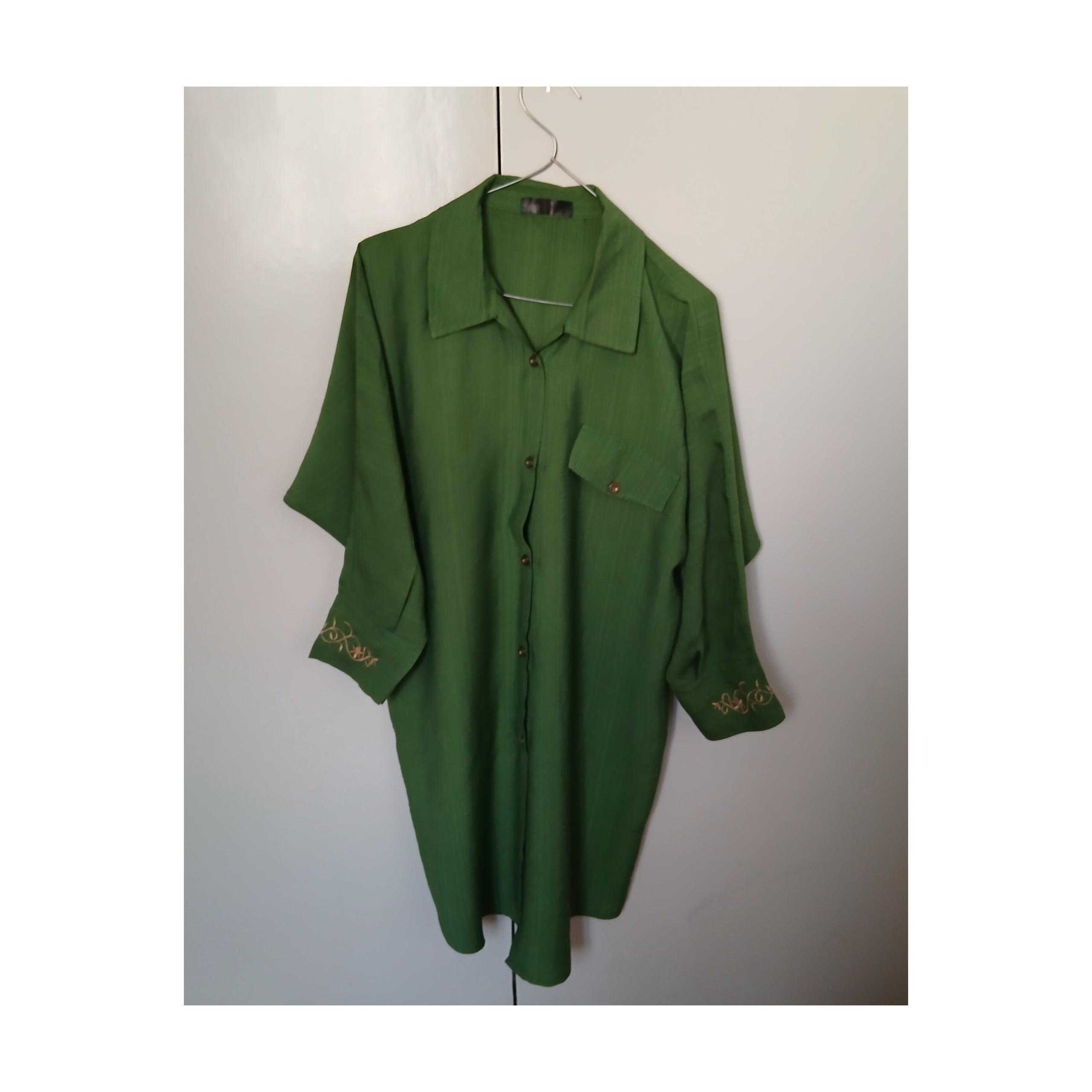 مانتو زنانه گلدوزی سبز خوشرنگ فری سایز تا 46 48 اندازه است