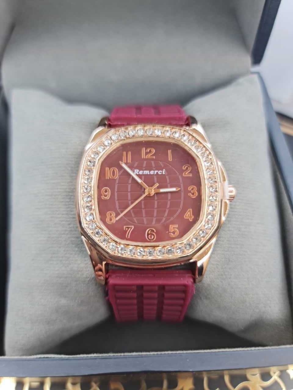 ساعت قاب فلزی نگین دار زیبا
