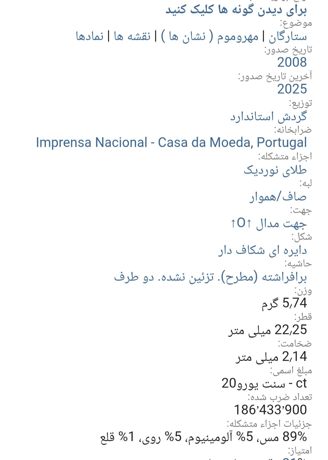اسکن خود سکه می باشد از بعضی سکه تعداد هست برای انتخاب دوستان به صورت جداگانه در فروشگاه چیده شد تصاویراسکن ارائه شده از کالا ملاک خرید قرار دهید در تصاویر دوم سوم چهارم توضیحات کامل هست از ابعاد وزن قطر کالادر خرید خود دقت کنید