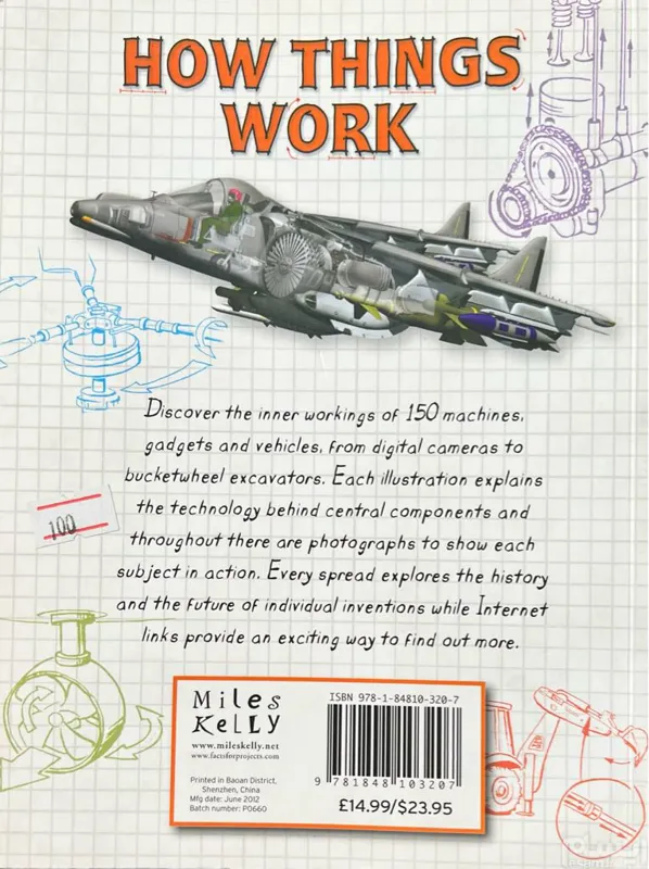 How thing work (چطور چیزها کار میکنند) با جلد هلوگرامی انتشارات مایلز کلی سال 2012 نحوه کارکرد ماشین های سنگین ماشین های نظامی کشتی ها انرژی و دهها عنوان بصورت تصویری و شماتیک و رنگی توضیح میدهد قطع کتاب خشتی / ورق های کتاب هم از جنس مخصوصی ساخته شده و بسیار مقاومه