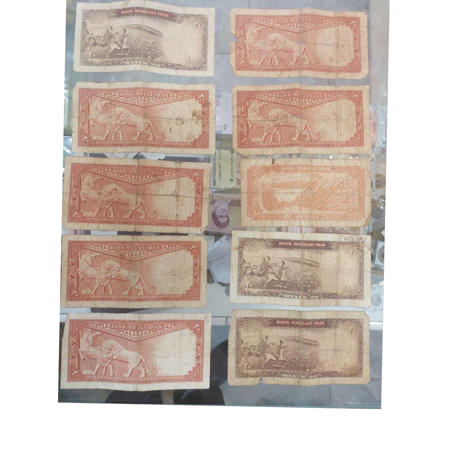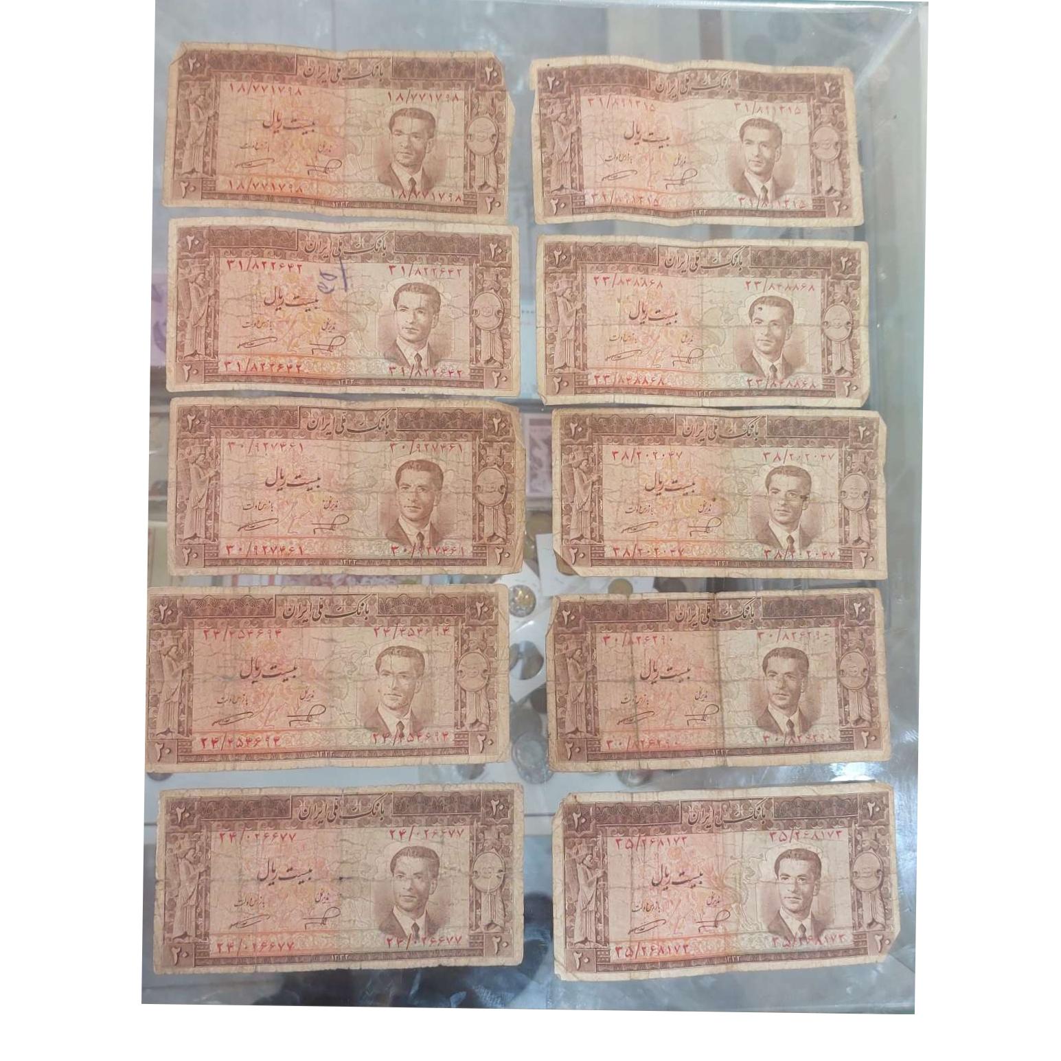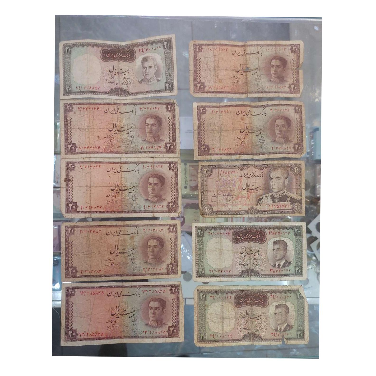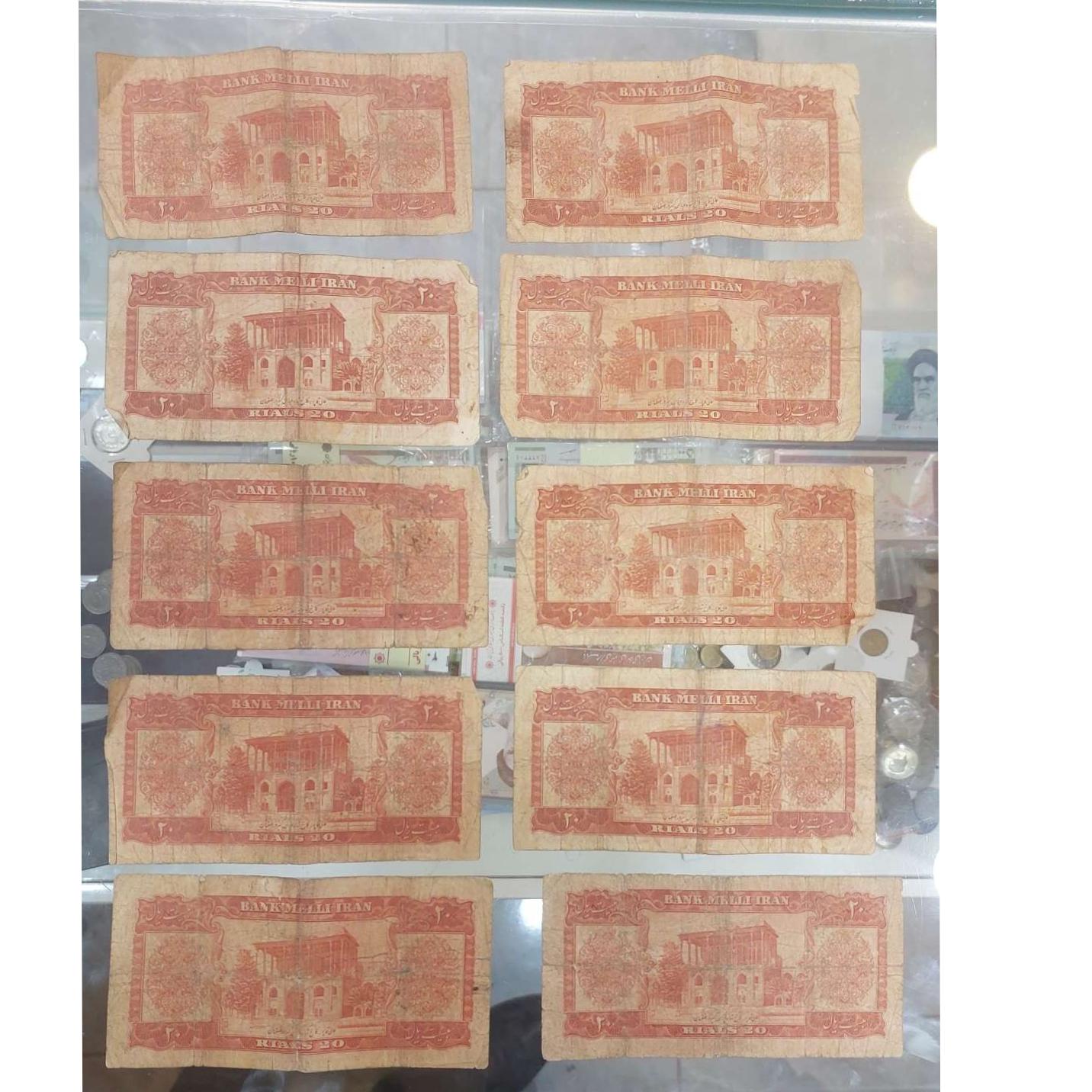20 برگ اسکناس 20 ریالی محمد رضا شاه