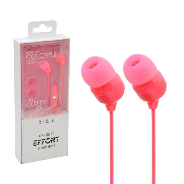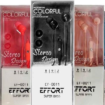 هندزفری ایفورت (EFFORT) مدل EF-0011 یکی از محصولات باکیفیت این برند است. این محصول با ابعاد کوچک و ارگونومی مناسب به راحتی داخل گوش قرار می گیرد. سری این هندزفری از نوع سیلیکونی است که احساس راحتی نسبتا خوبی به شما القا می کند. هندزفری 0010 ایفورت با رابط جک 3.5 میلیمتری صدا به دستگاه شما متصل میشود و صدایی با حساسیت 105 دسی بل در بازه فرکانسی 20-20000 هرتز را درایور 10 میلیمتری خود تولید و به گوش شما میرساند. طول کابل این هندزفری حدودا 1.13 متر است و روی آن یک دکمه برای کنترل تماس یا موسیقی وجود دارد.