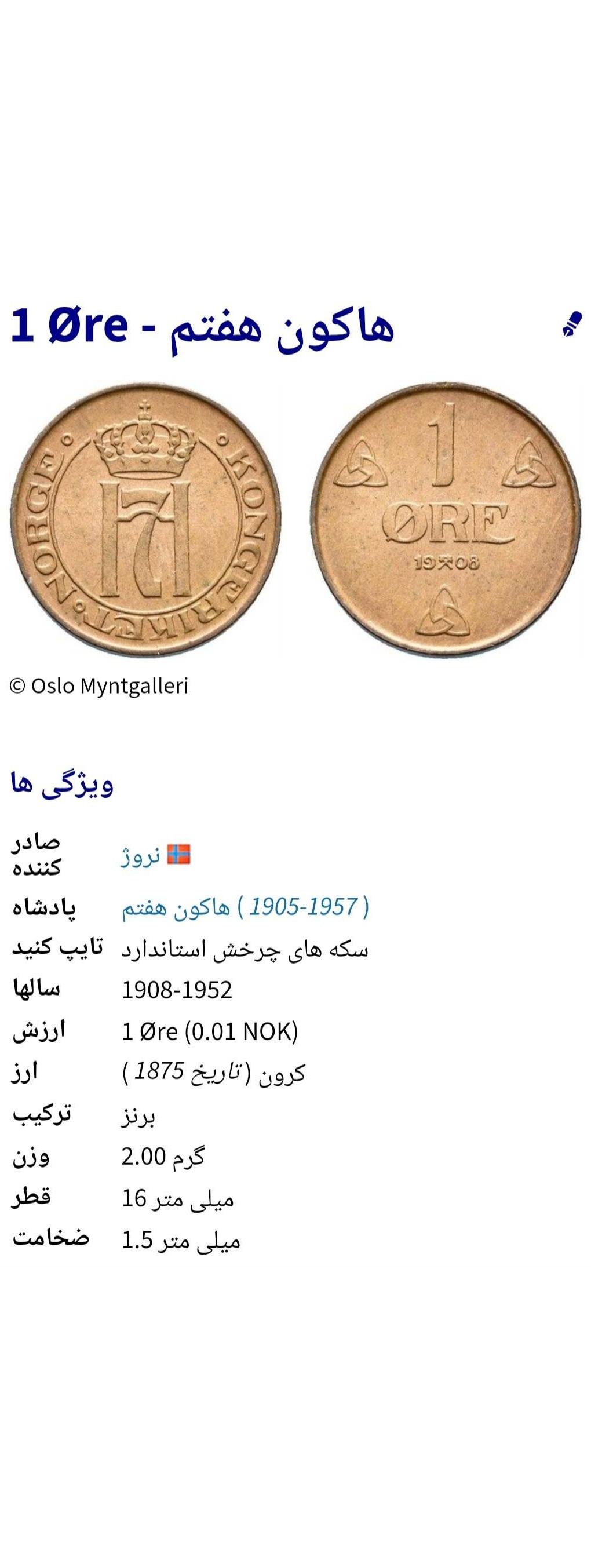 سری سکه های قدیمی و برنز پادشاهی نروژ