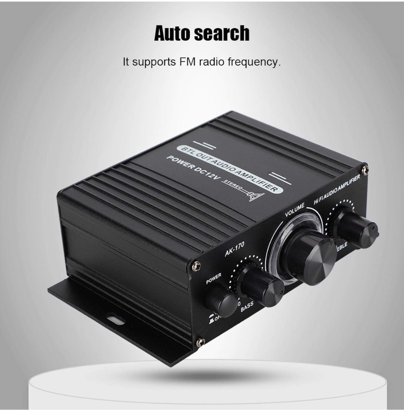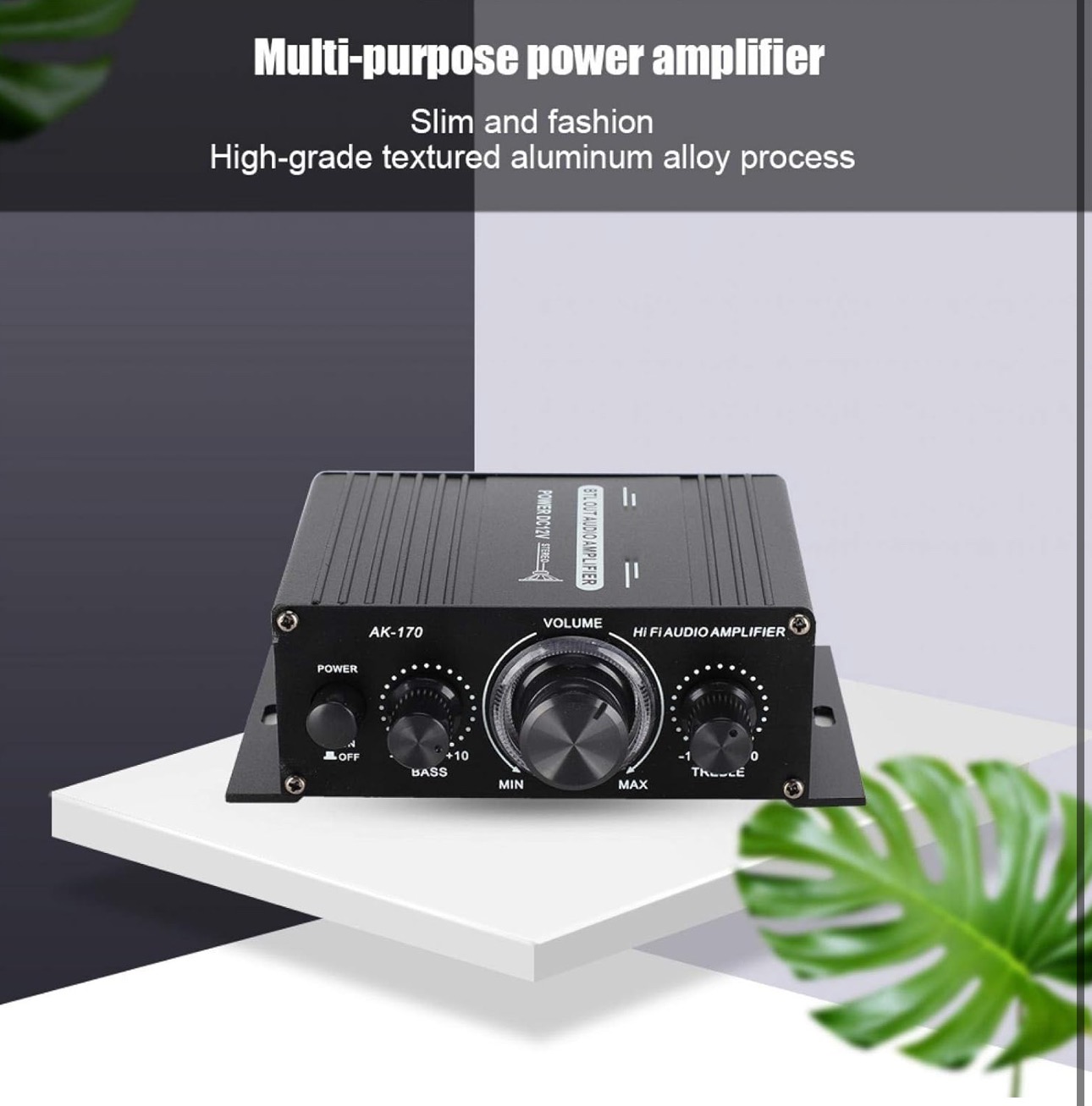 آمپلی فایر صوتی مینی، آمپلی فایر قدرتمند ASHATA 12V AK170 مینی، با نرخ اعوجاج پایین برای صدا، وضوح 20 وات + 20 وات 47K، باریک و مدرن، آسان برای استفاده،