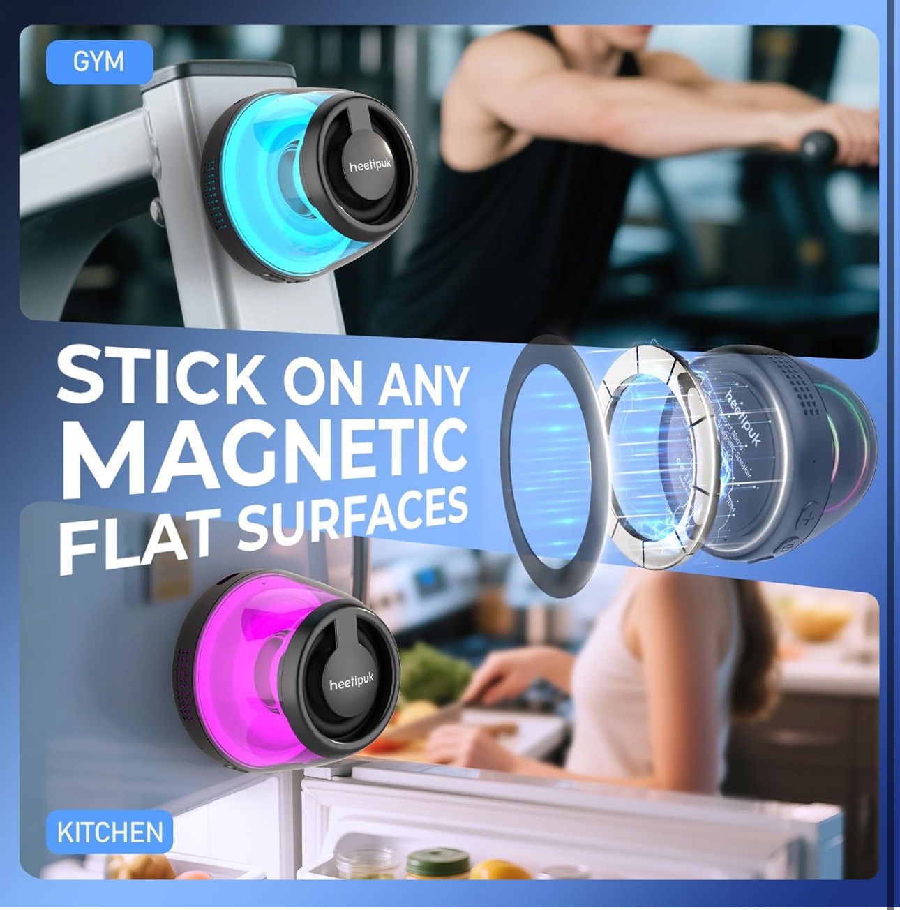 هر جا که باشید میچسبداین اسپیکر بلوتوث کوچک دارای یک پایه مغناطیسی منحصر به فرد است که میتواند به هر سطح فلزی مغناطیسی بچسبد. بنابراین این اسپیکر قابل حمل میتواند به تجهیزات تناسب اندام، یخچال یا میلههای فلزی ماشین گلف متصل شود. میتوانید از حلقه مغناطیسی موجود برای چسباندن اسپیکر بلوتوث بیسیم به سطح صافی که خاصیت مغناطیسی ندارد، مانند تلفن بدون خاصیت مغناطیسی یا قاب تلفن، درب حمام استفاده کنید. این اسپیکر القایی برای تلفن میتواند به عنوان پایه تلفن به صورت افقی یا عمودی عمل کند.