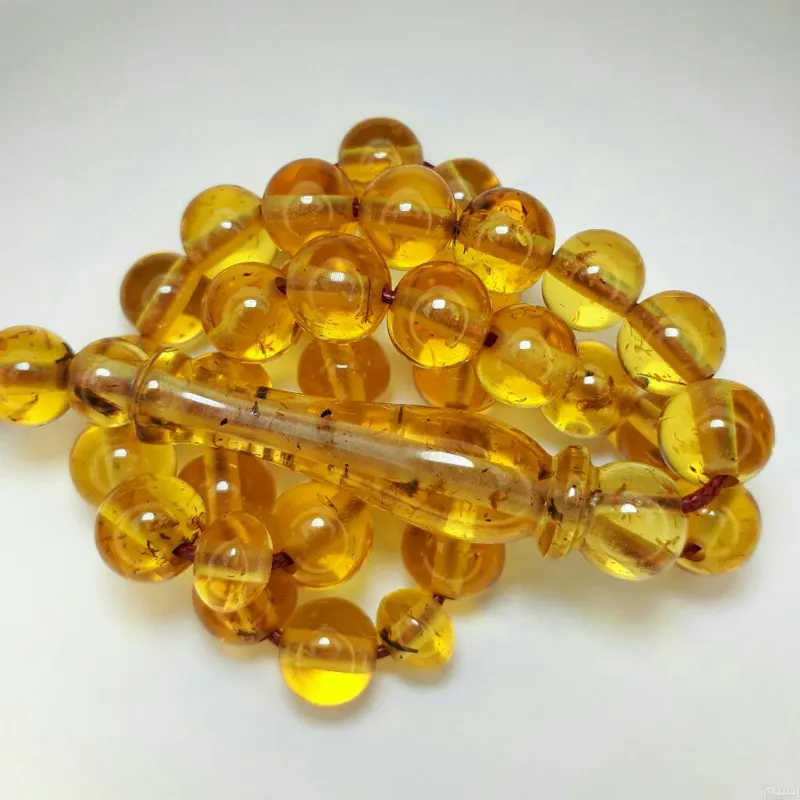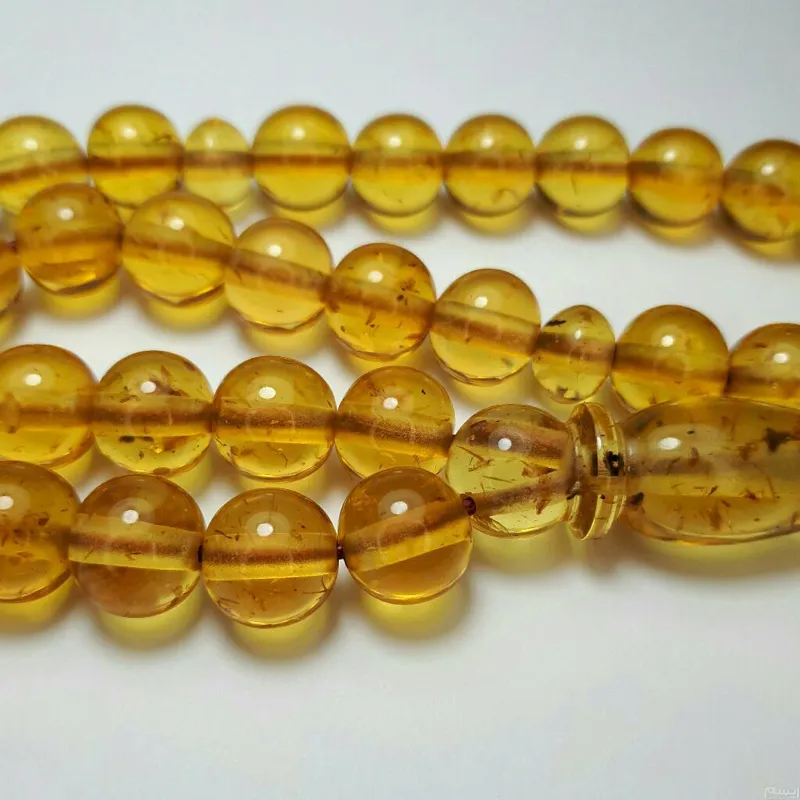 تسبیح کهربا طبیعی اصل لهستان فسیلی