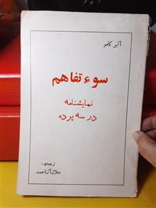 کد 1351 نمایشنامه سوء تفاهم در سه پرده/ از آلبرت کامو /ترجمه جلال آل احمد/ در 120 صفحه /چاپ سوم سال 49 /جلد و صفحات سالم میباشد جلد مطابق تصاویر دارای زدگی و لکههایی میباشد