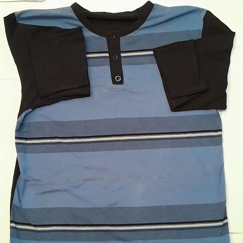 تی شرت مردانه شیک مجلسی آبی مشکی طرح سه دکمه آستین بلندطول : 70 سانتعرض : 49 سانتطول آستین : 51آستین ها مشکلی ، رنگ کلی کار آبی و مشکلی به صورت خط وار جنس : نخ کیفیت عالی و خنک مناسب پاییز و یا تابستانعرض شانه : 15 سانتنو دفت کنید پیراهن بسته بندی نیست و البته در انبار بوده است یک بار باید بعد از خرید بشویید تا بوی نویی از آن برود