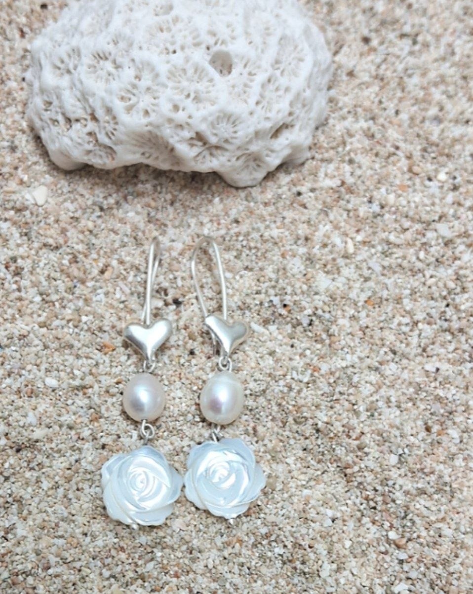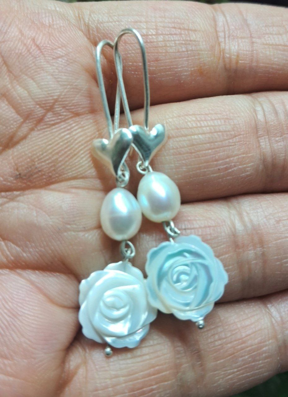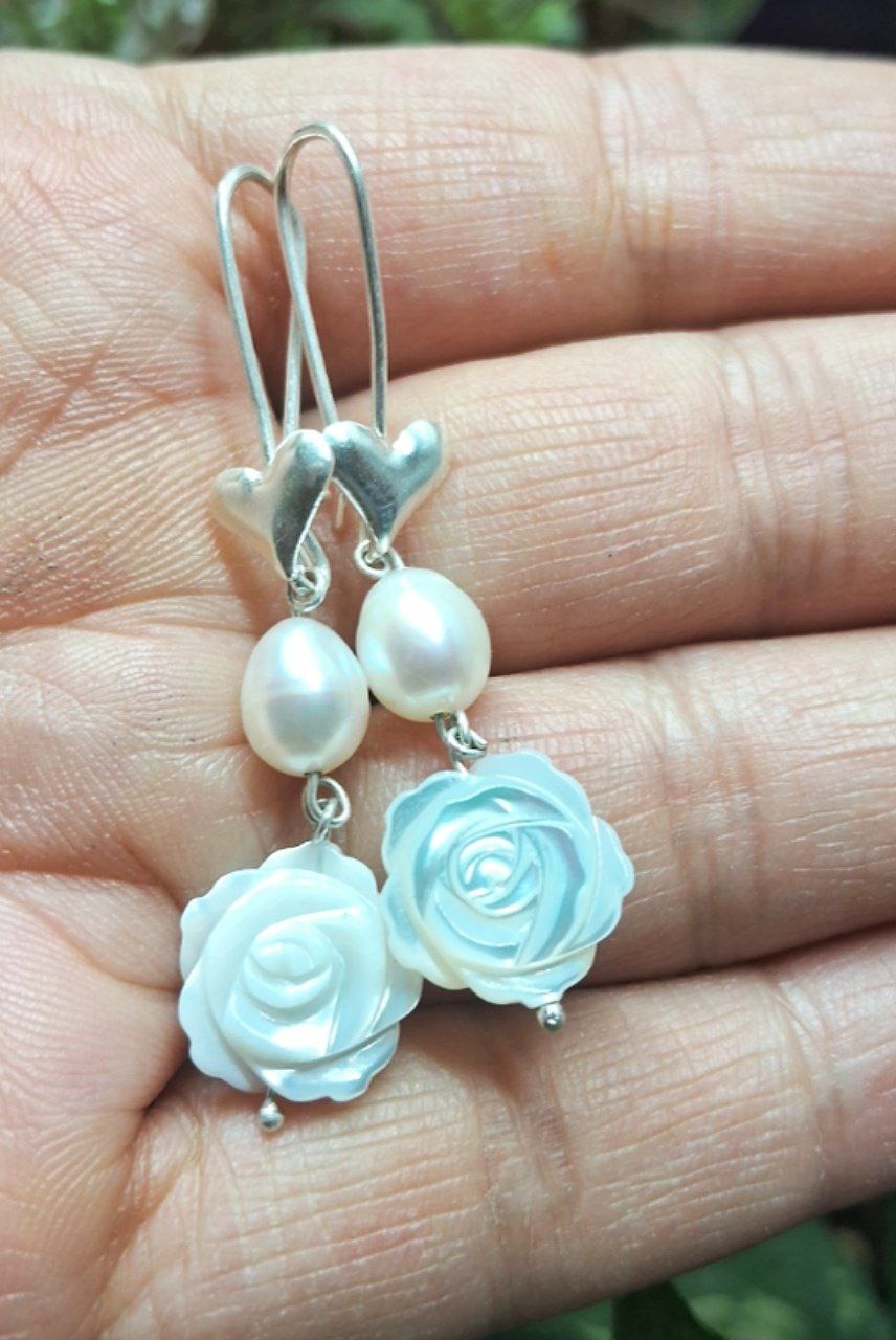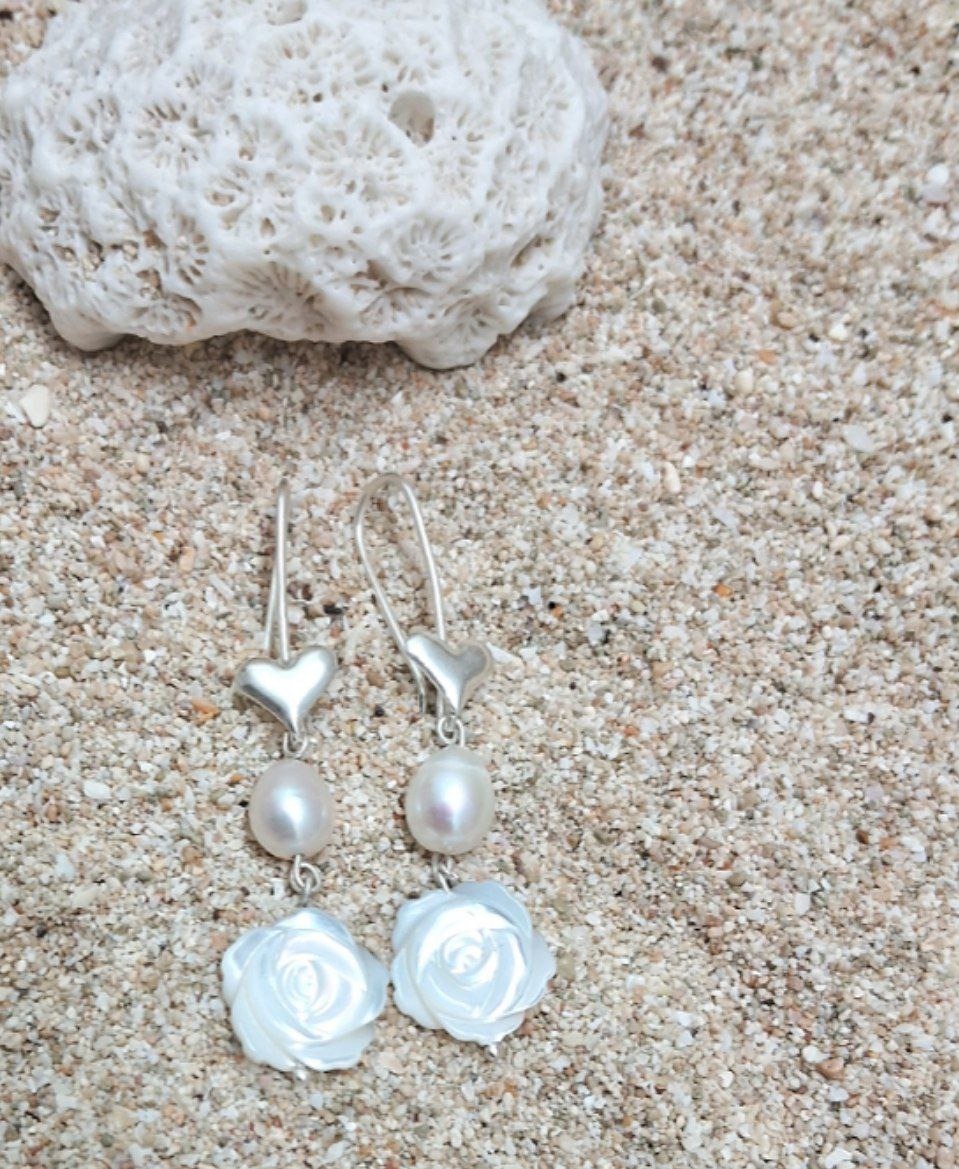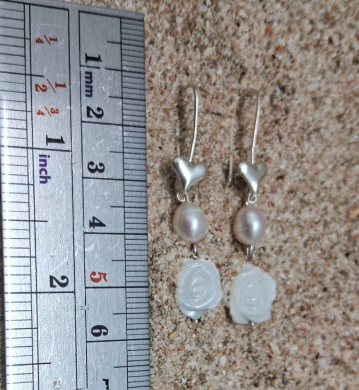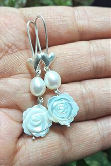 گوشواره نقره صدف طبیعی گل برجسته و مرواریدکد E 551