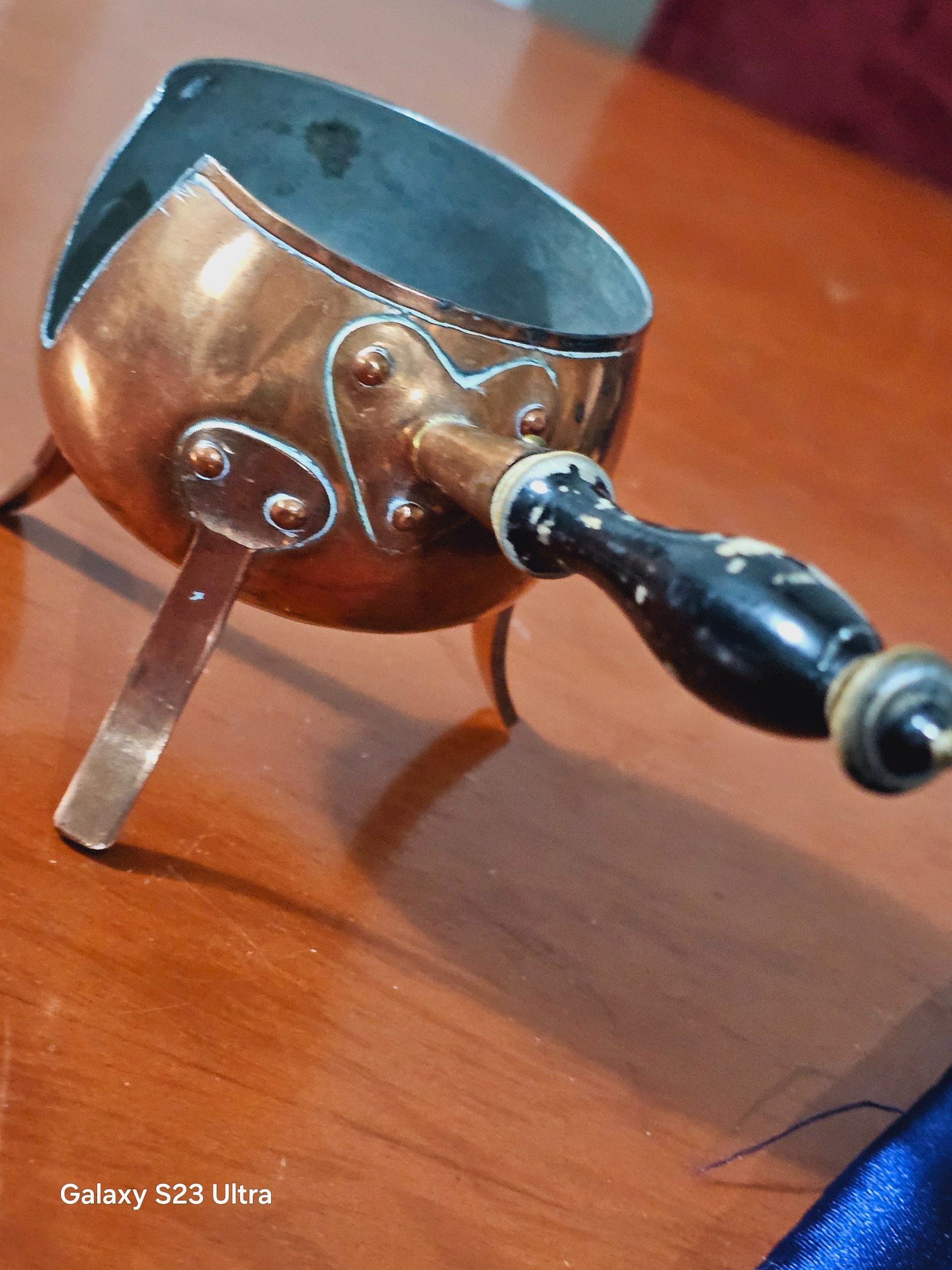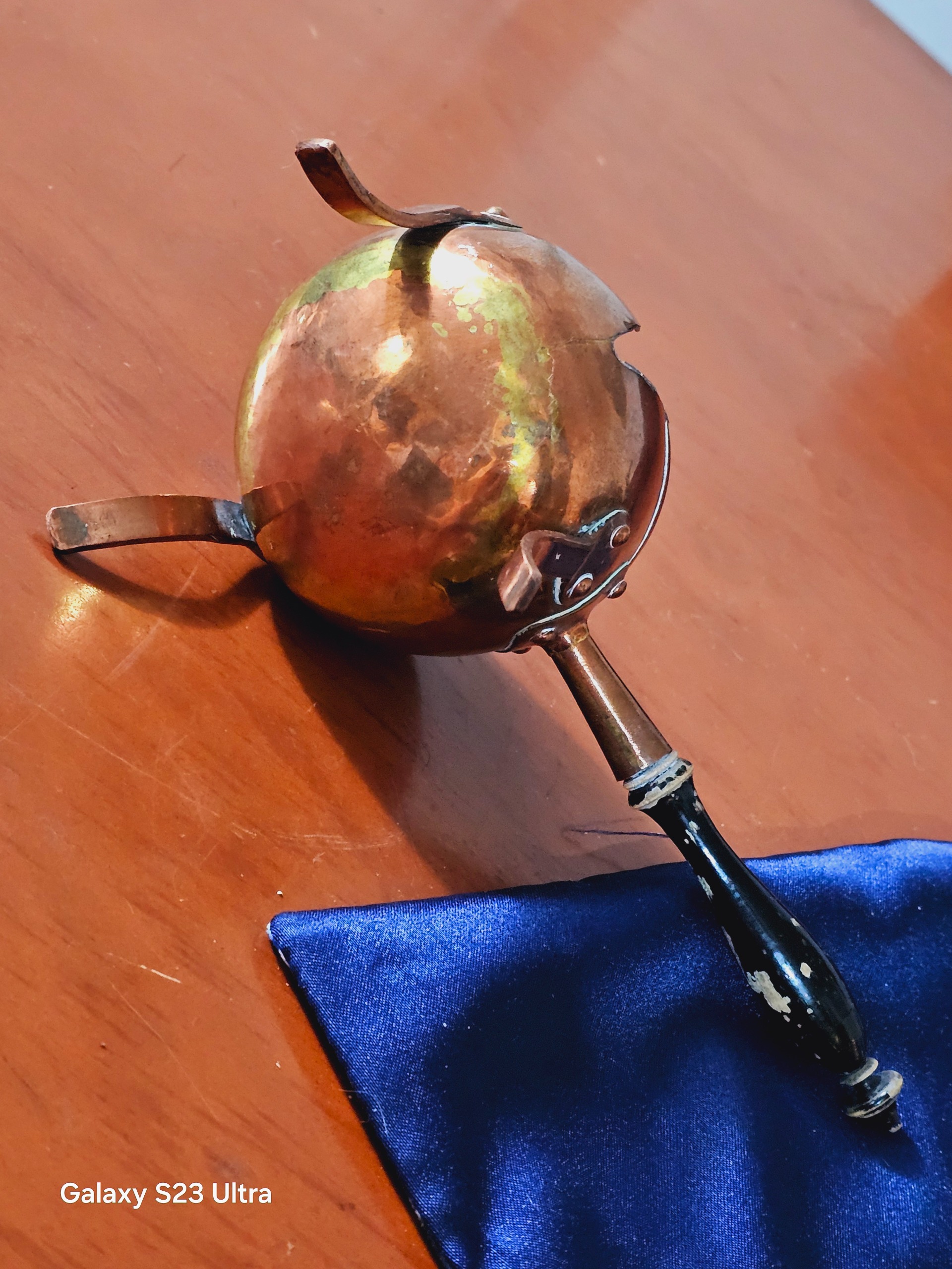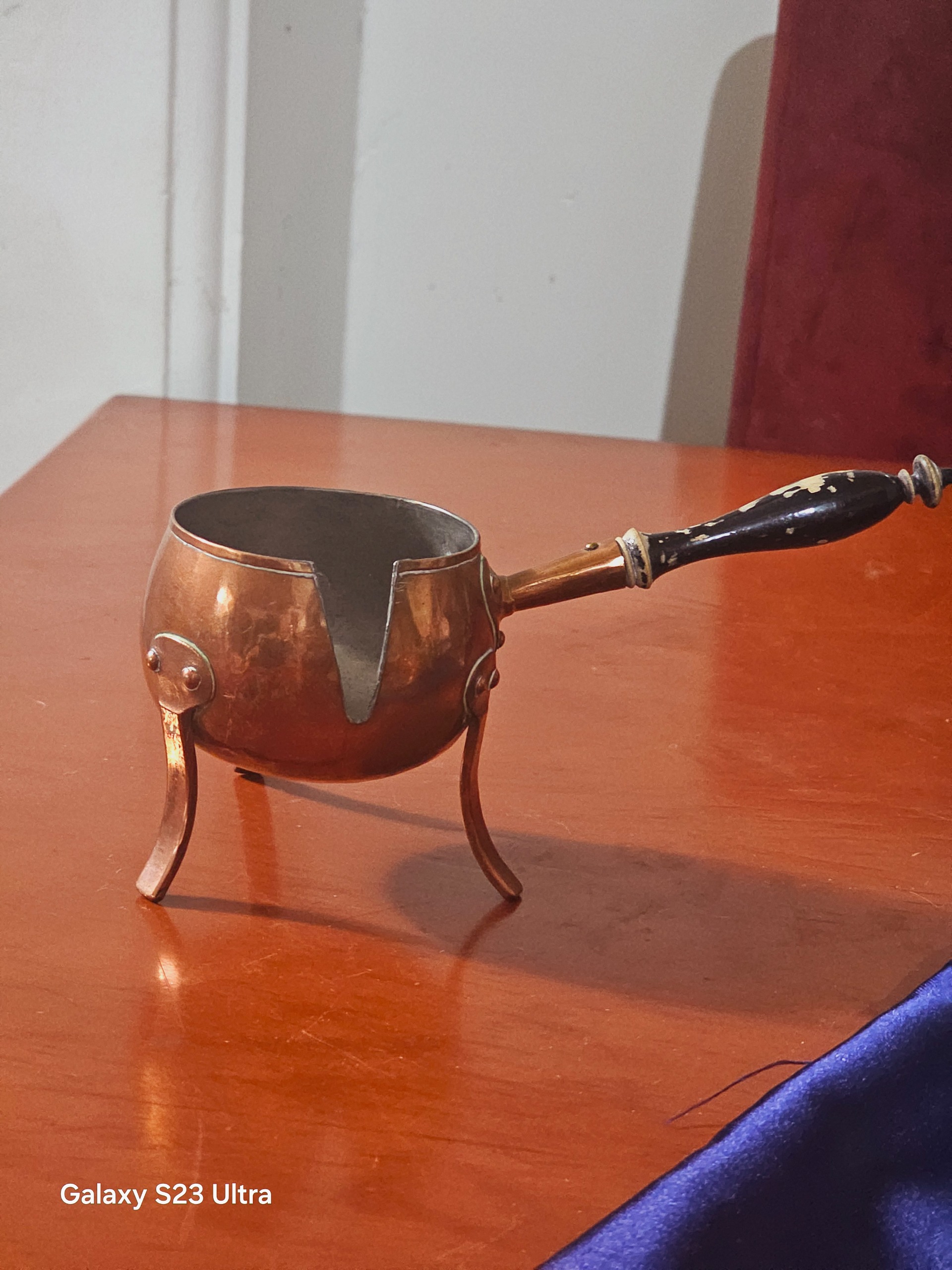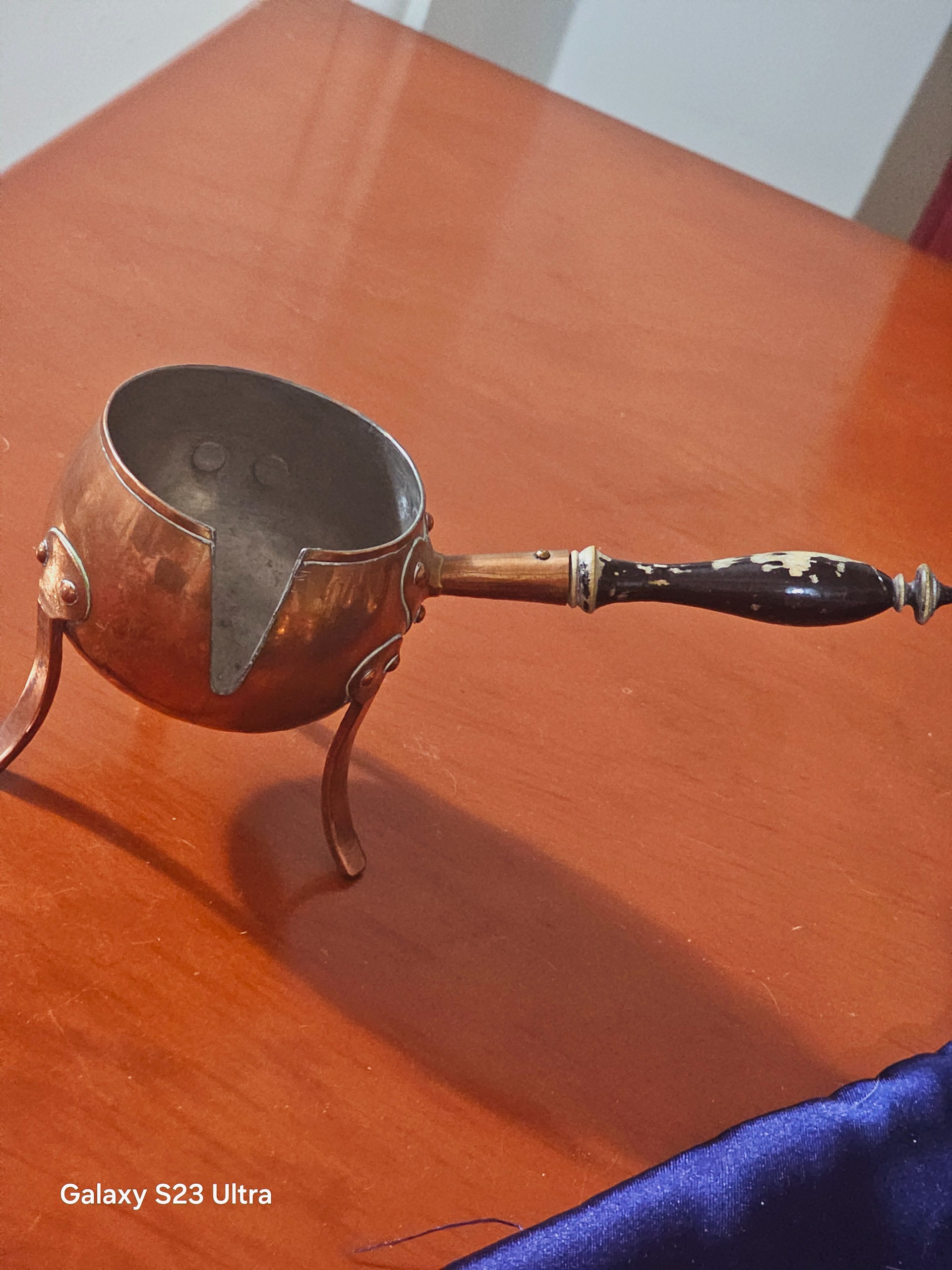 قهوه جوش مسی اروپایی خریداری شده از المان کار قدیمی خاص برای دوستداران آنتیک دسته چوبی یکم رنگ رفتگی داره زوم کنید مشاهده کنید ولی هود مس تمییز و سالم