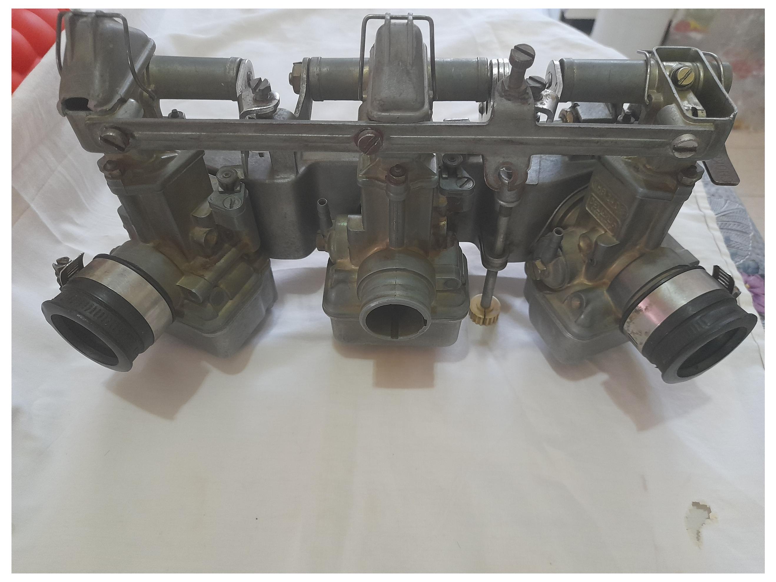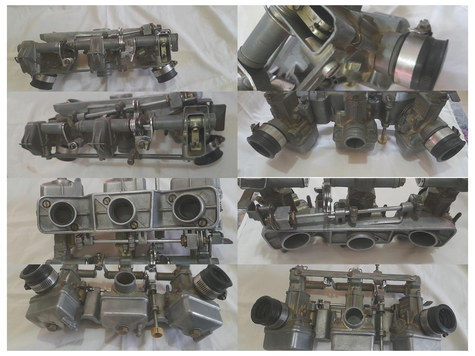 * یک عدد از درپوش های بالای گم شده و باید توسط خریدار تهیه شوند.-یکعدد از درپوشهای موجود هم کمی پریدگی دارد .یک مقدار کمی لبه نشیمنگاه همان درپوش کوچک بالای کاربراتور - که الان موجود نیست( مطابق عکس) قر شده که قابل ترمیم است و مشکلی پیش نمی اید.از دقت شما متشکرم*