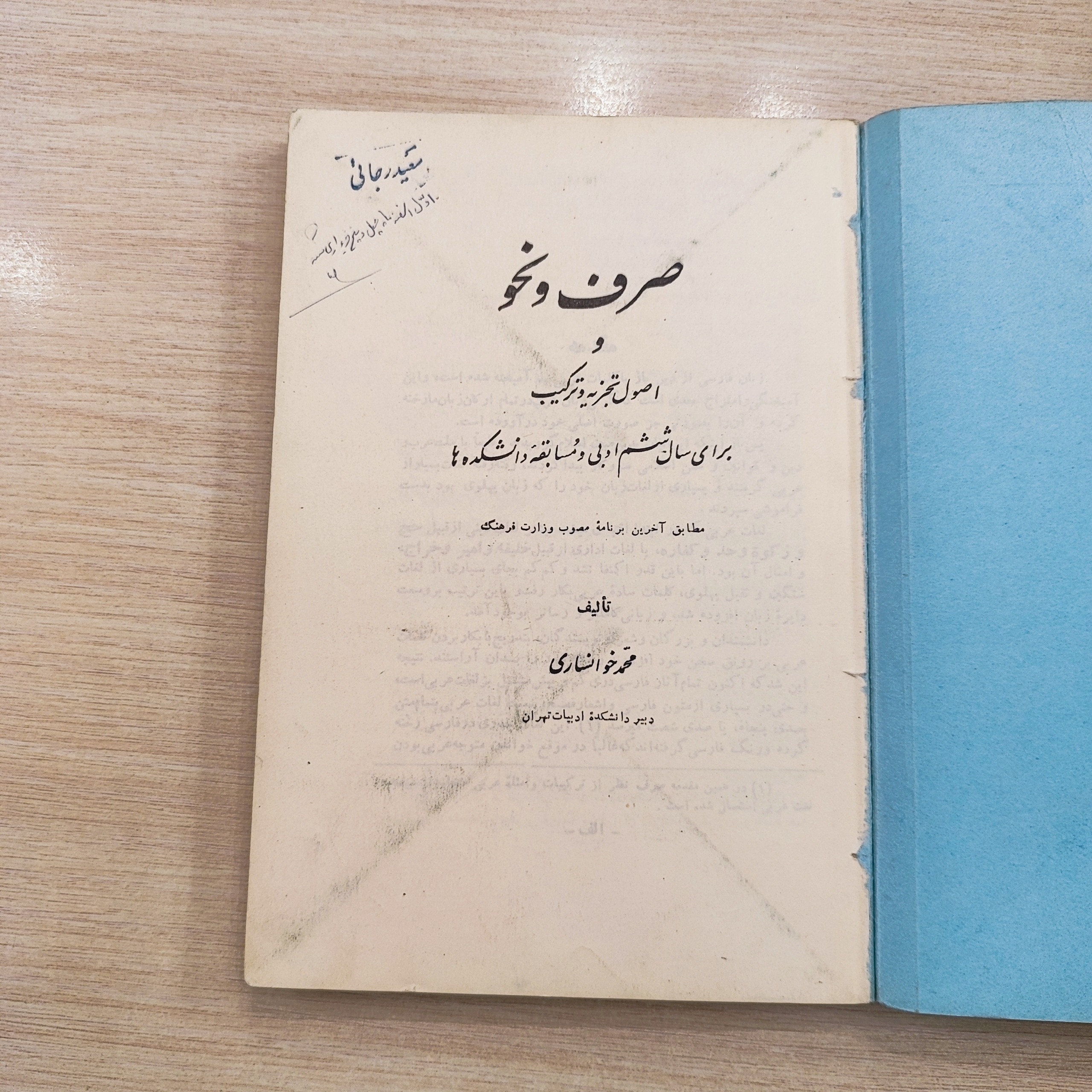 صرف و نحو اصول تجزیه و ترکیب برای سال ششم دبیرستان و مسابقه دانشکده ها مطابق آخرین برنامه آموزش و پرورش تالیف محمد خوانساری دبیر دانشده ابیات تهران