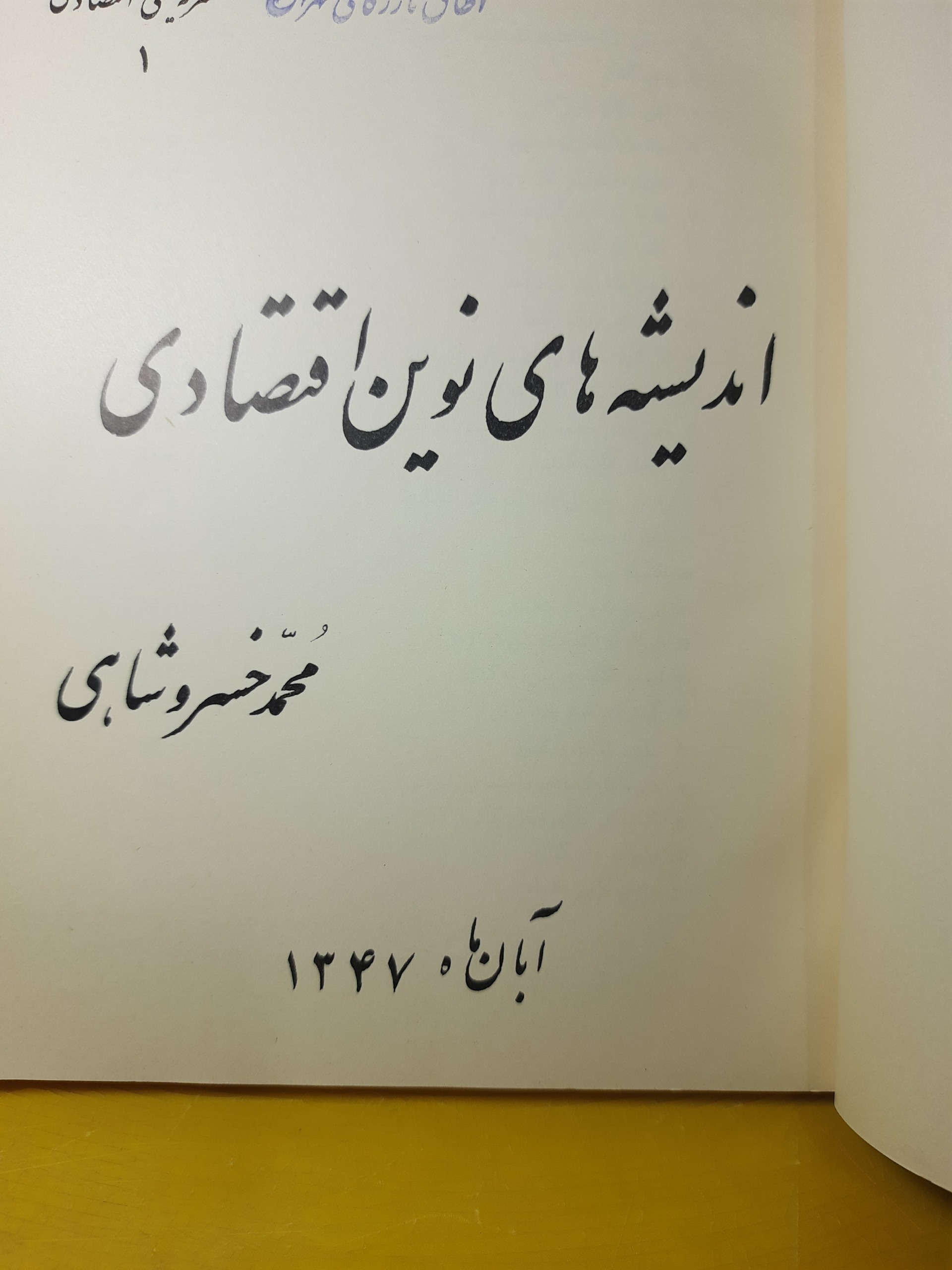 کد 1359 اندیشههای نوین اقتصادی /از محمد خسروشاهی/ چاپ آبان سال 47/ در 212 صفحه/ نشریه صبح امروز/ جلد و صفحات کاملاً سالم میباشد/