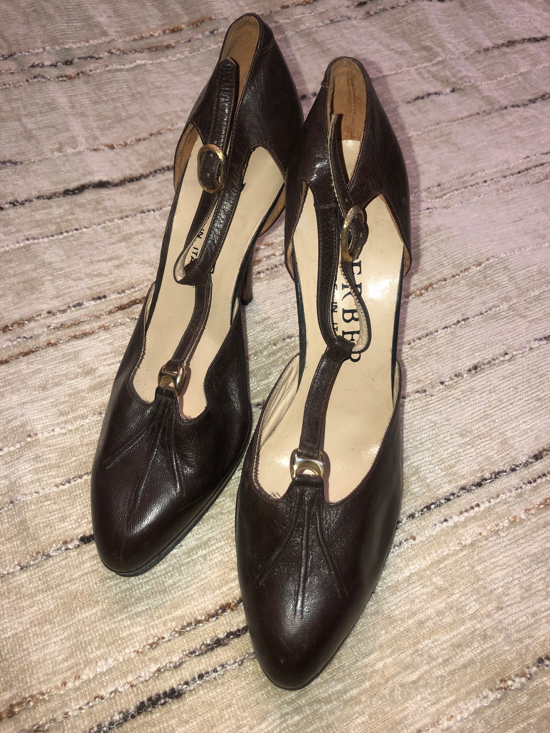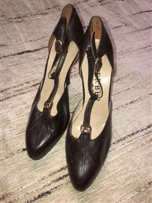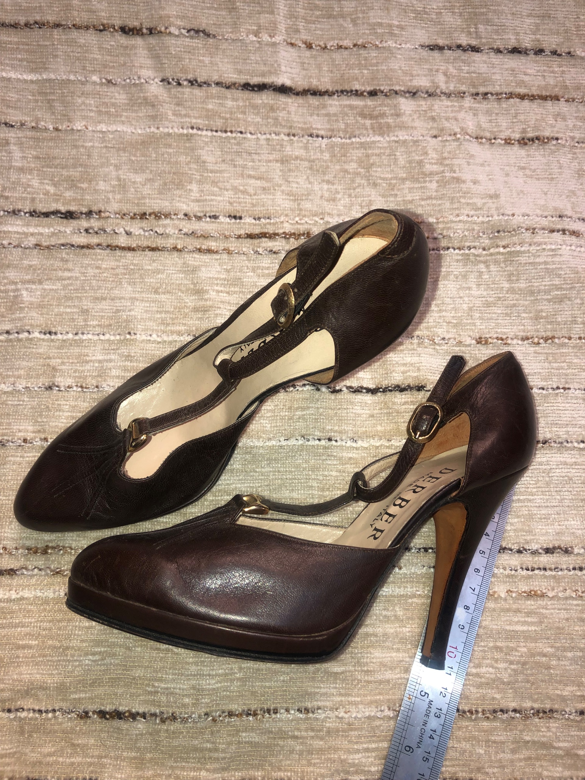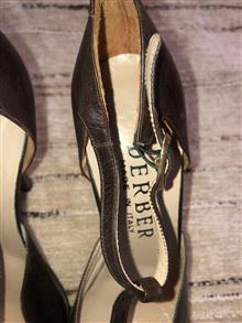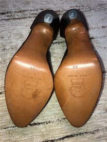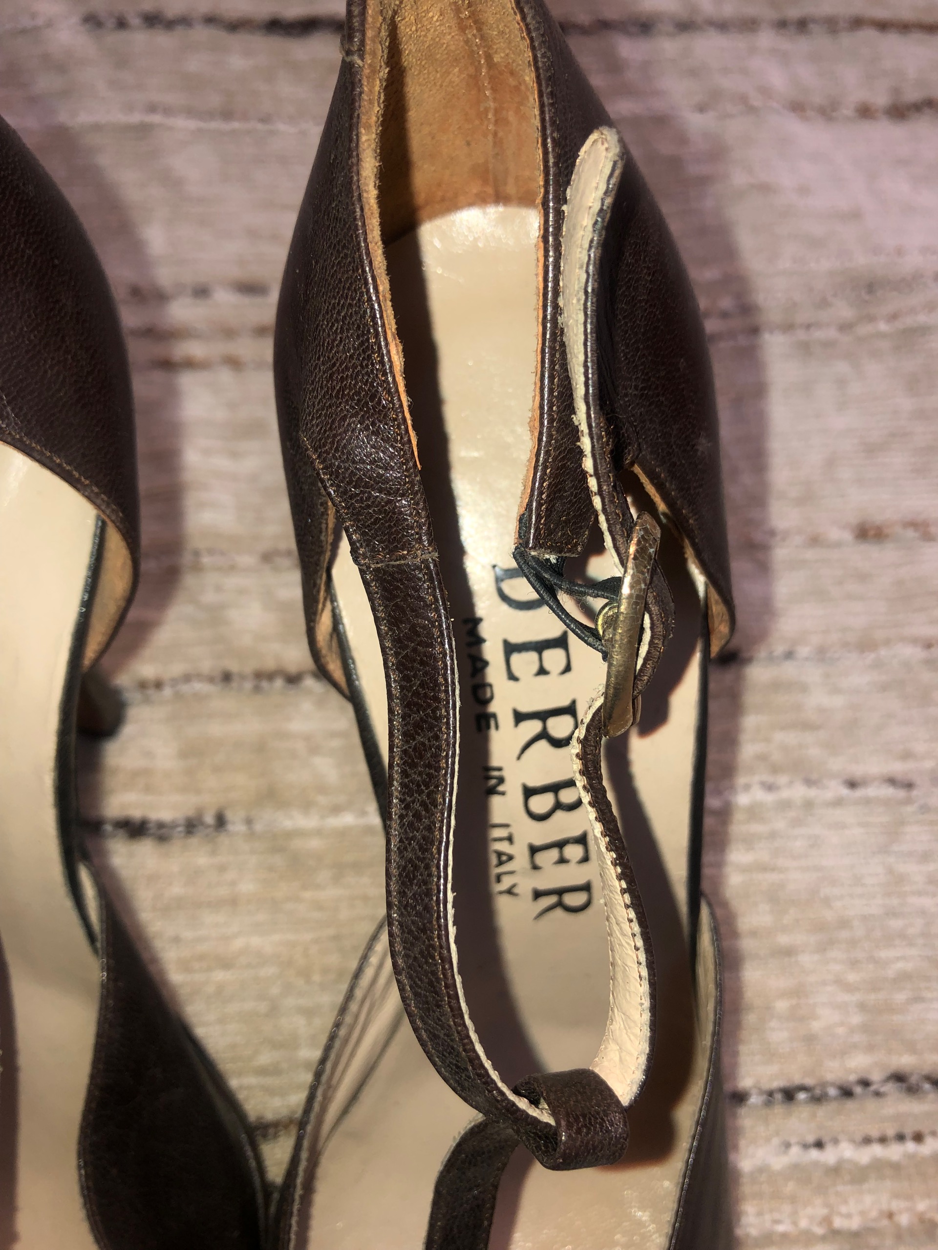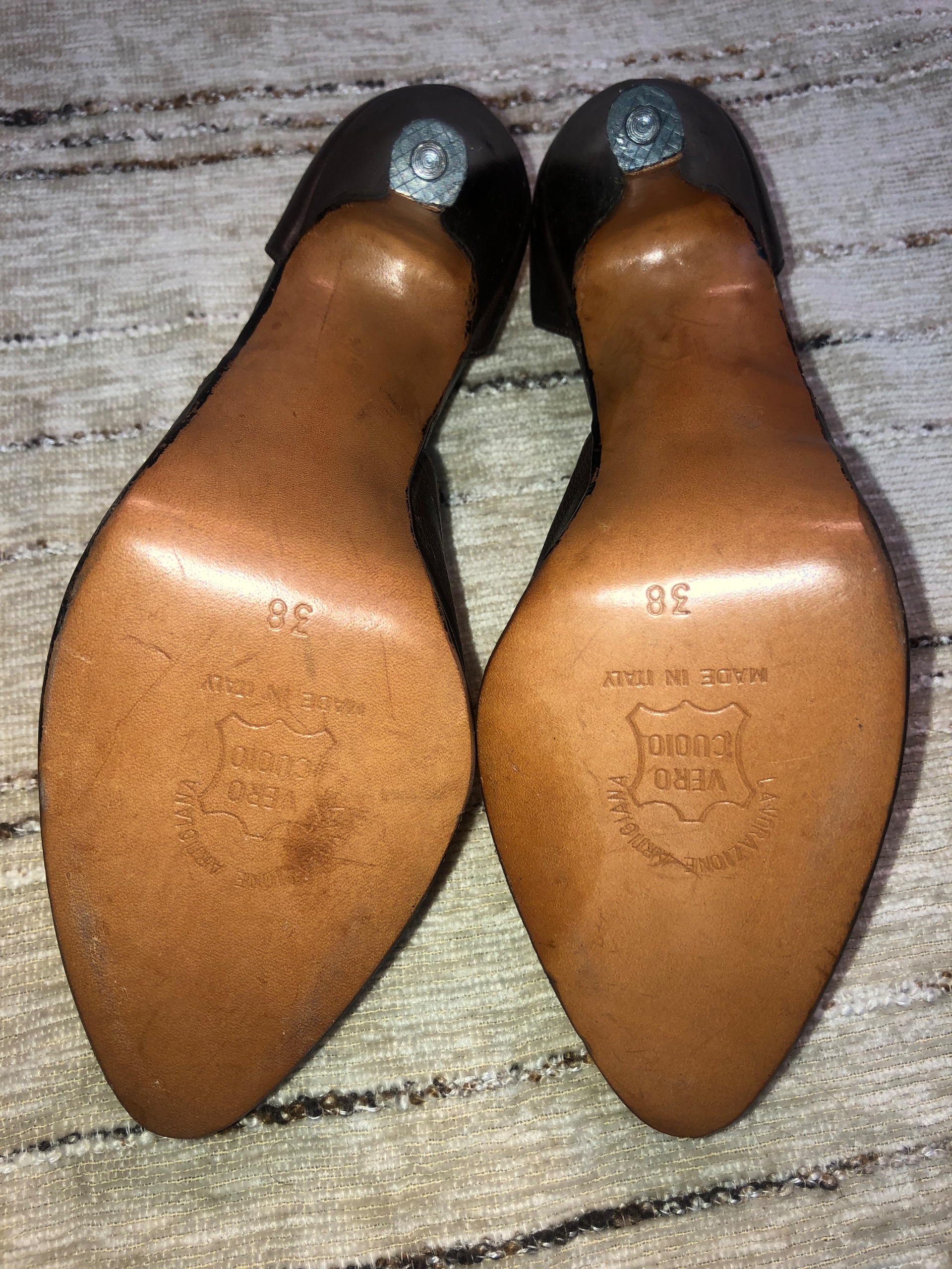 کفش پاشنه یازده سانتی ایتالیایی هم روی کفش و هم زیر کفش چرم طبیعی است رنگ قهوه ای تیره کار خاص و تک مناسب شیک پوشان سایز 38 پنجه باریک