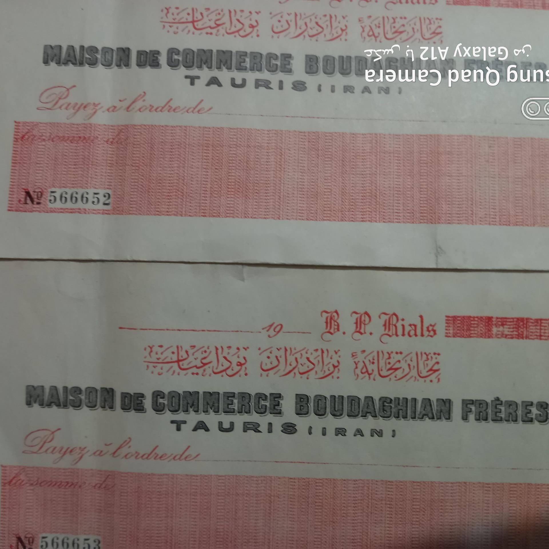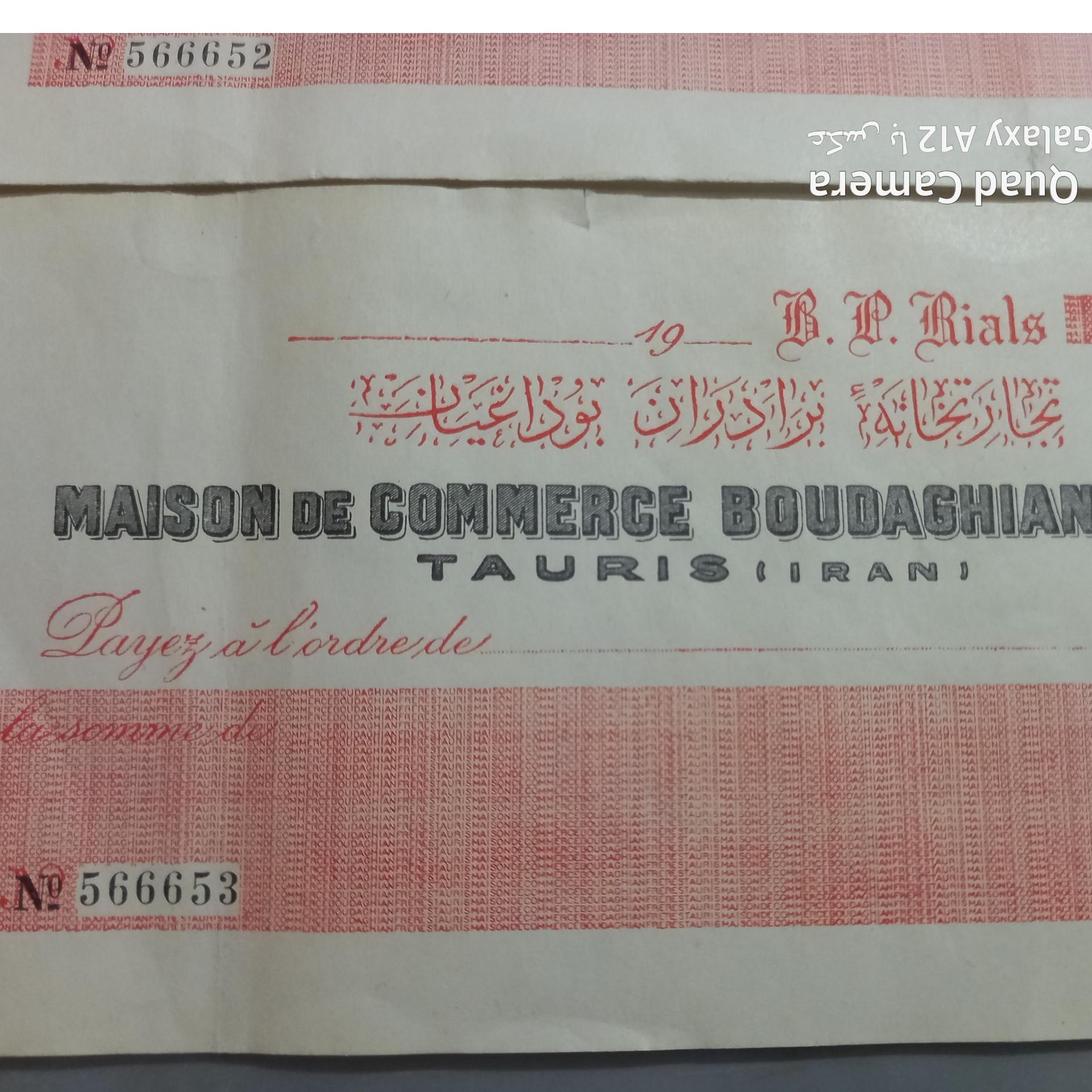 جفت چک قدیمی تجارت خانه غیان بسیار کمیاب بدون تمبر قیمت مناسب گذاشتم برای زمان قاجاره اگر پیشنهاد قیمت دارید بفرمایید