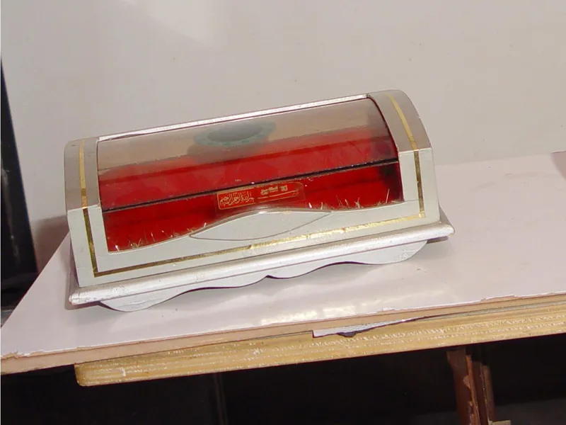 از چوب و شیشه ساخته شده و جای قرآن بوده ولی میشه برای کالاهای کلکسیونی ویترین استفاده کنید