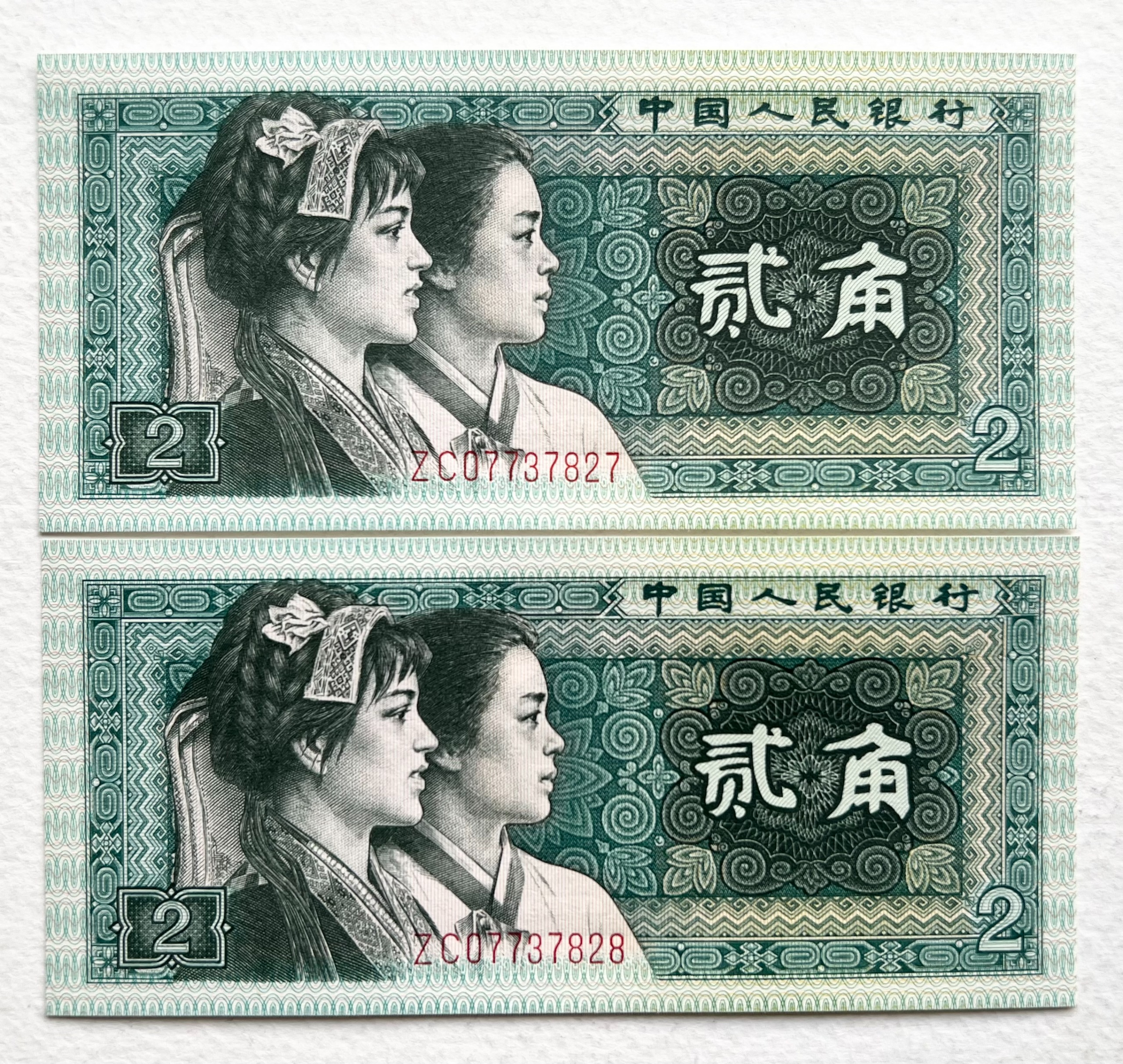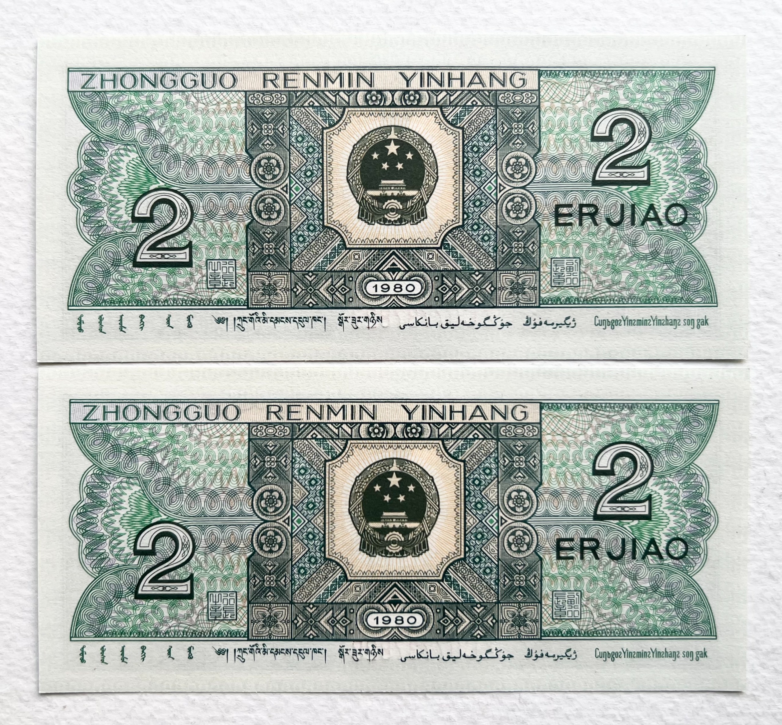 جفت اسکناس نایاب خارجی و قدیمی 2 جیاوو چین (بانکی)