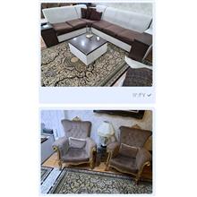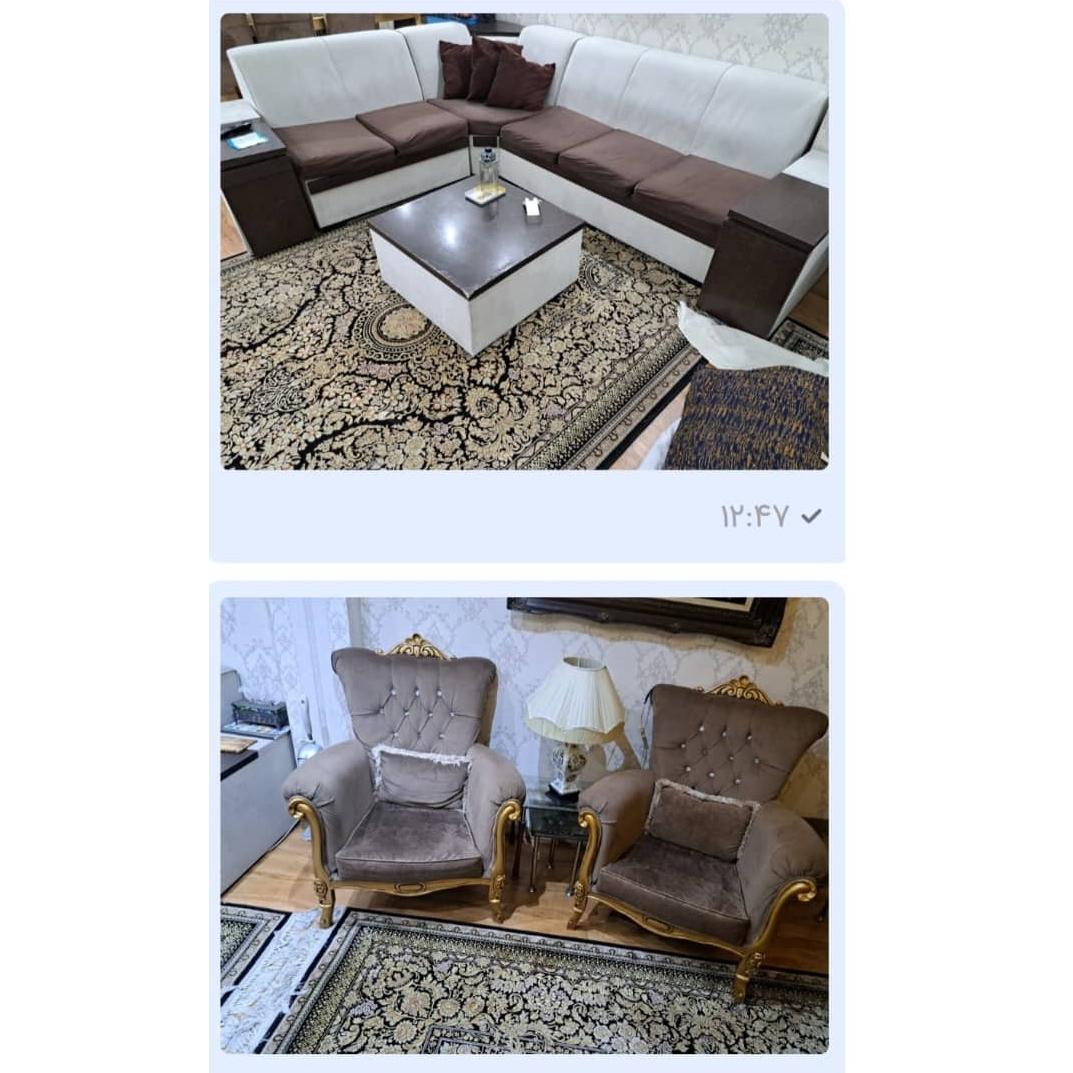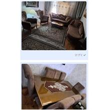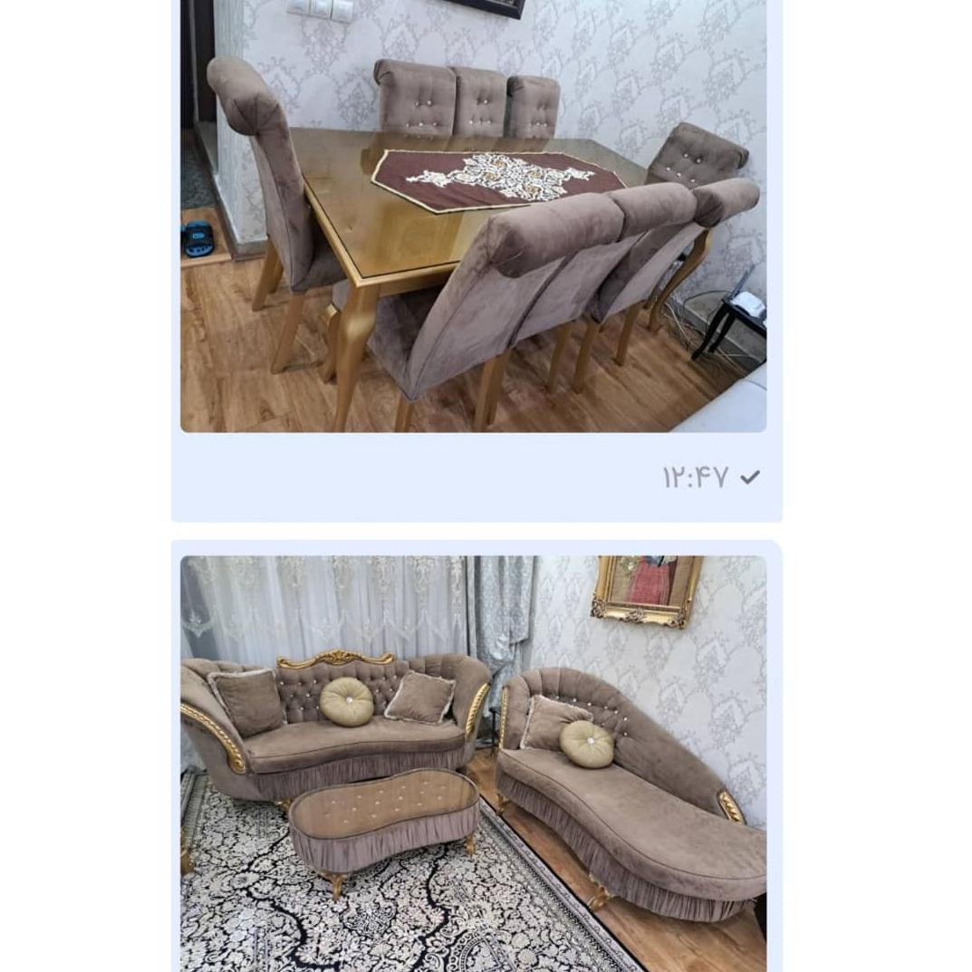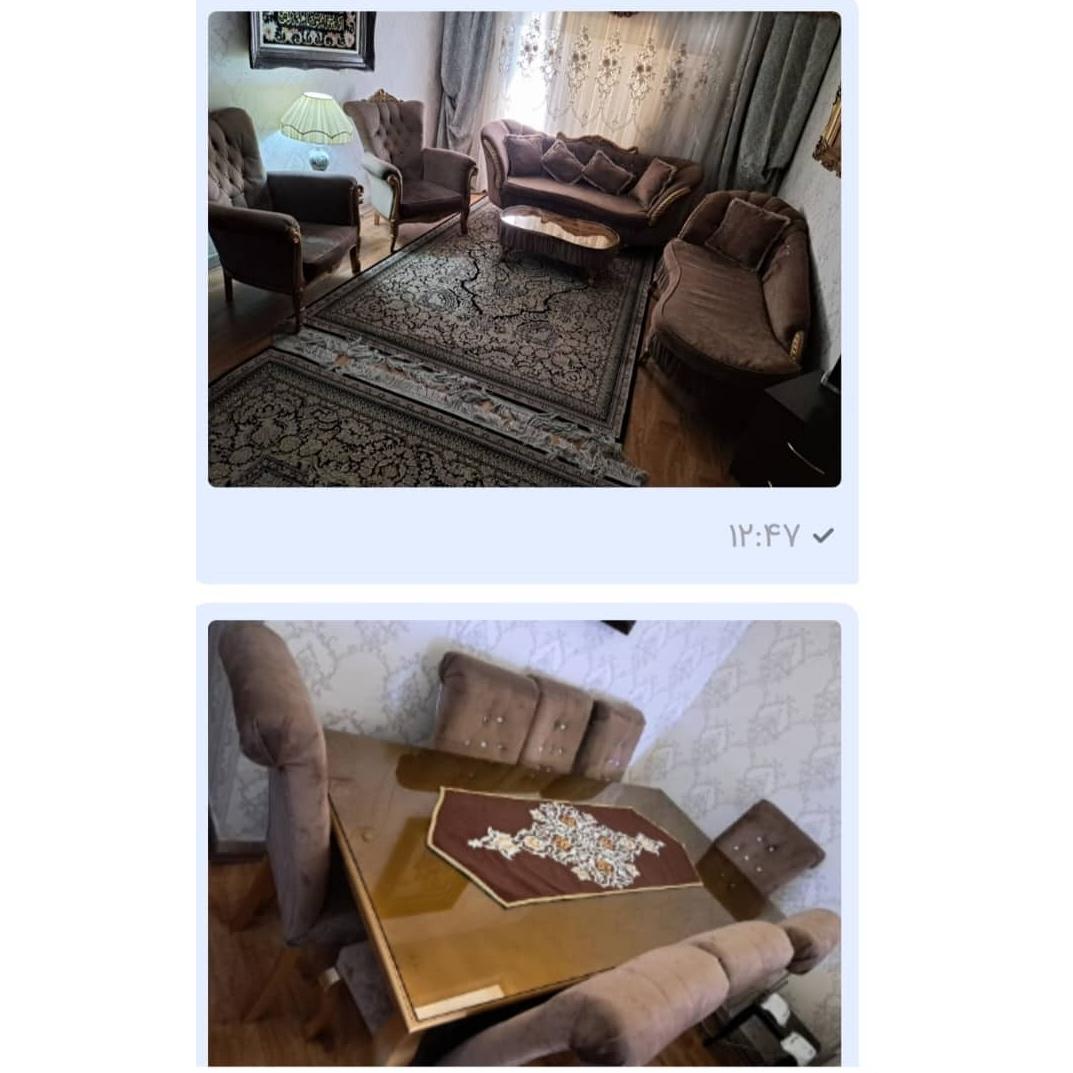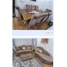 ست مبلمان هفت نفره و میز نهارخوری هشت نفره استیل کلاسیک در حد نو و مبلمان راحتی هفت نفره ال.