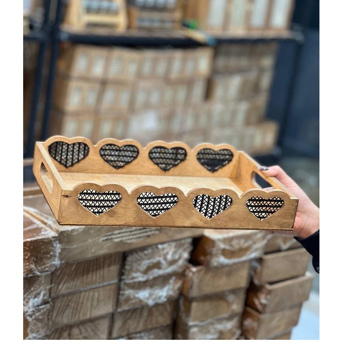 جنس: چوب طبیعی با روکش مقاوم در برابر آب (هیچگونه تغییر ظاهری در اثر تماس با آب ایجاد نمیشود) ارتفاع لبهها: 4 سانتیمتر مناسب برای جلوگیری از لغزش و افتادن لیوانها دستههای کناری: دو دسته محکم برای حمل آسان و ایمن حتی هنگام سرو ظروف داغ م سینی چوبی مدل قلبی حصیری جلوهای گرم و شیک به پذیرایی شما میبخشد و برای سرو چای، نوشیدنی و انواع خوراکی در منزل، کافیشاپ یا رستوران طراحی شده است. این سینی ترکیبی از زیبایی، دوام و کاربری آسان است که تجربه پذیرایی شما را ارتقا میدهد.