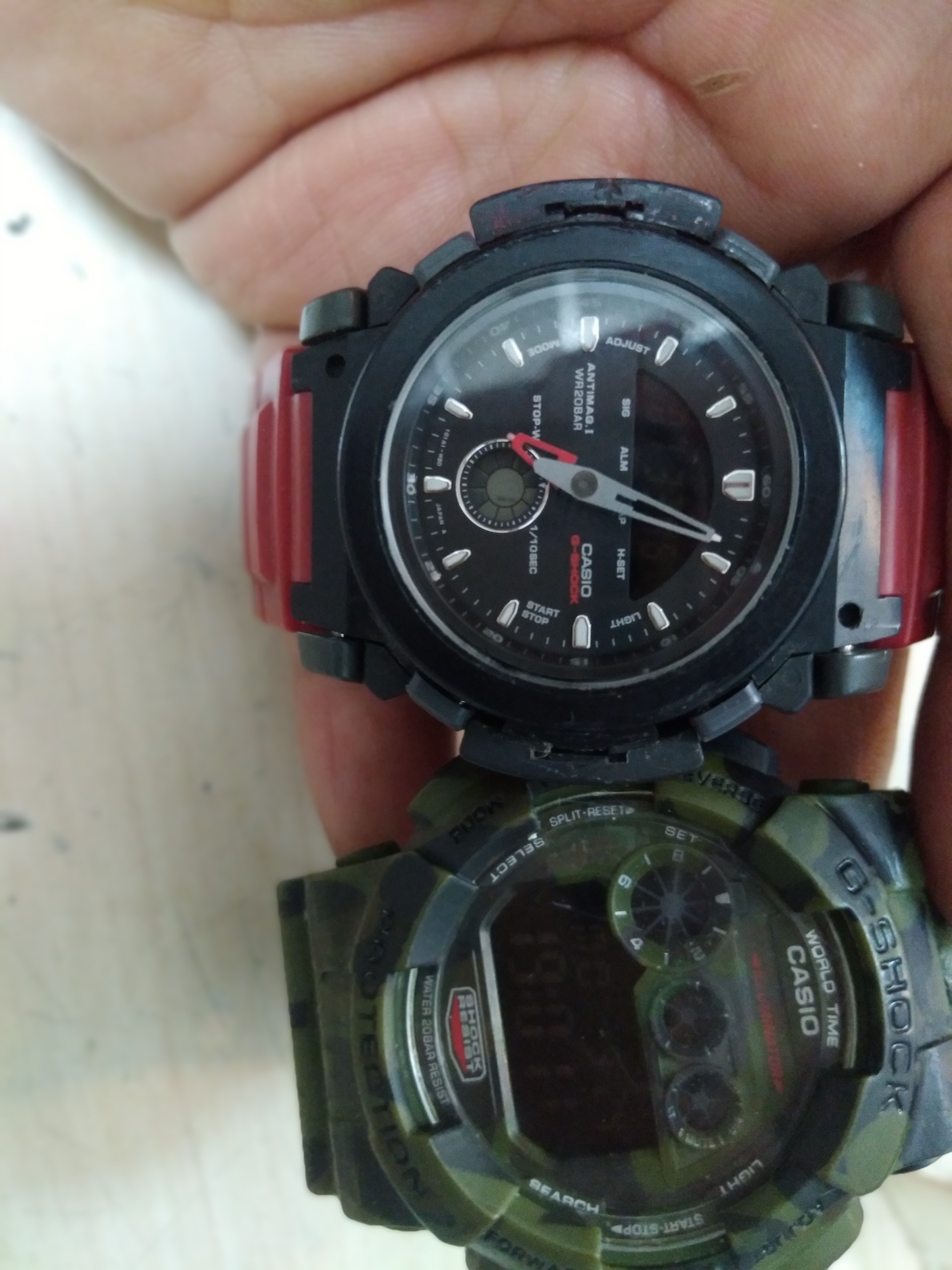 ساعت جی شاک اصلی قرمزه سالمه ودقیق ولی فلاپ رو ی ساعت از بین رفته و دومی ساعت چریکی عیبش چراغ و زنگش از کار افتاد ه من به عنوان معیوب زدم تو سایت که حرفی توش نباشه ممنون