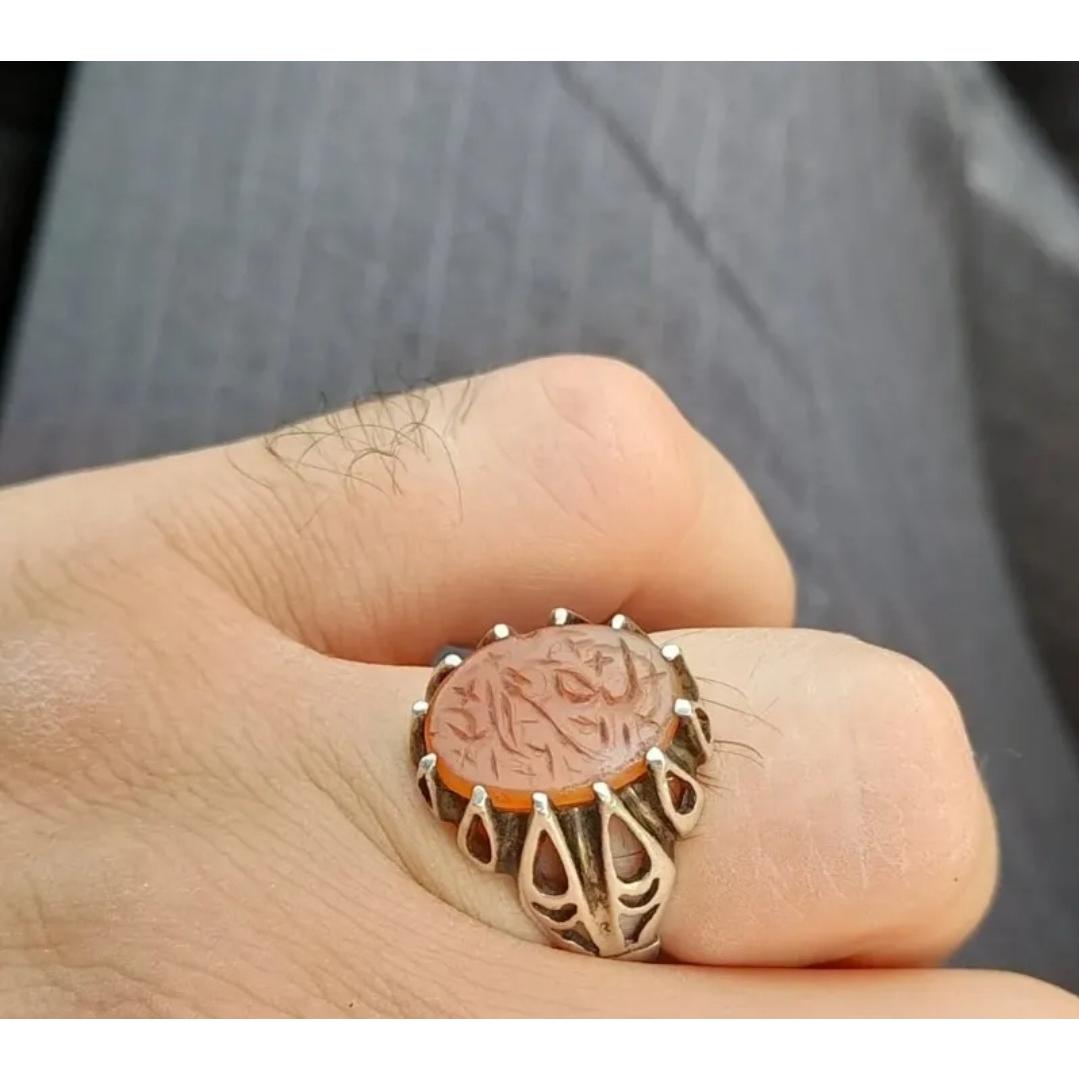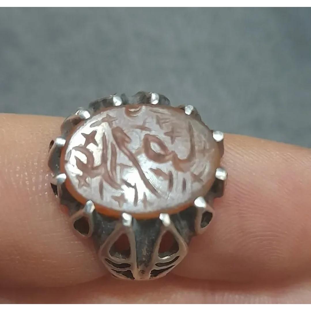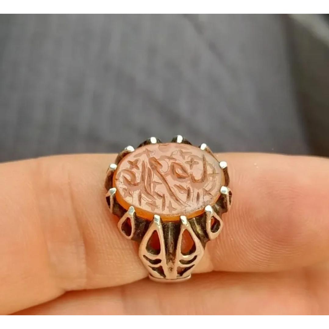 انگشترعقیق یمن خط کمانچه قاجاری1321ه ق