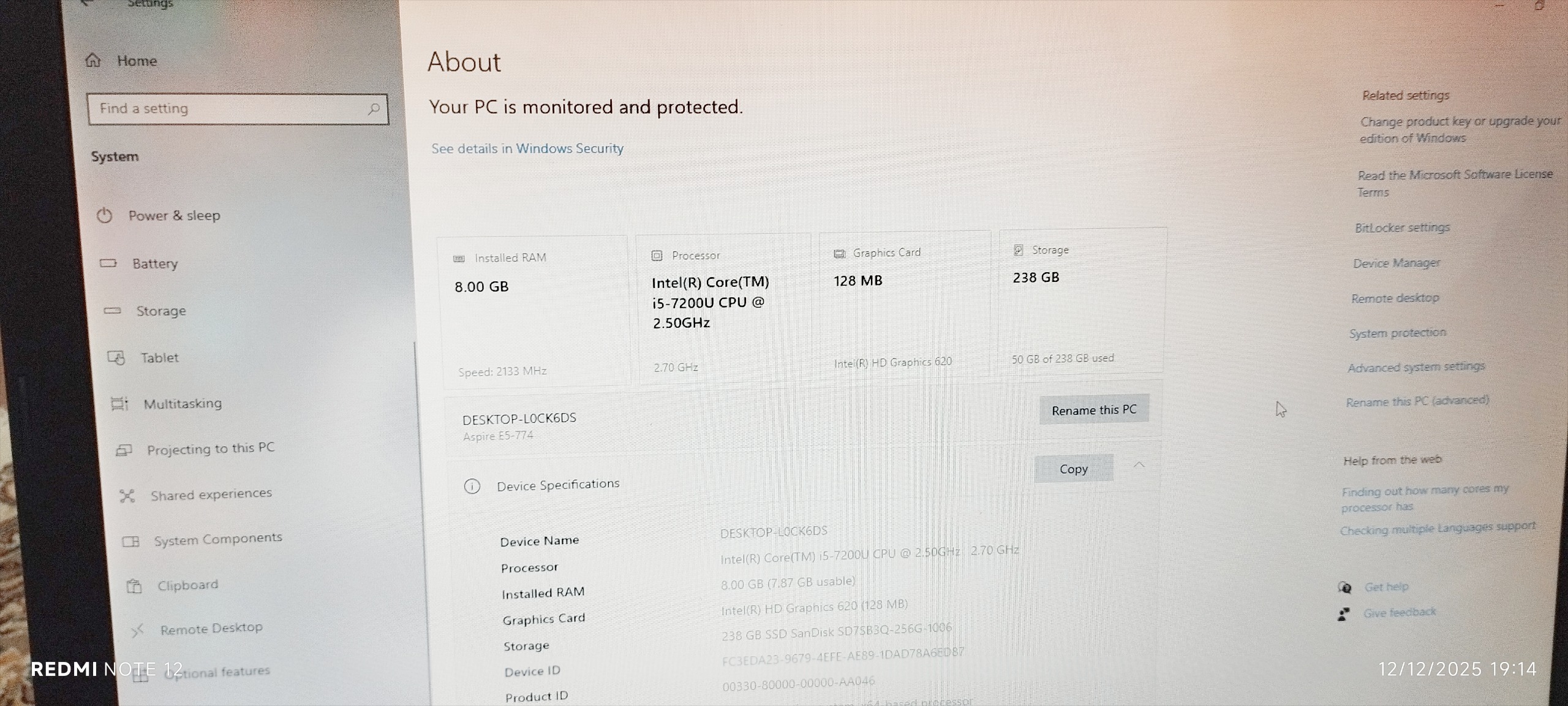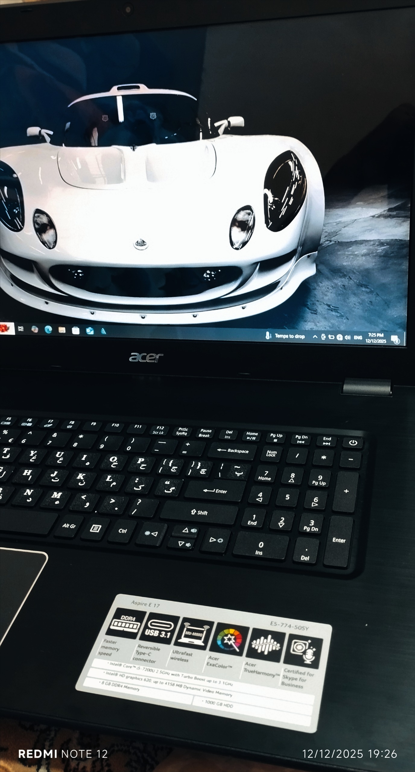 لپ تاپ acer i5 نسل 7 گرافیک HD رم ddr4 نوک مدادی تیره همراه کابل شارژ و کیف اشانتیون،