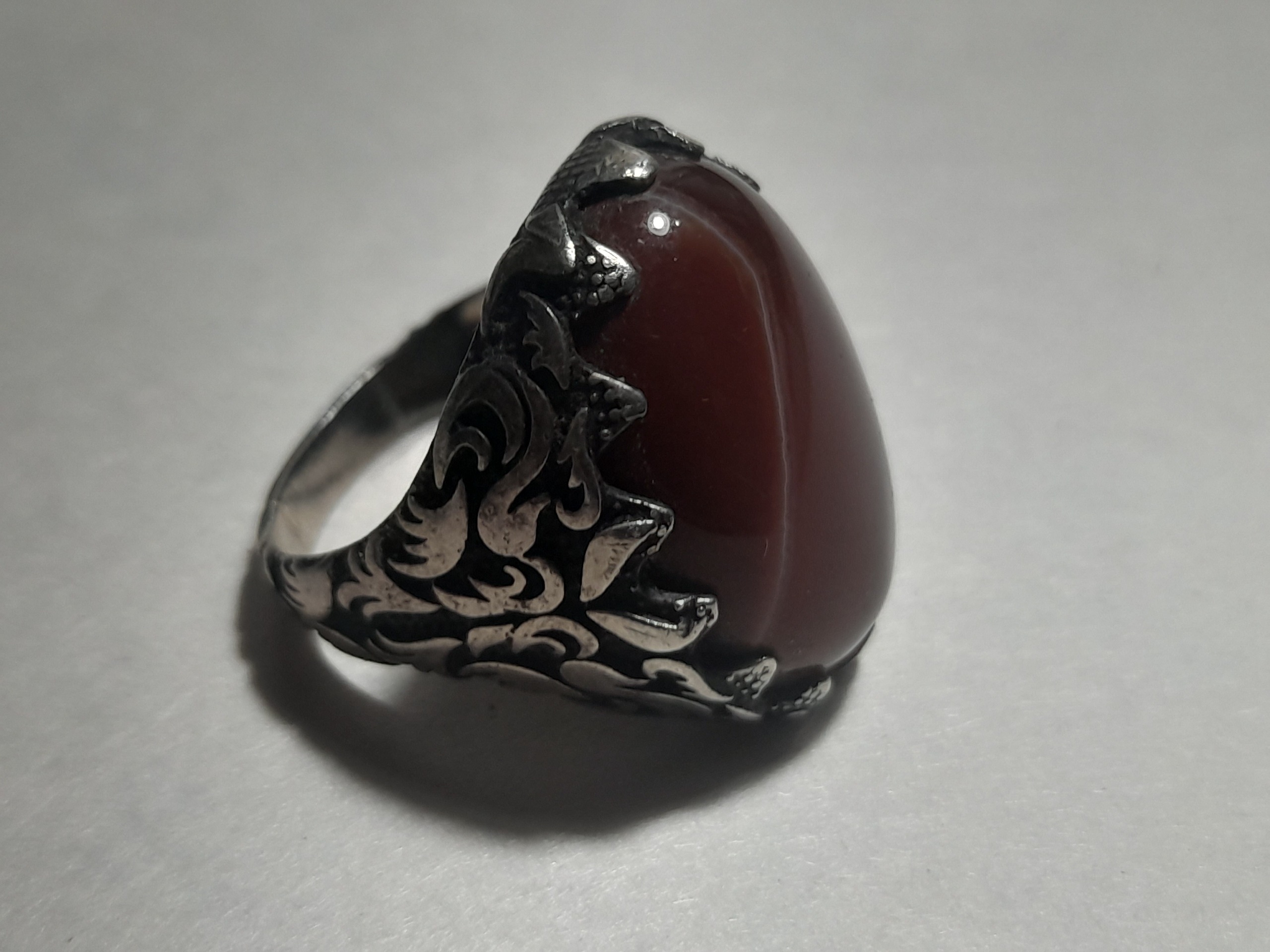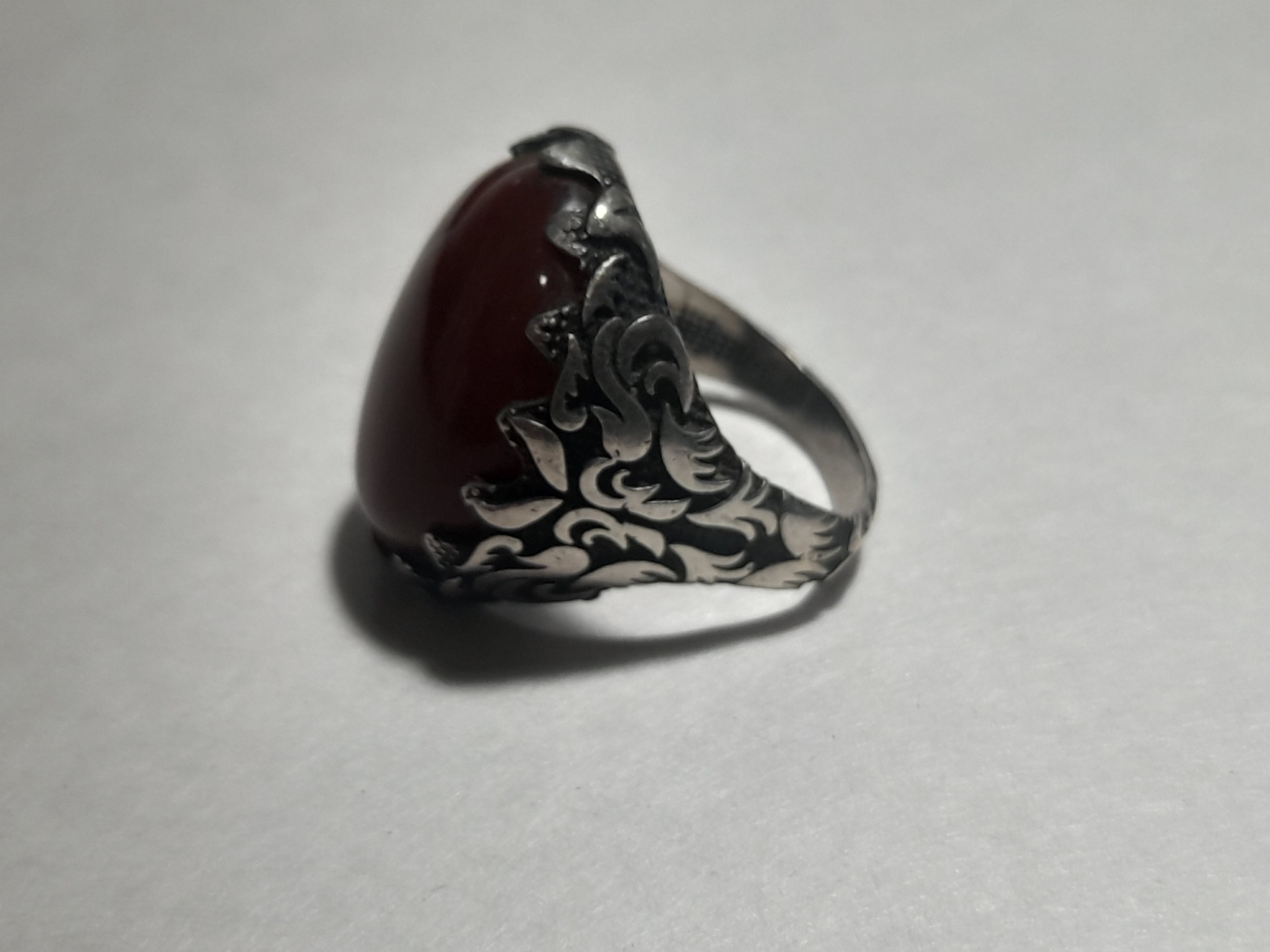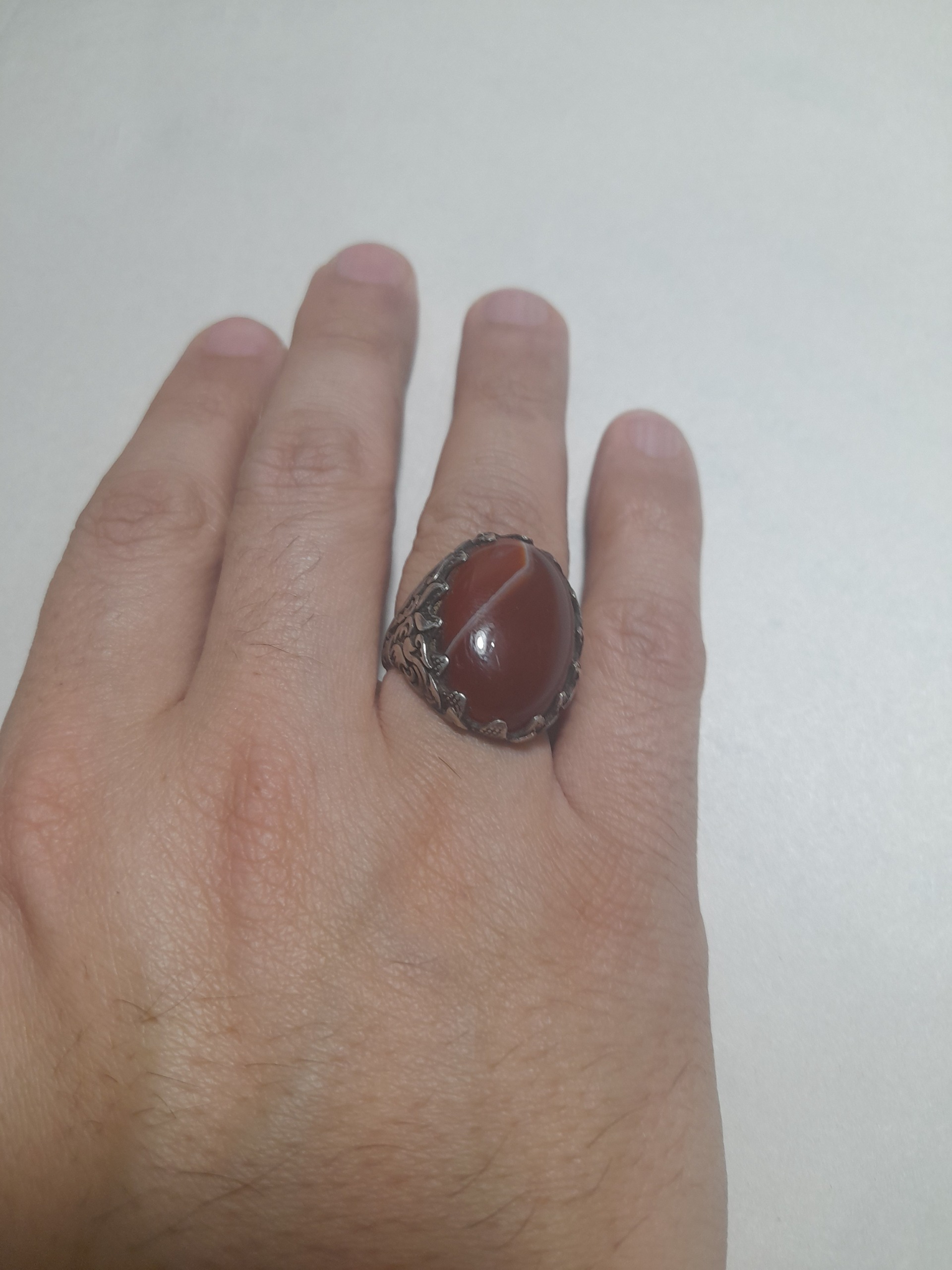 انگشتر عقیق با رکاب نقره 925 حکاکی شده