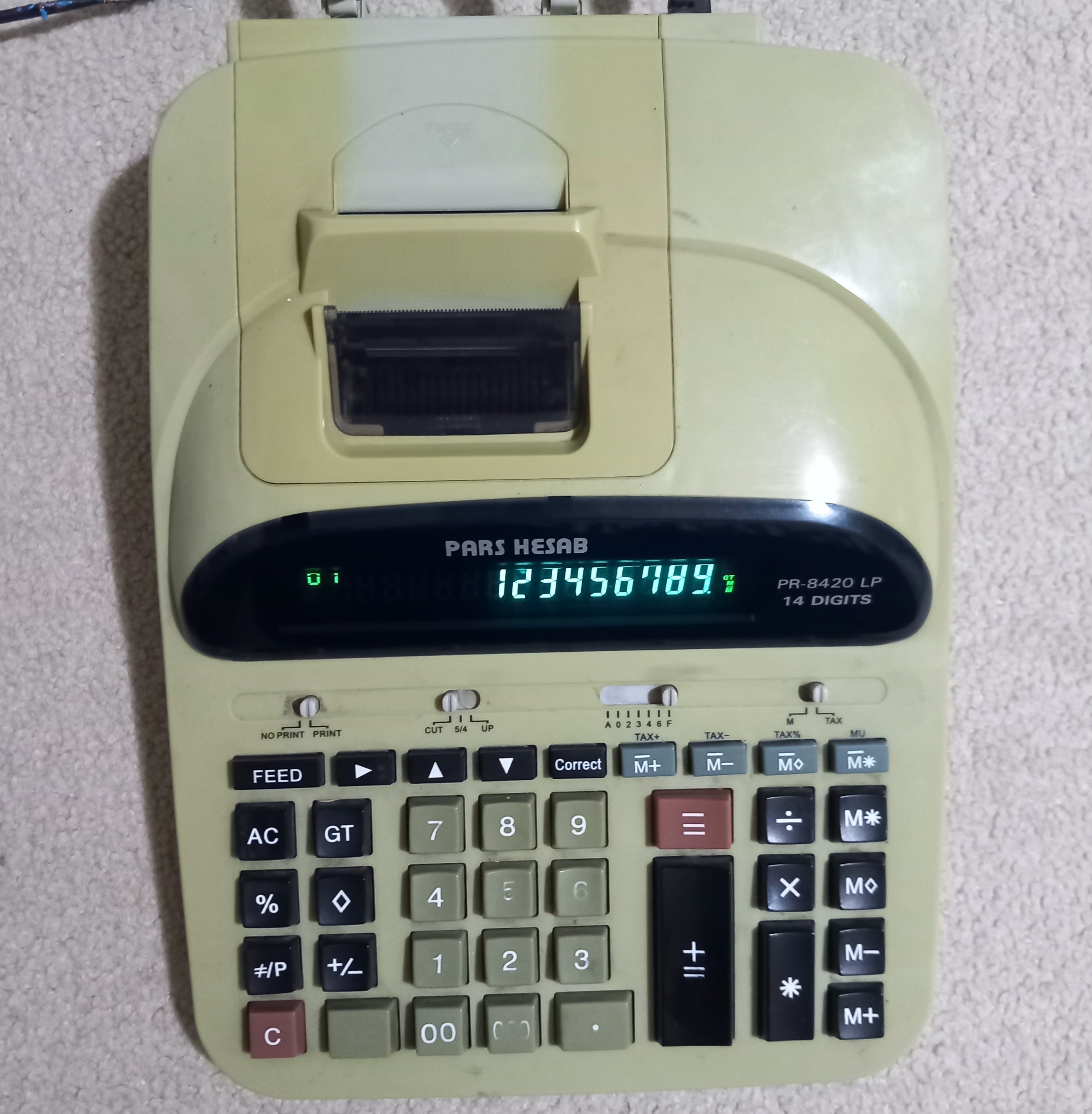 ماشین حساب چاپگردار شرکت پارس حساب عالی ودرحد به بالاترین قیمت پیشنهادی ارسال میشود .....طبق تصاویر کالا خود کالا و همین کالا ارسال میگردد.....