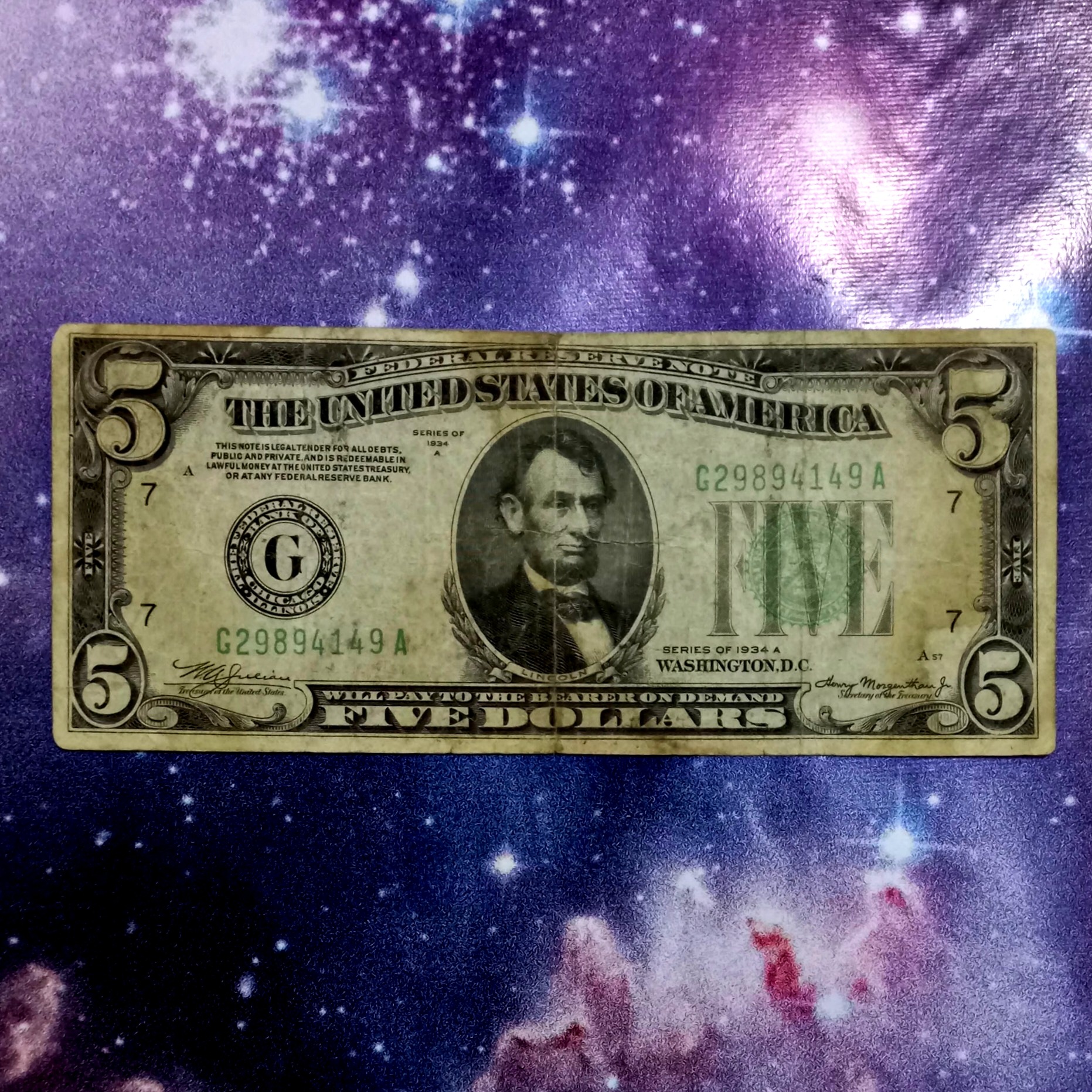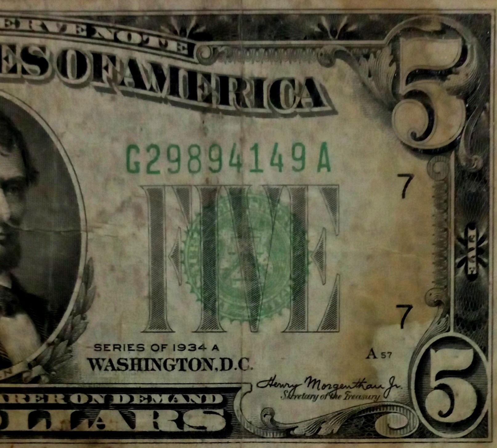 اسکناس 5 دلار مهر سبز 1934 آمریکا